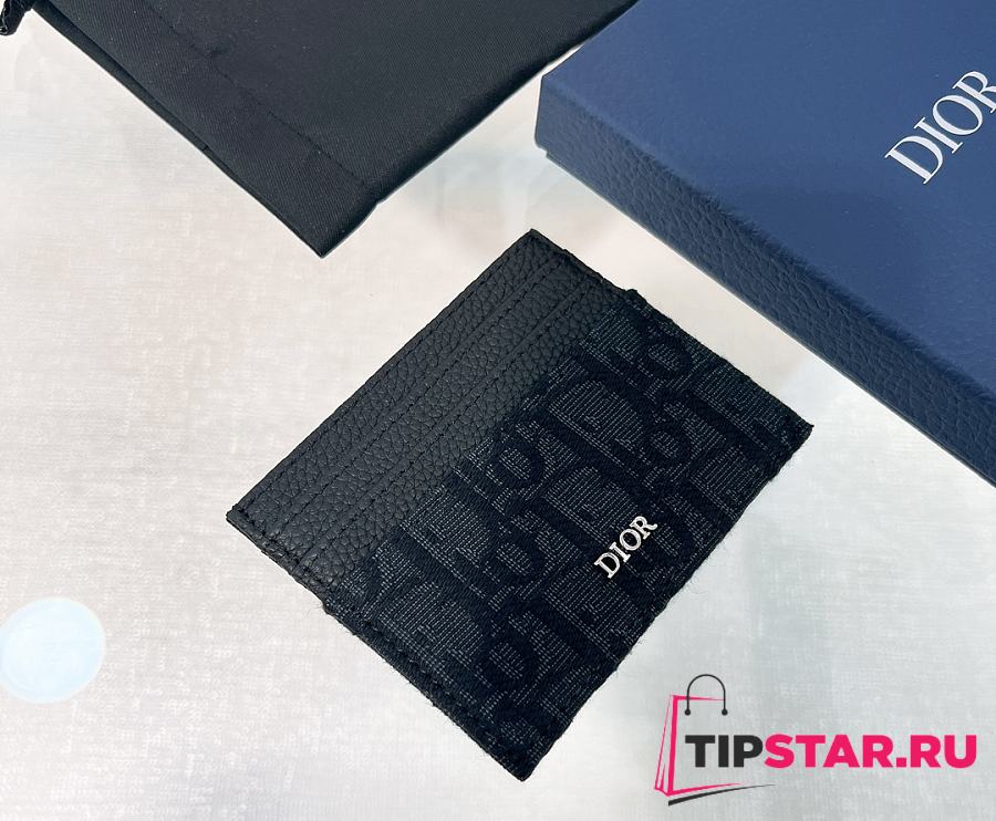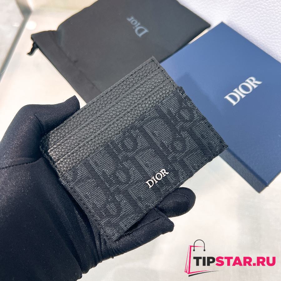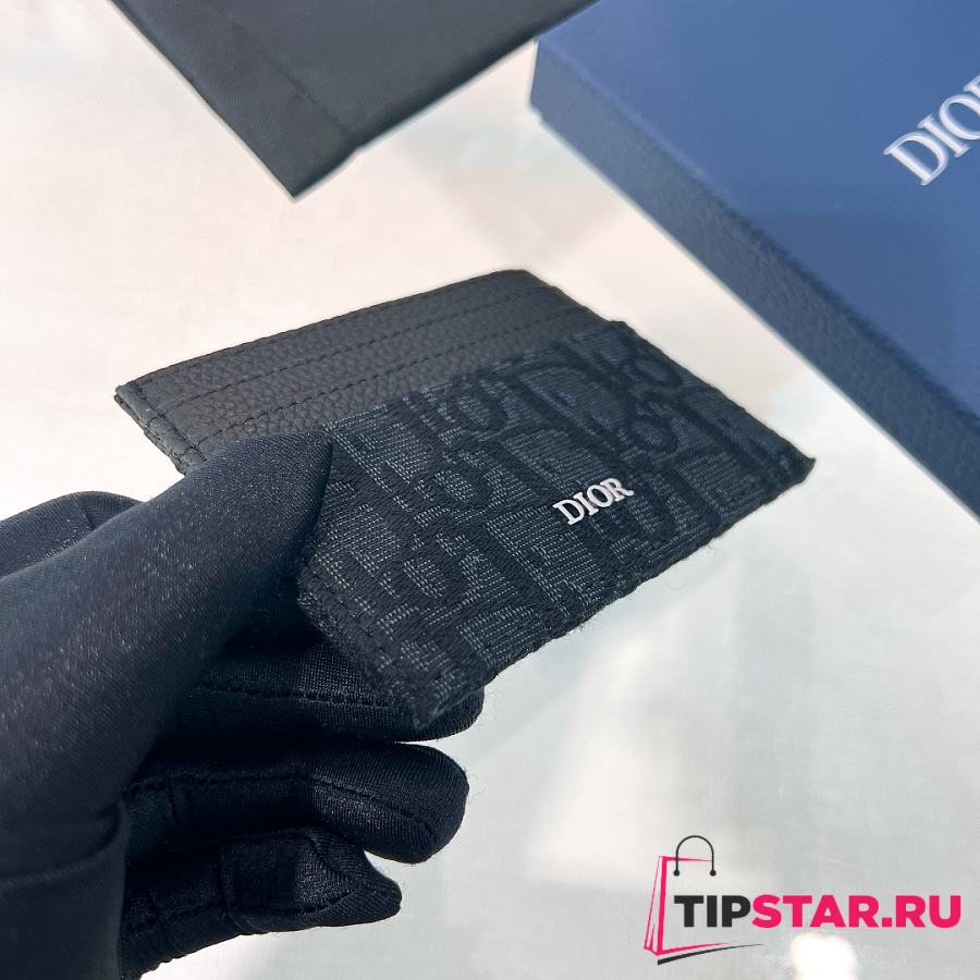 Dior Oblique Jacquard Print Double Sided Flap Card Holder Black