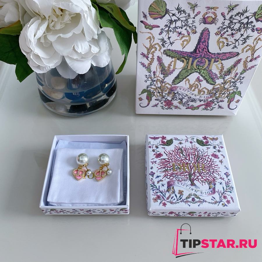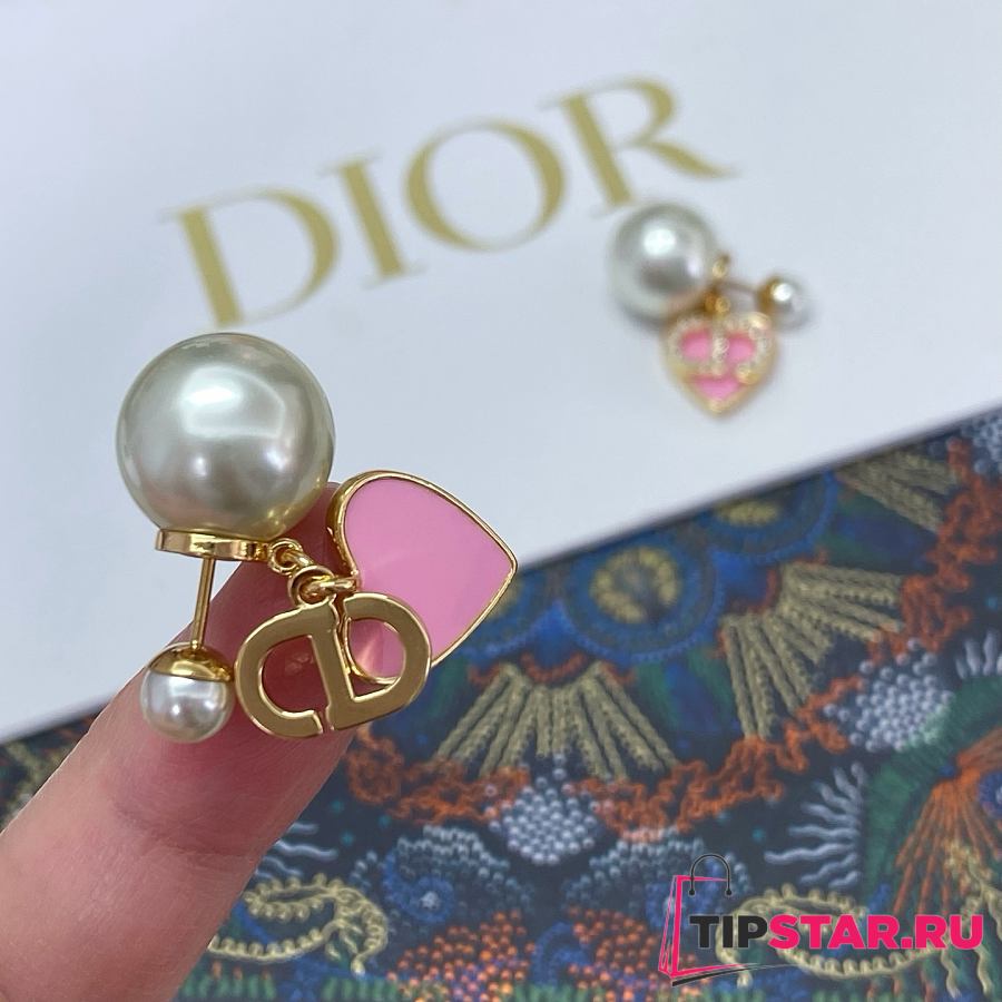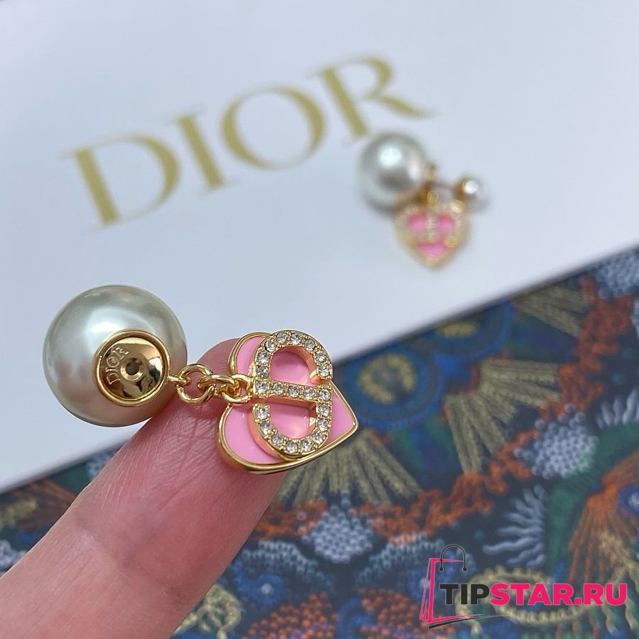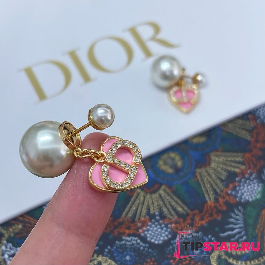 Dior Pink Heart CD Full Diamond Pearl Earrings
