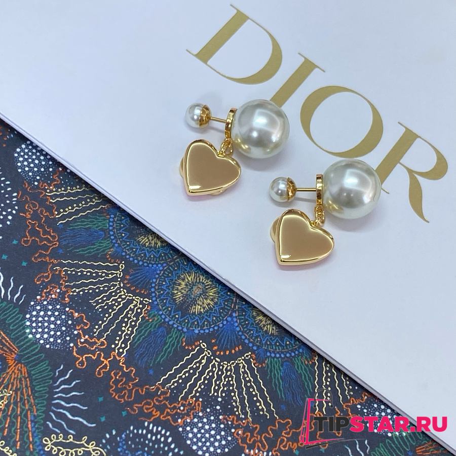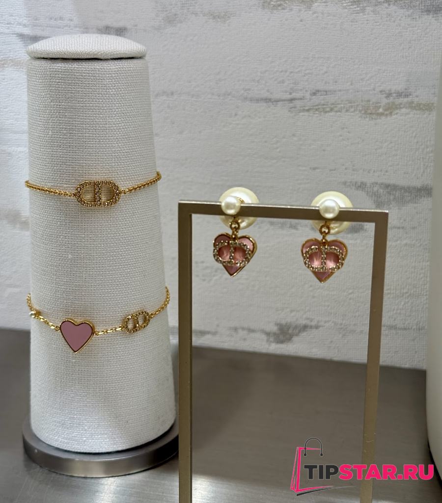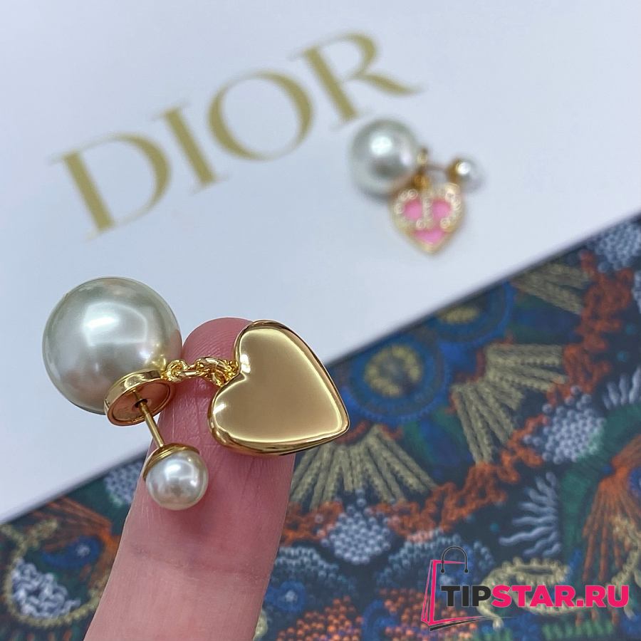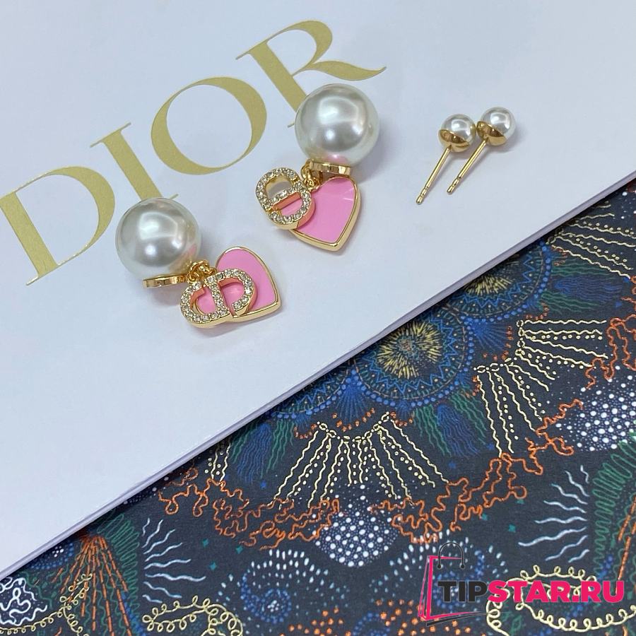 Dior Pink Heart CD Full Diamond Pearl Earrings
