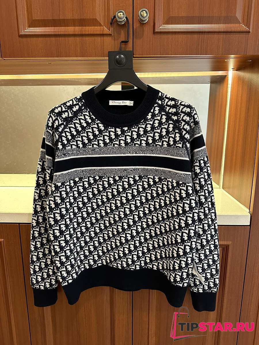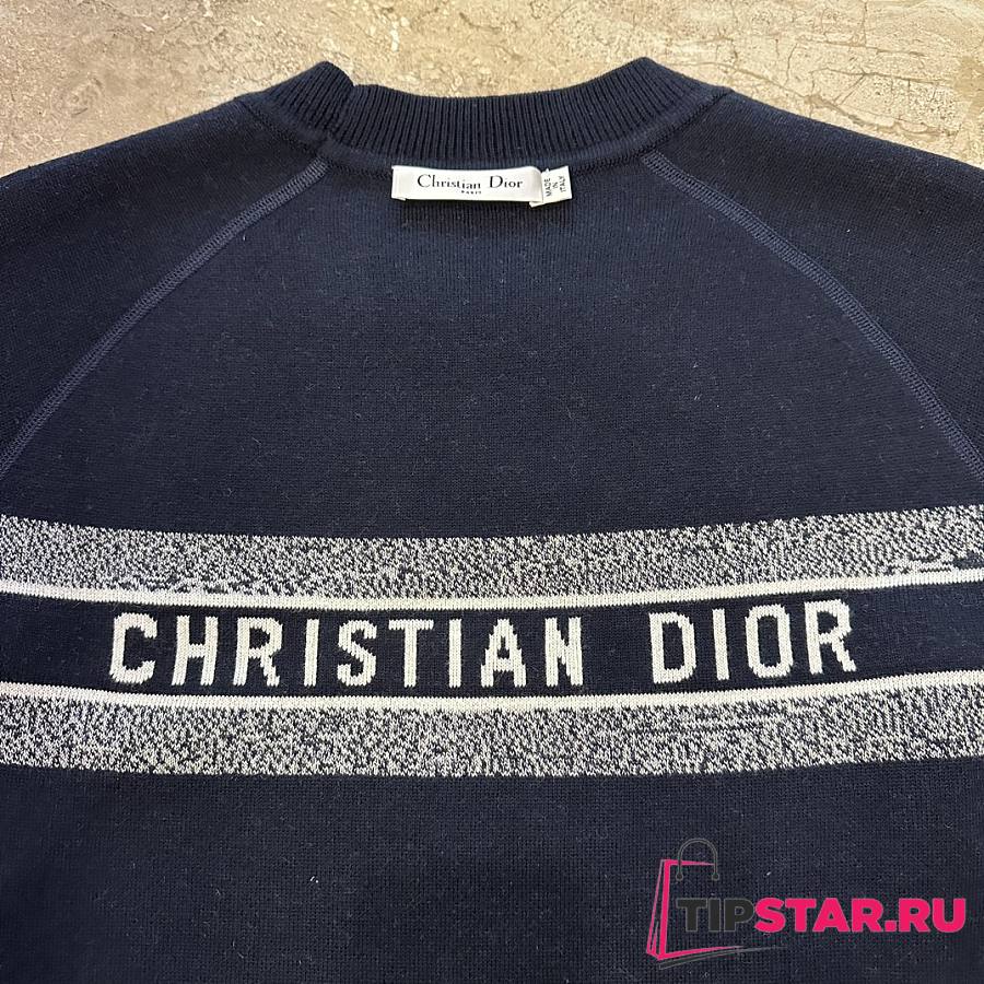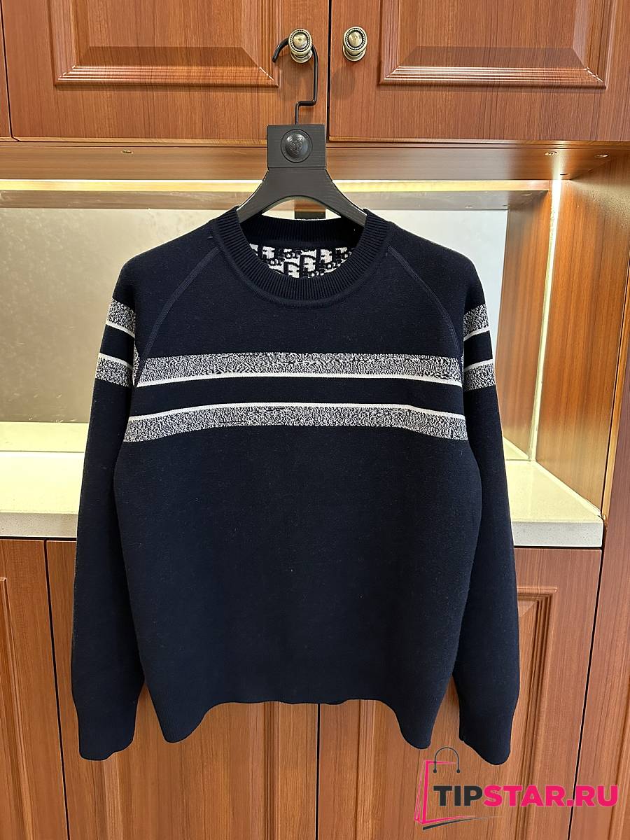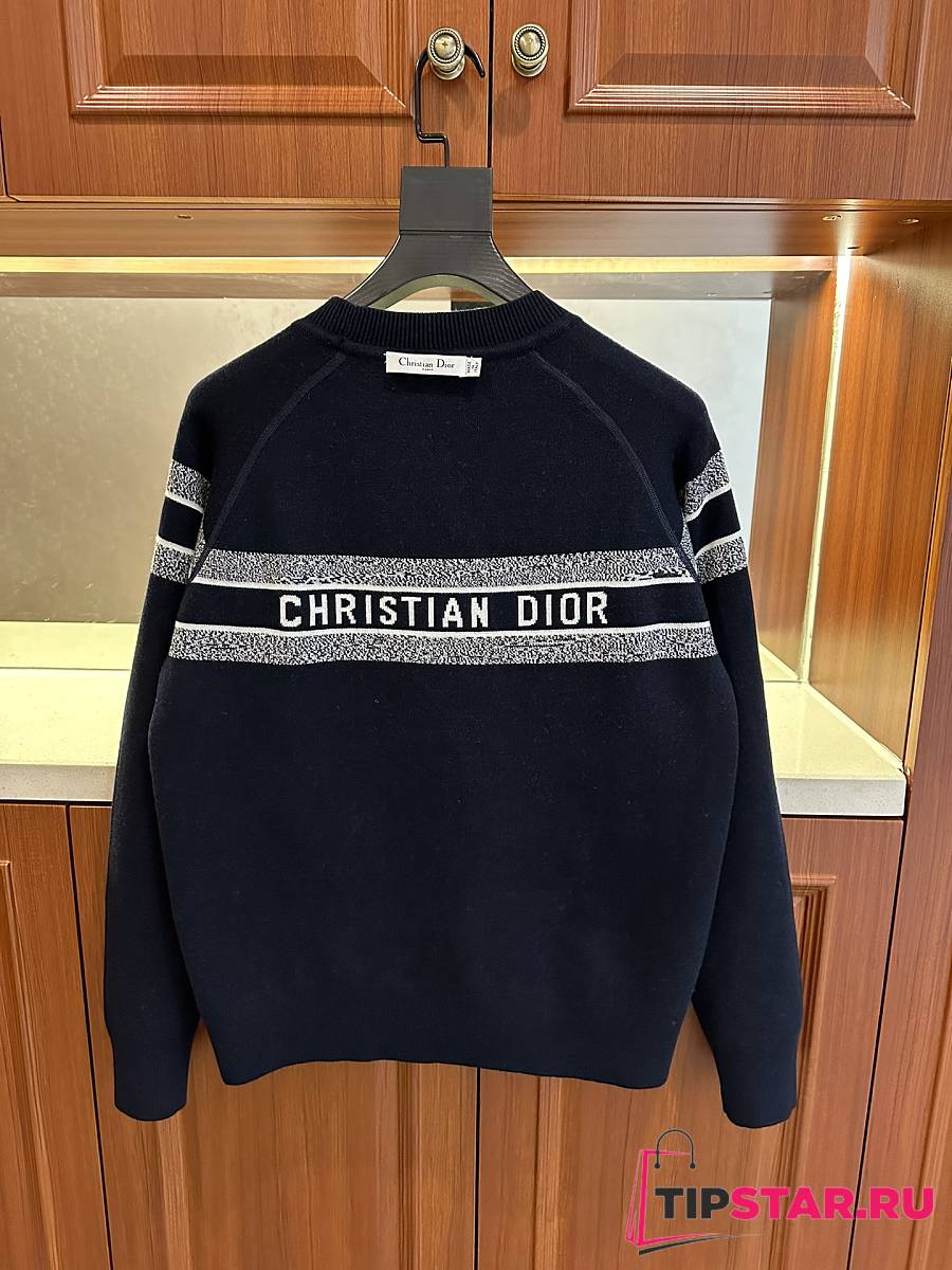 Dior round neck knit wool sweater dark blue