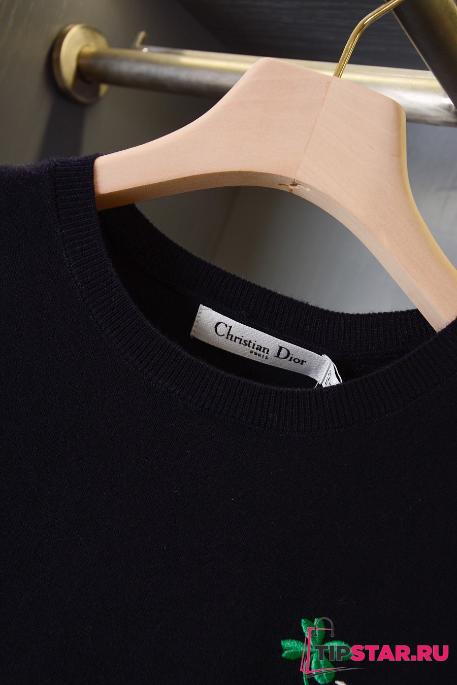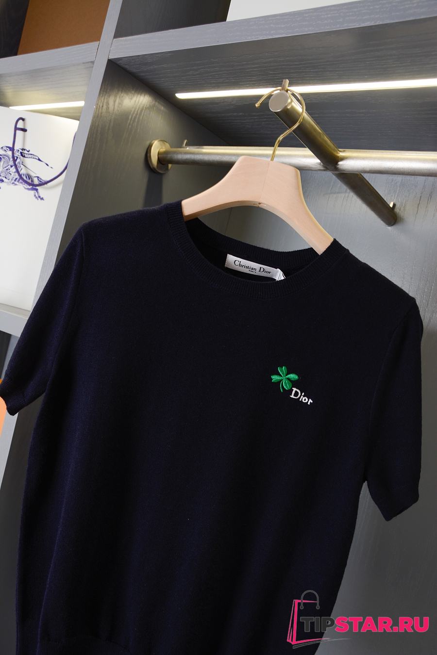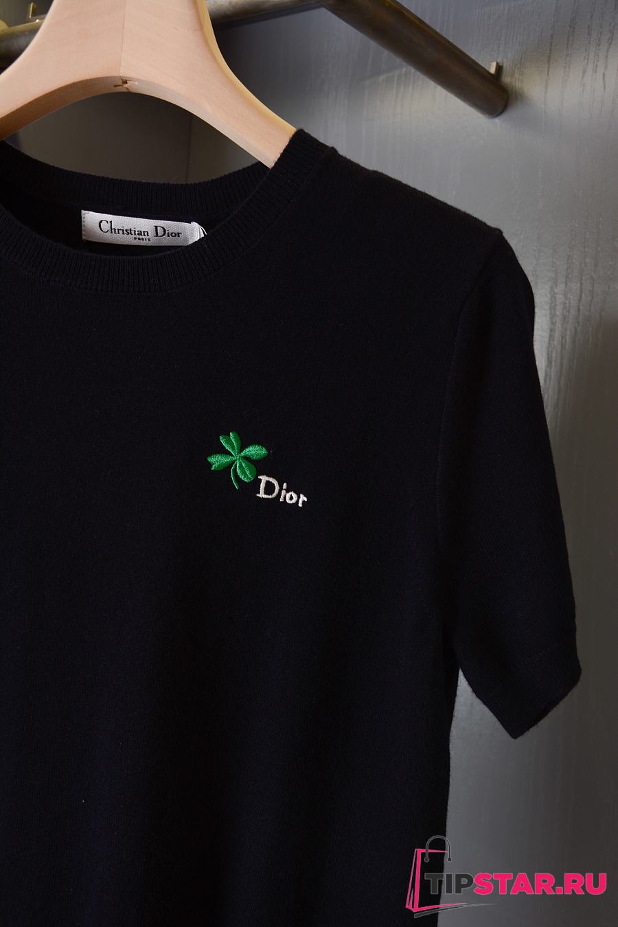Dior Short-Sleeved Fitted Sweater Black Wool Knit with Green