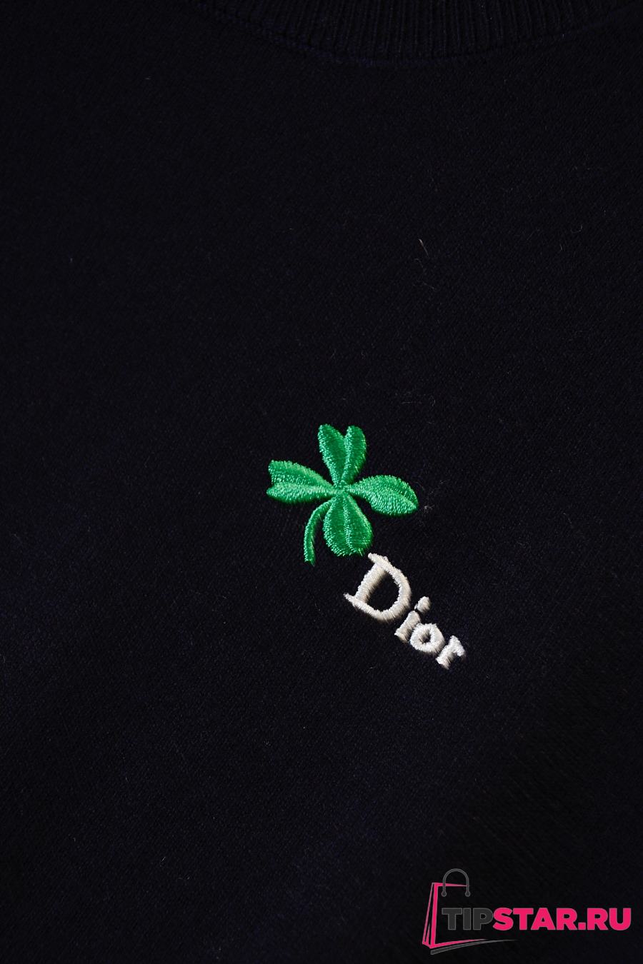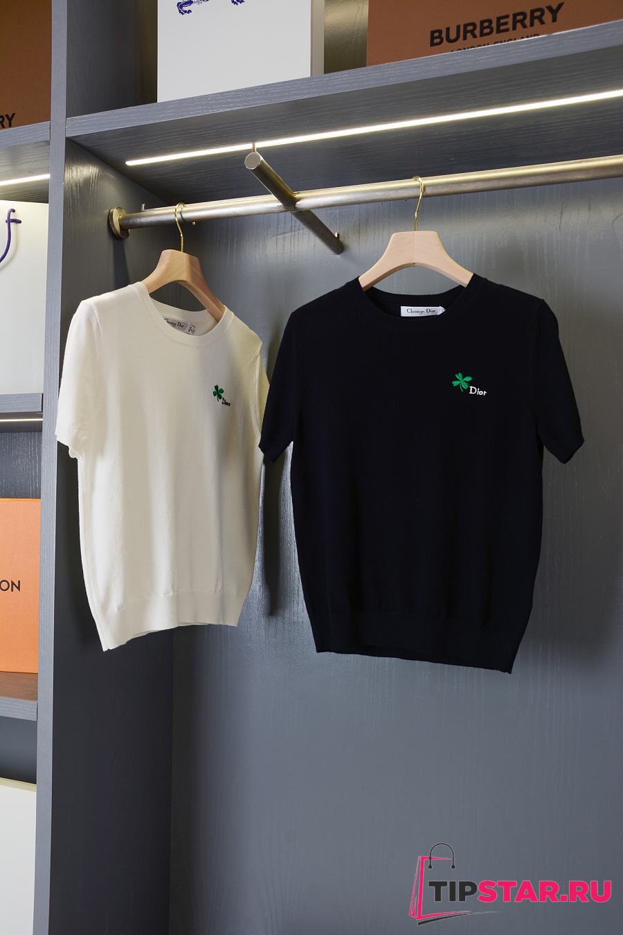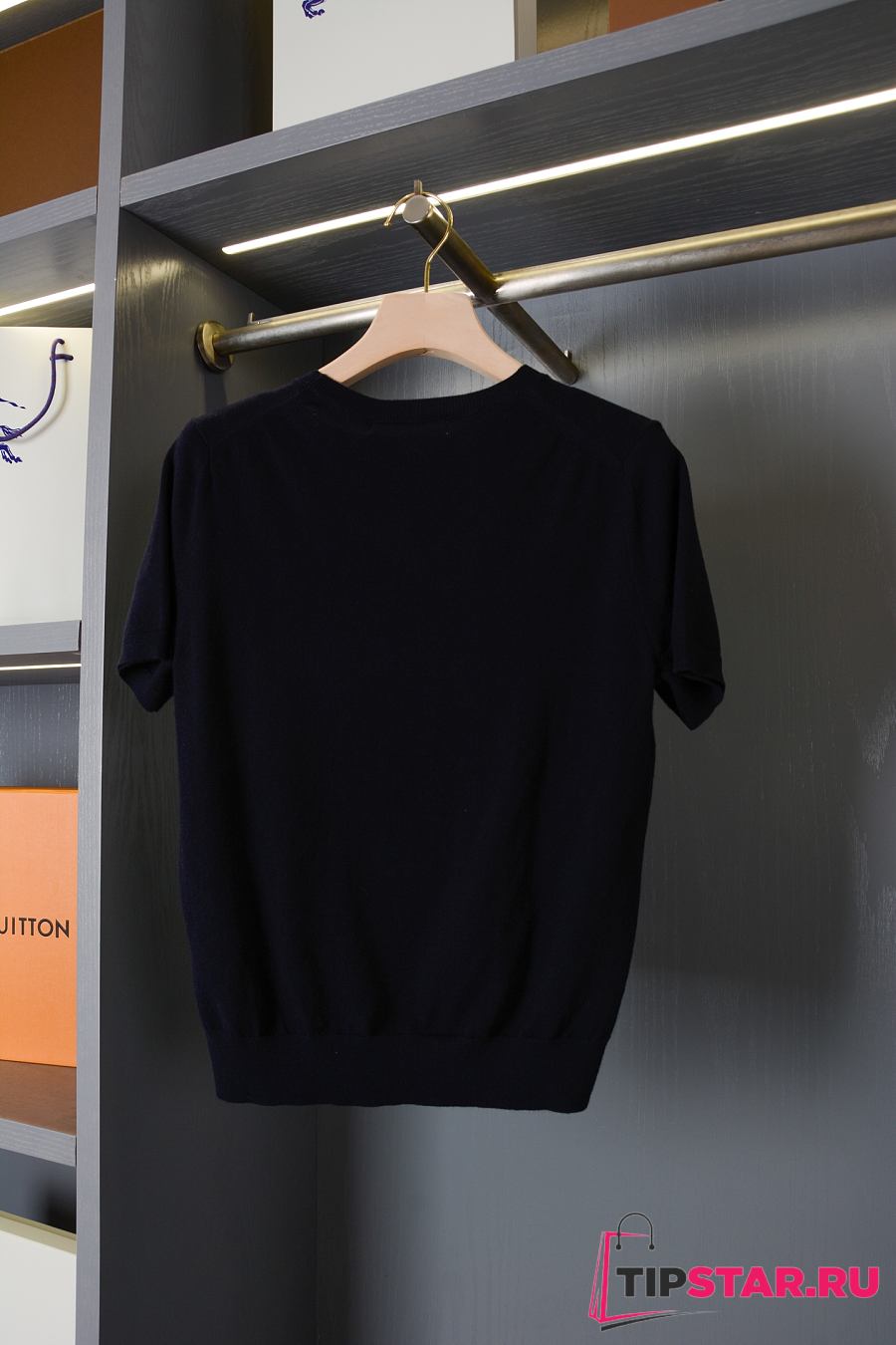 Dior Short-Sleeved Fitted Sweater Black Wool Knit with Green