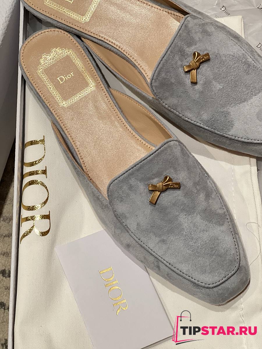 Dior Women's Shoes Baby Bow Mule In Light Grey