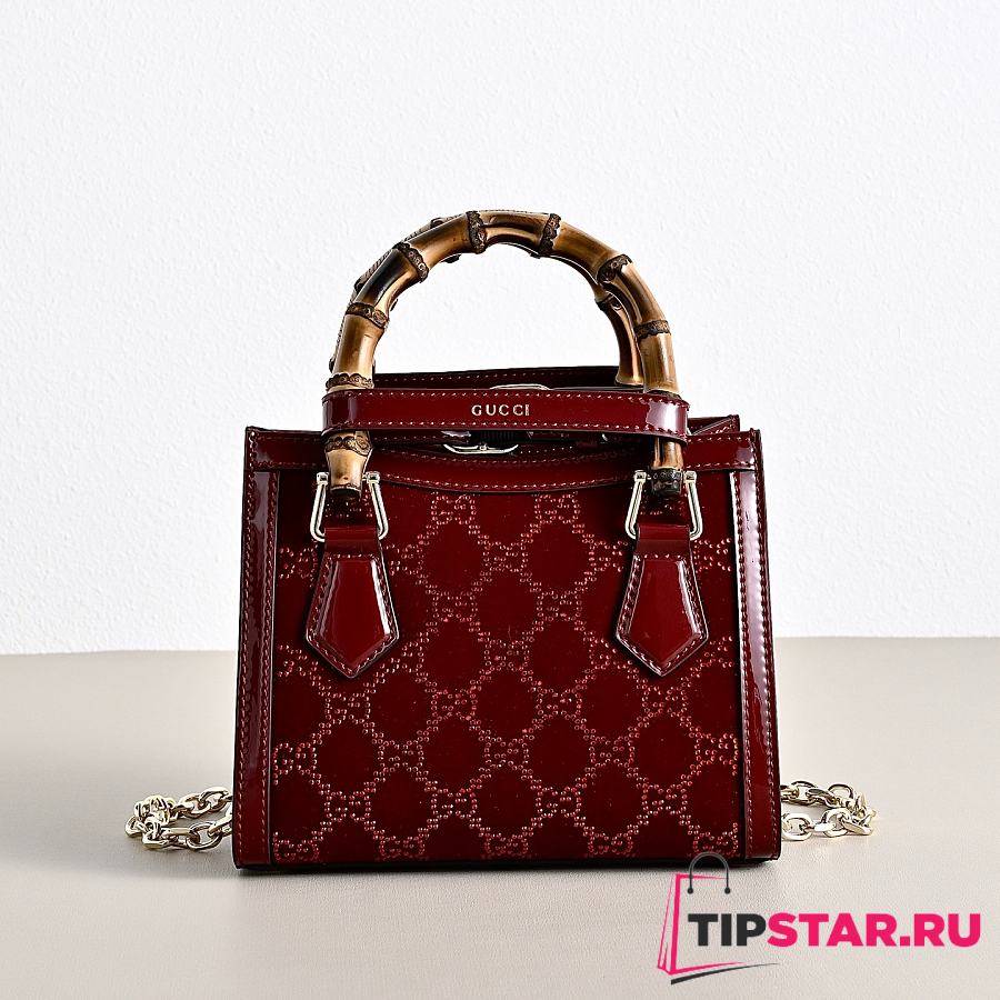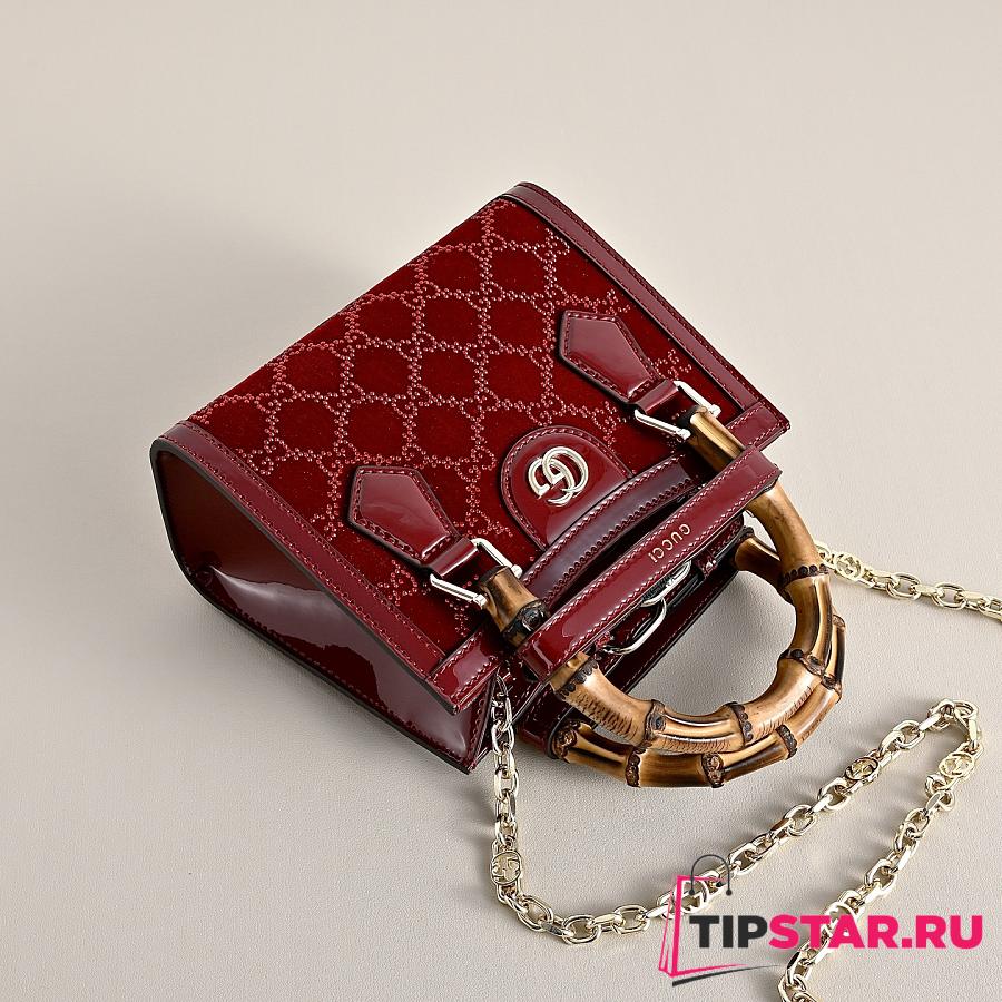 Gucci Diana crystals small tote bag Rosso Ancora red velvet