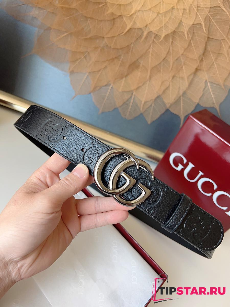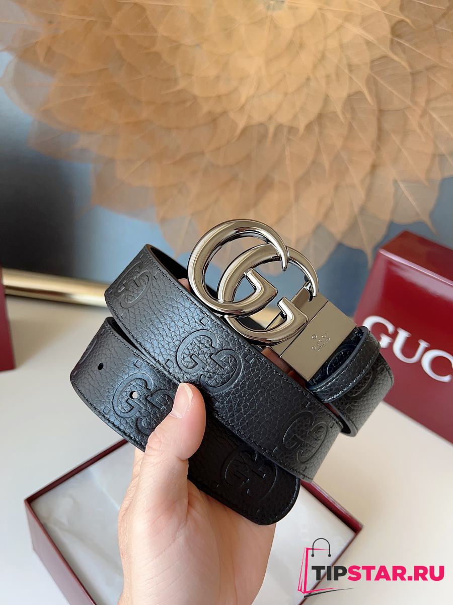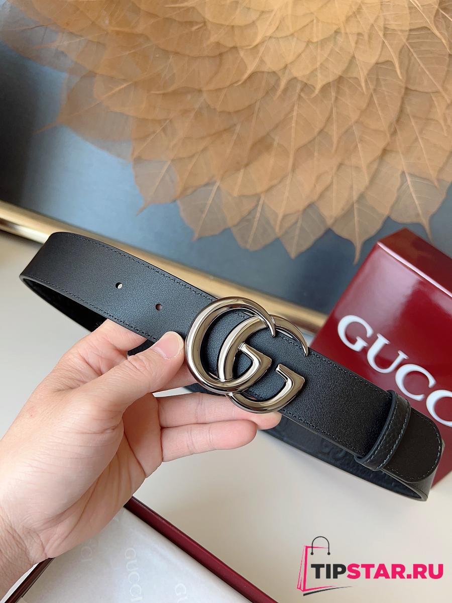 Gucci GG 3.7 Round Interlocking Double G Dark Silver Buckle Belt Black