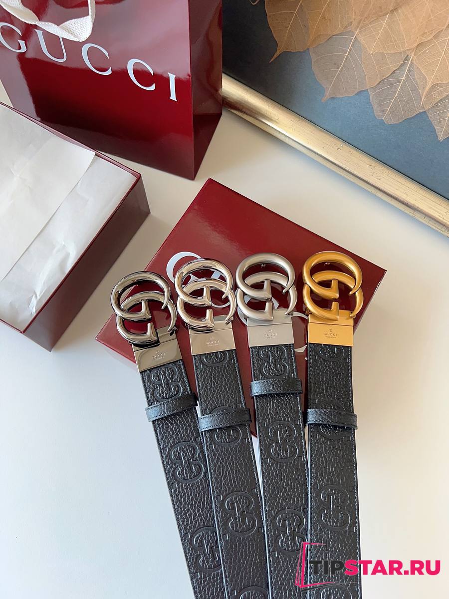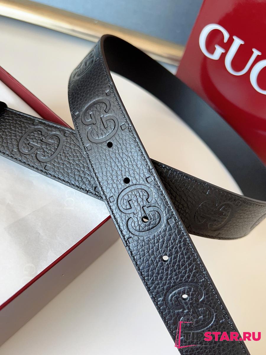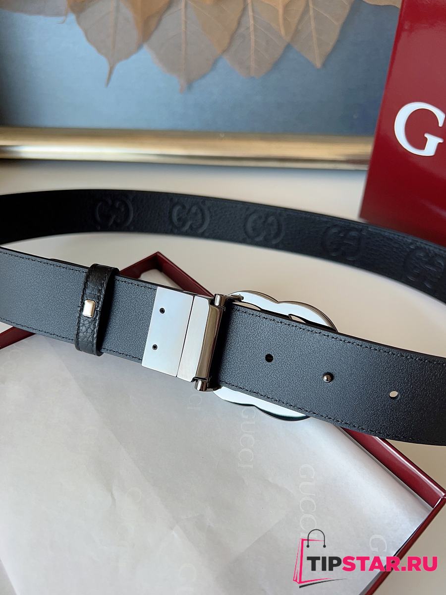 Gucci GG 3.7 Round Interlocking Double G Dark Silver Buckle Belt Black