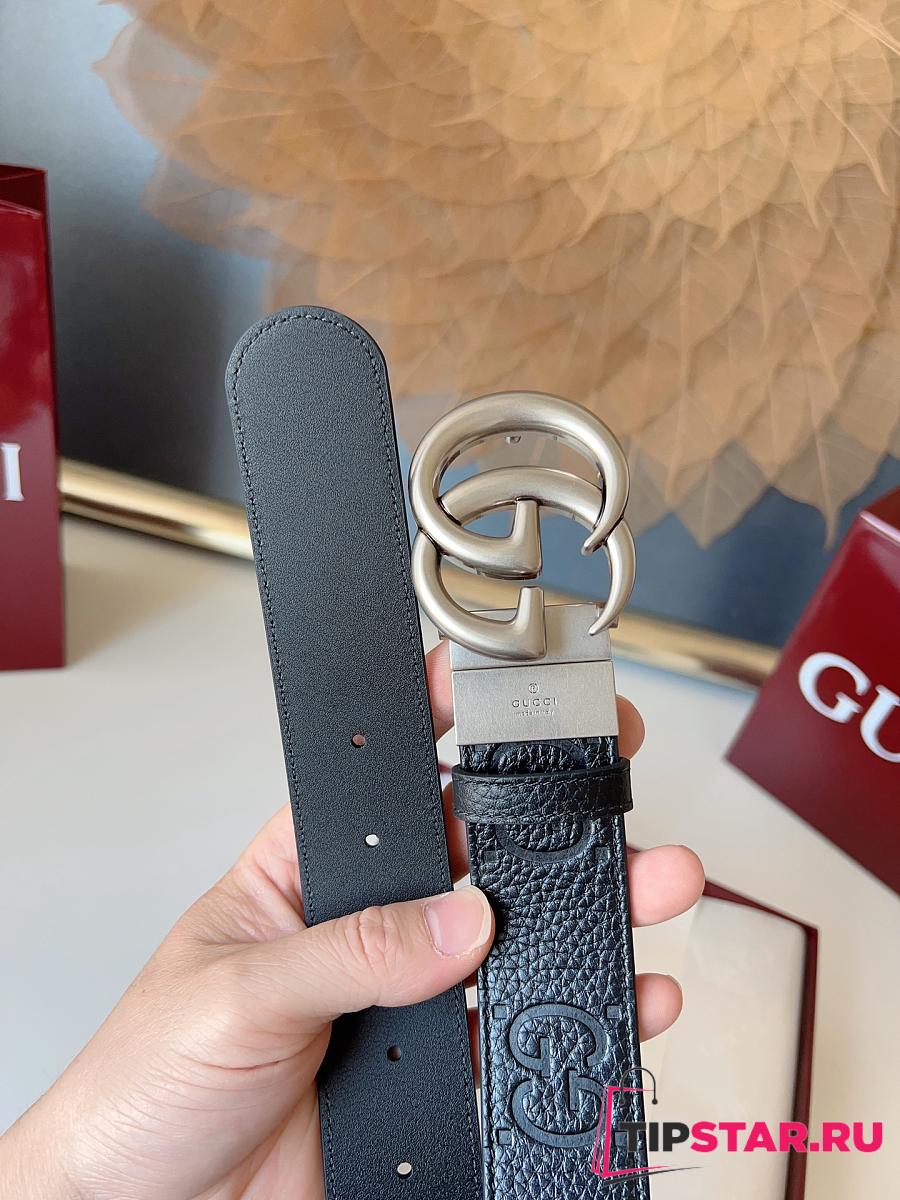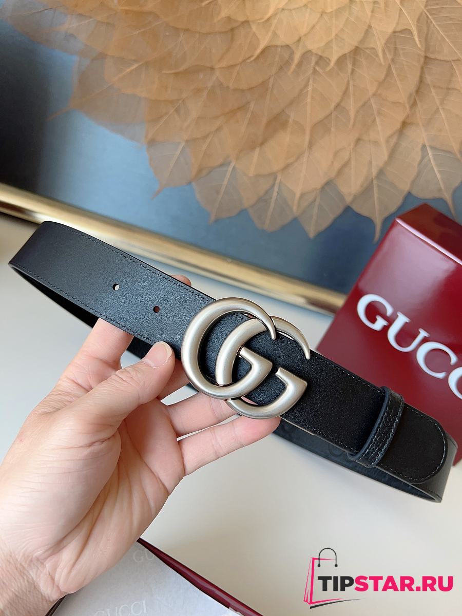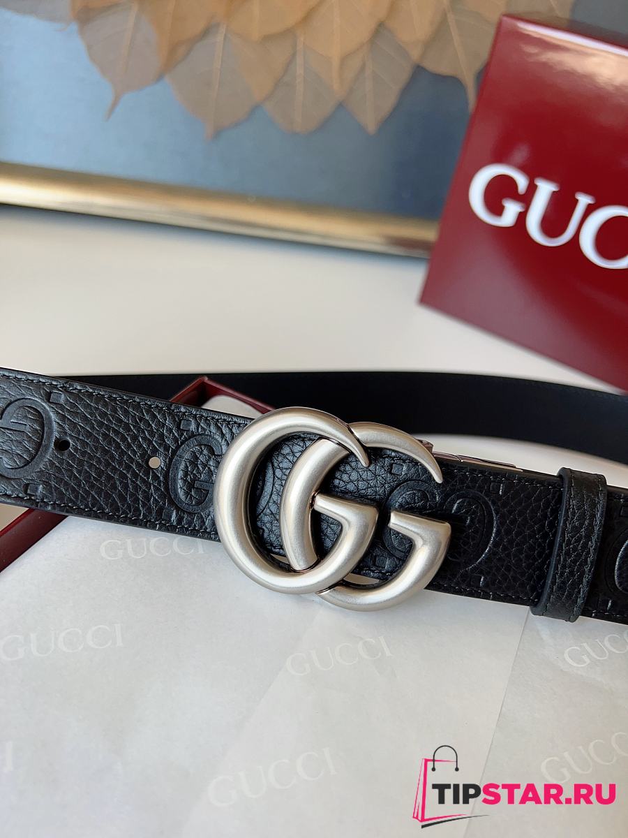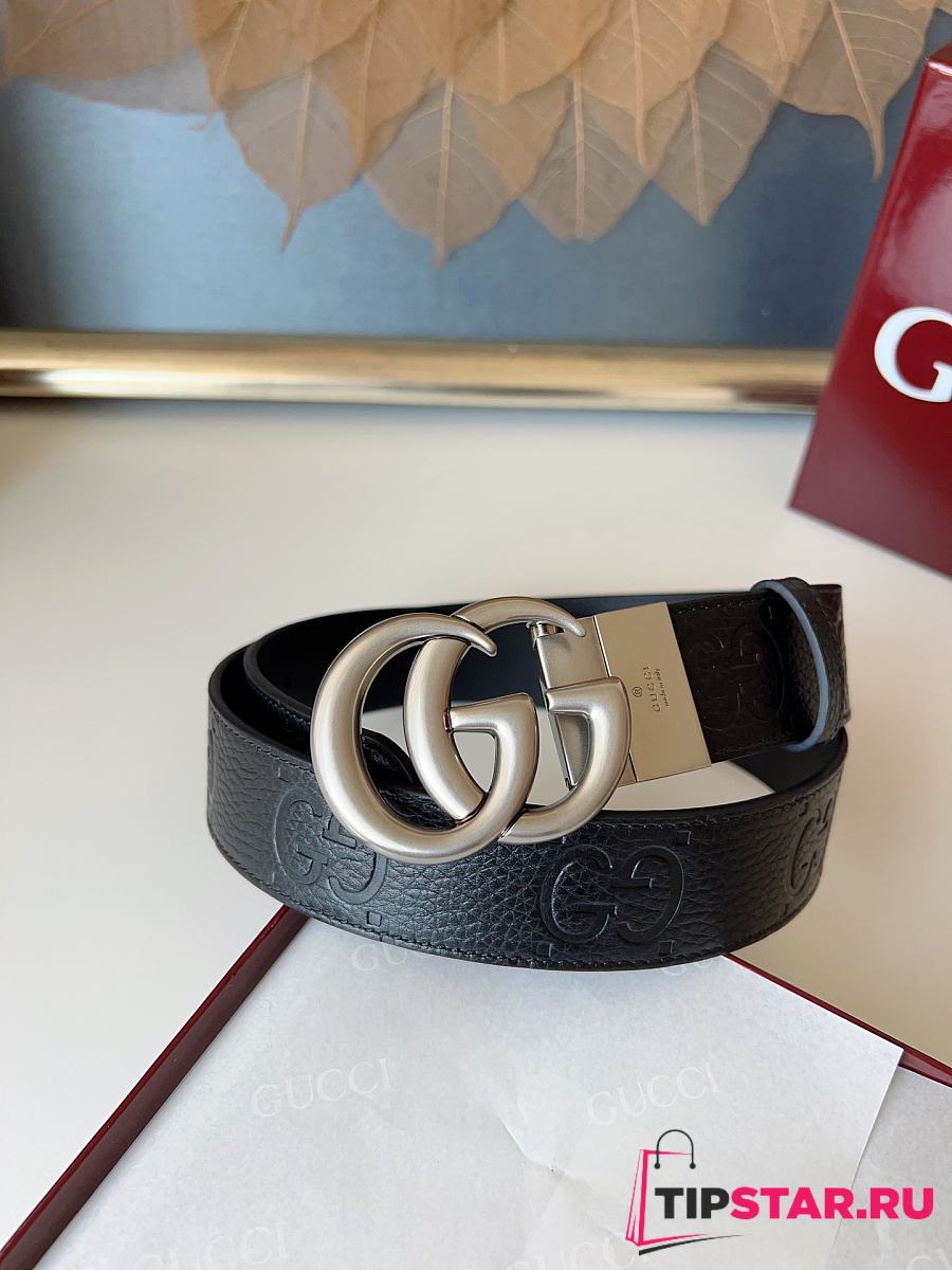 Gucci GG 3.7 Round Interlocking Double G Silver Buckle Belt Black