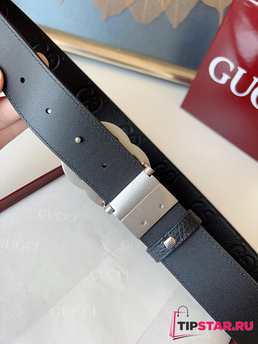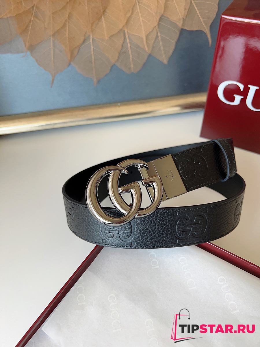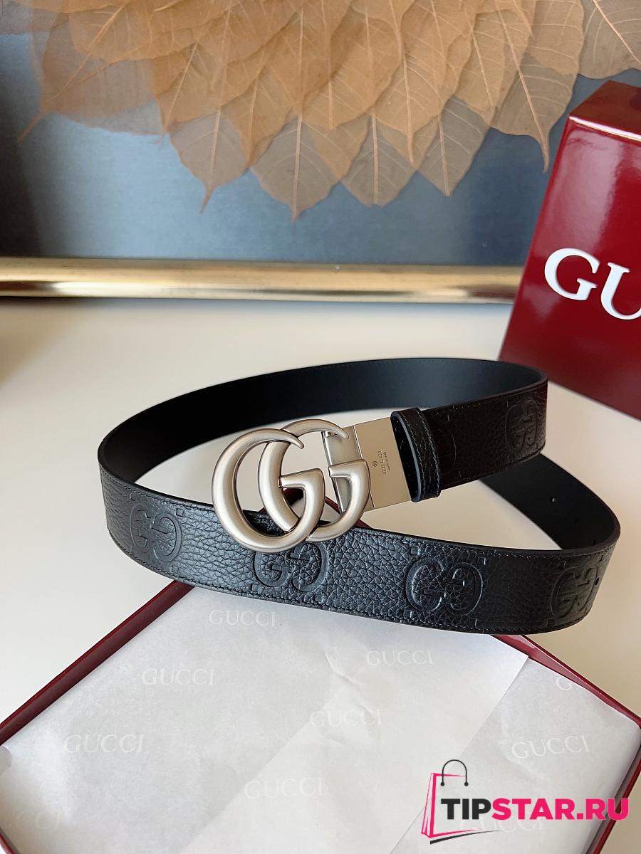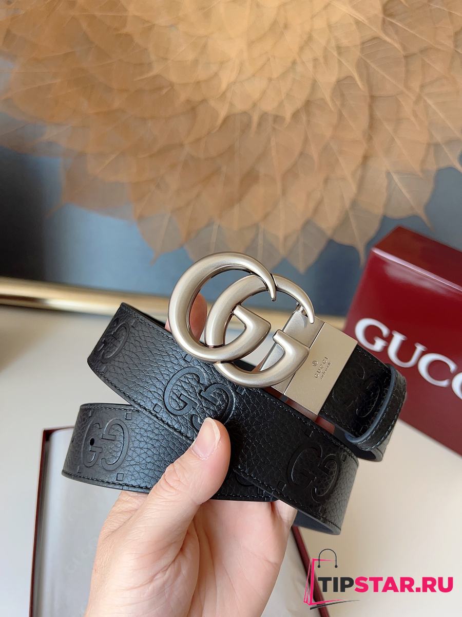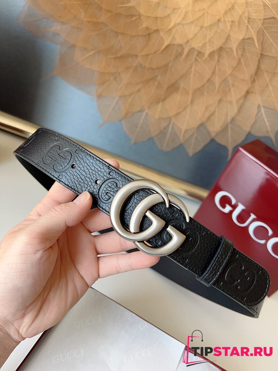 Gucci GG 3.7 Round Interlocking Double G Silver Buckle Belt Black
