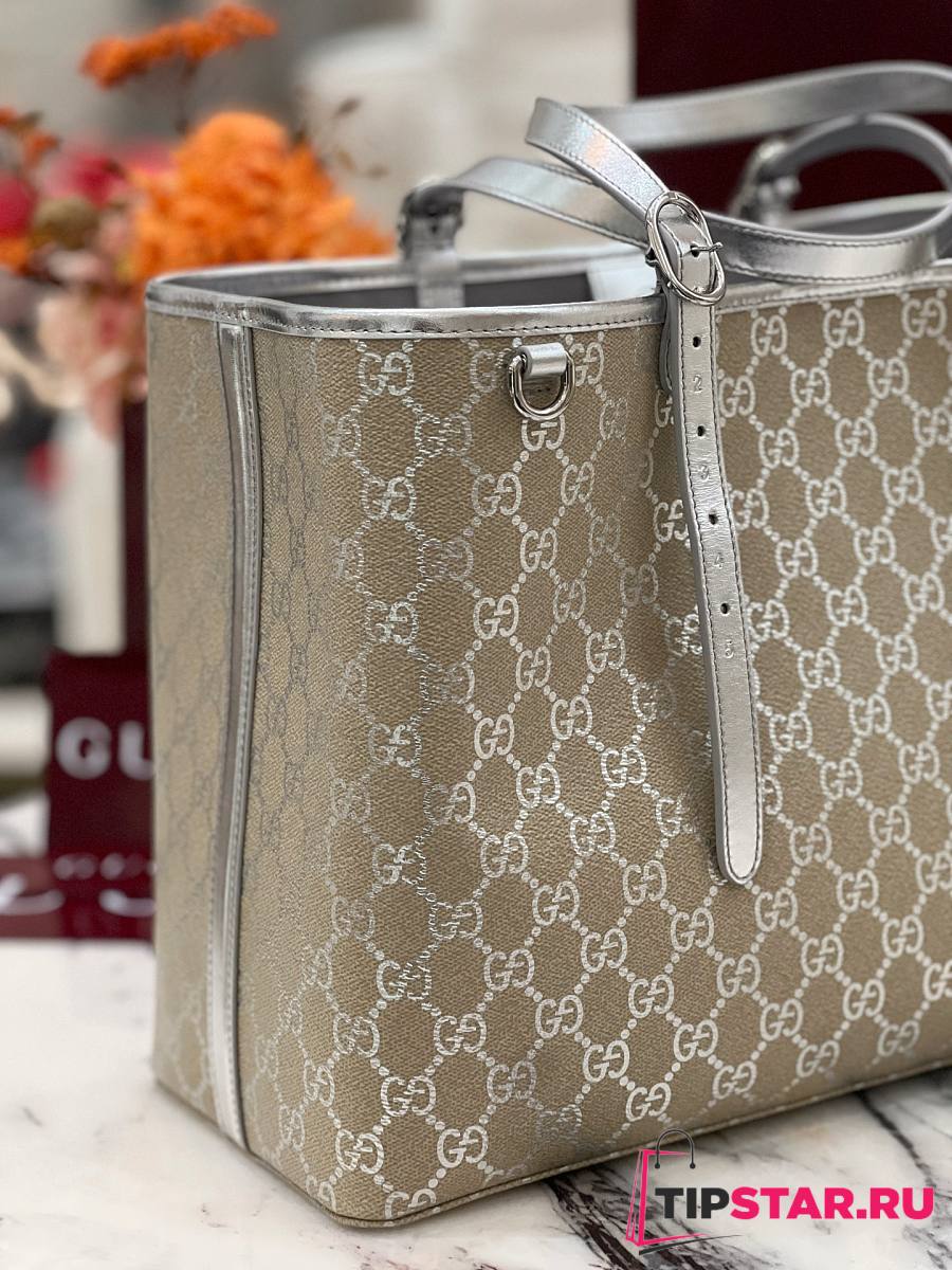 Gucci GG Emblem large tote bag silver fabric