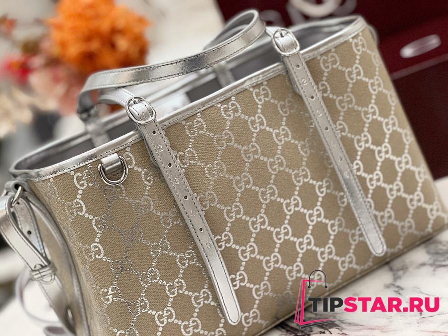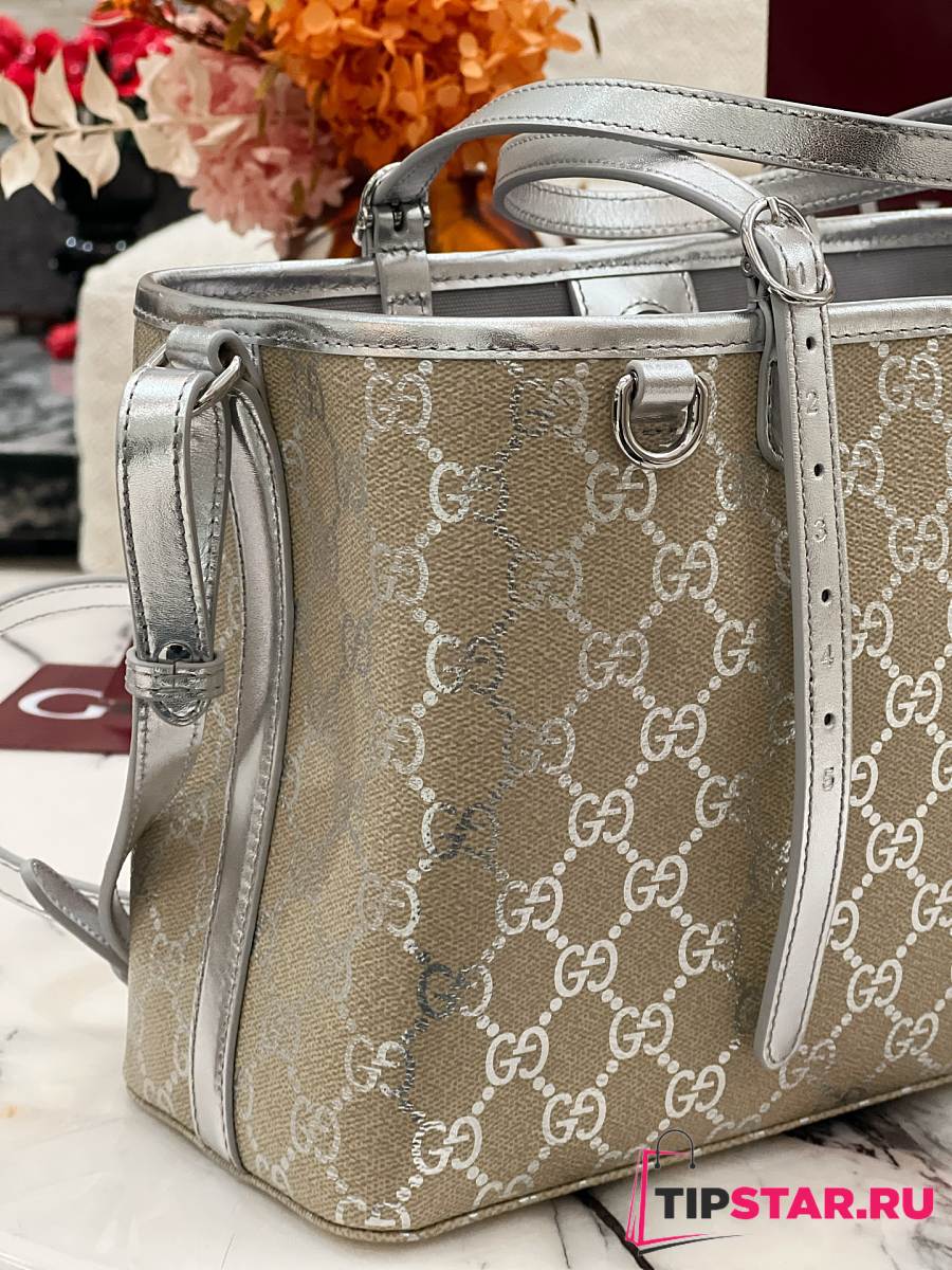 Gucci GG Emblem medium tote bag silver fabric