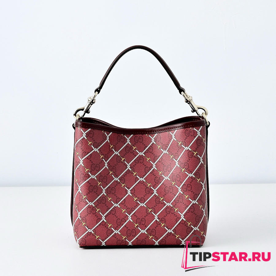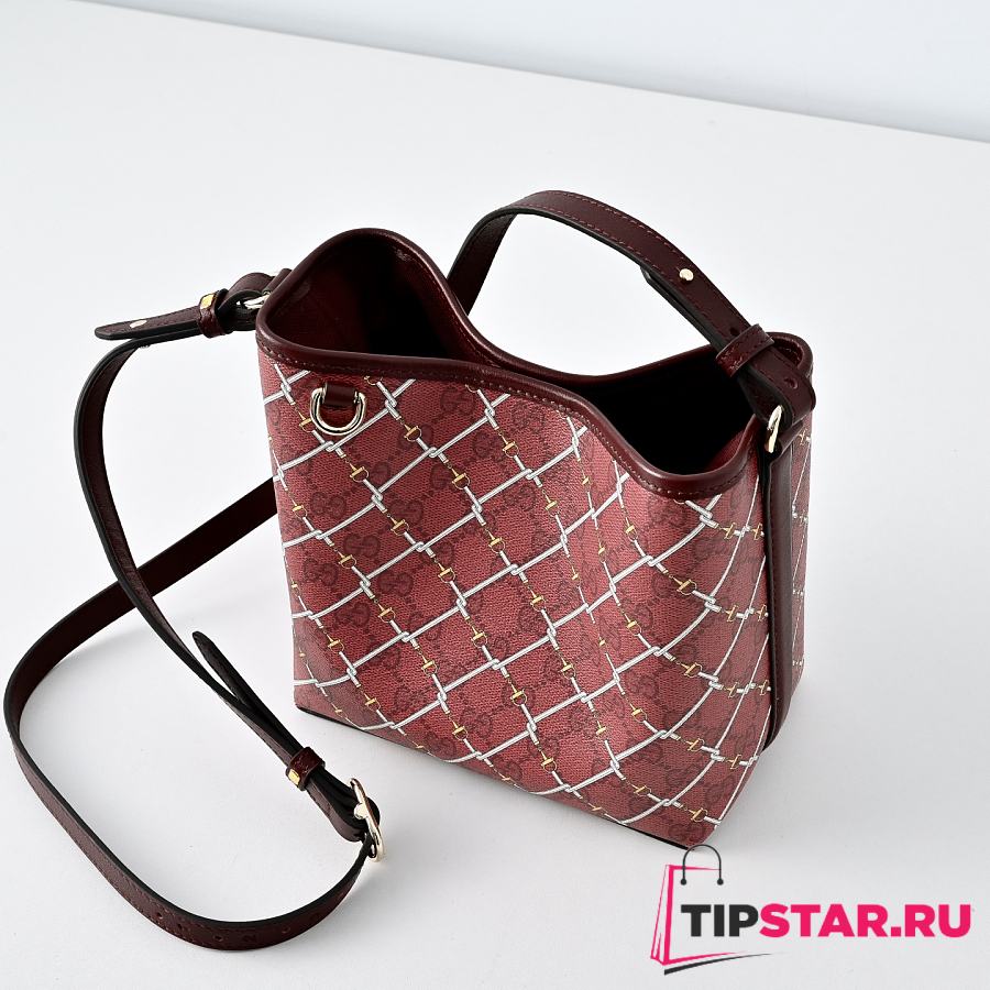 Gucci GG Emblem small bucket bag burgundy leather trim