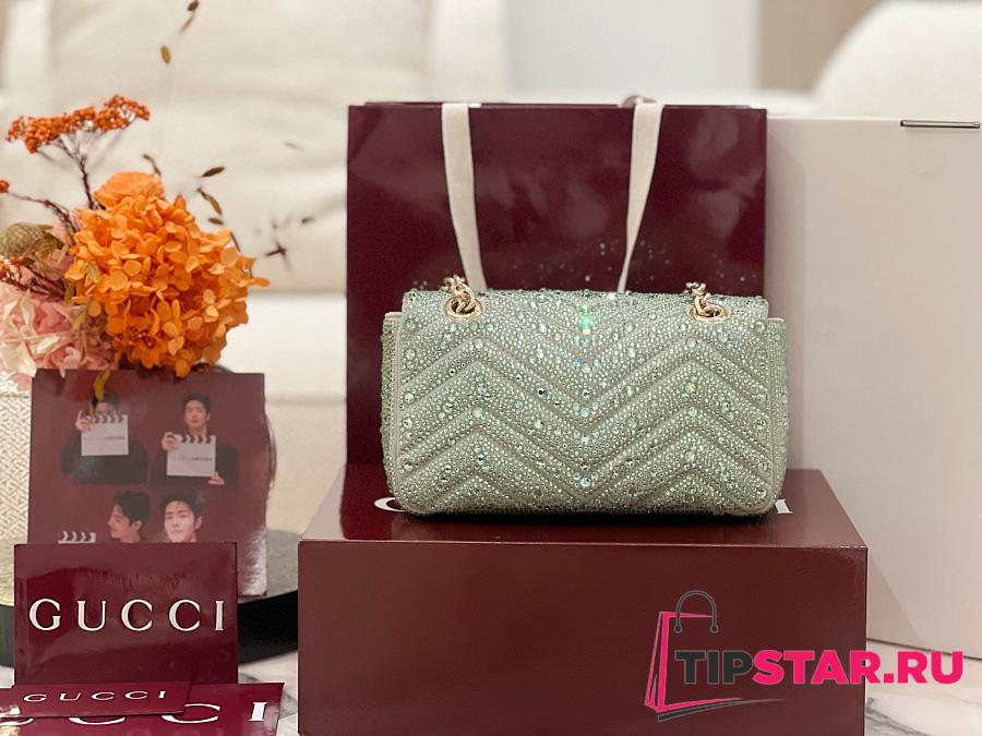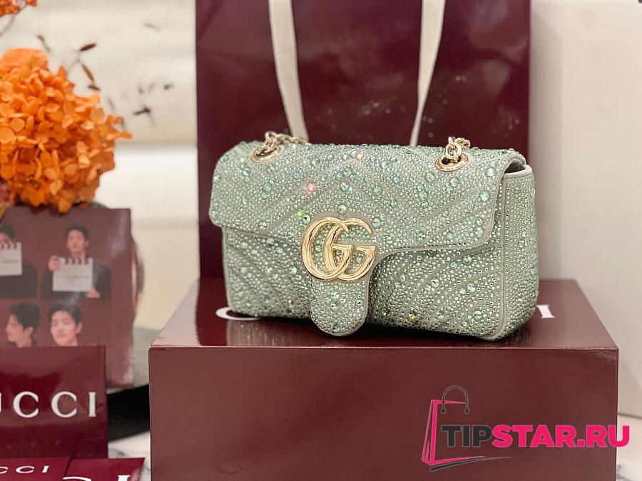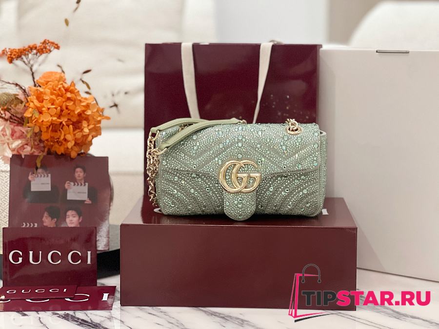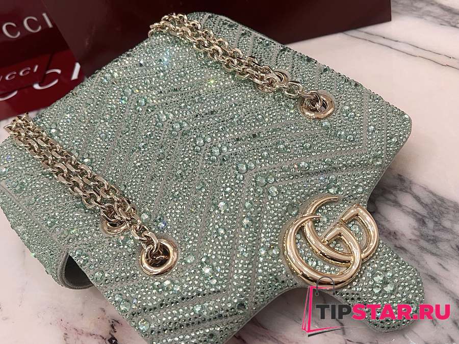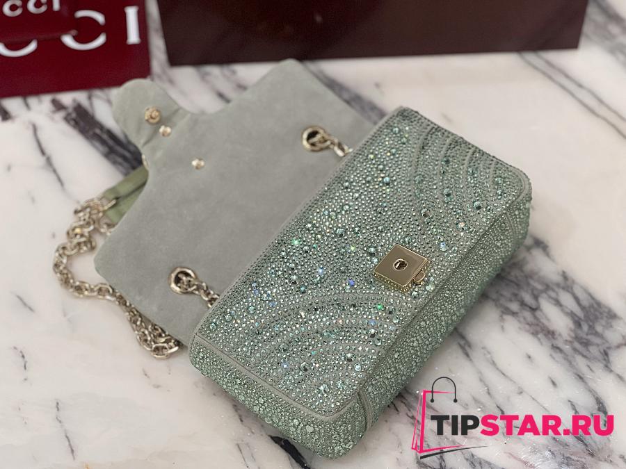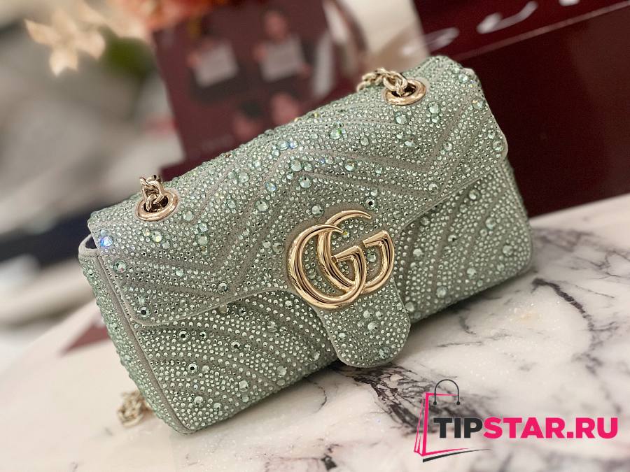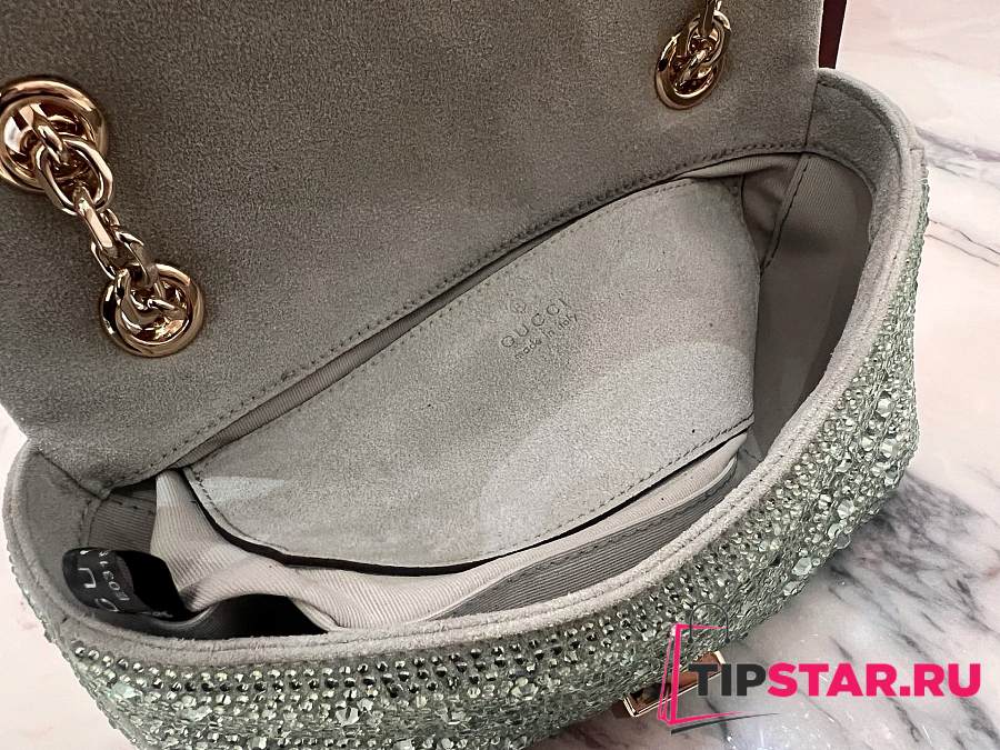 Gucci GG Marmont crystals small shoulder bag pale green nubuck leather