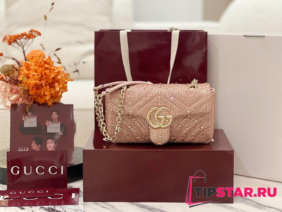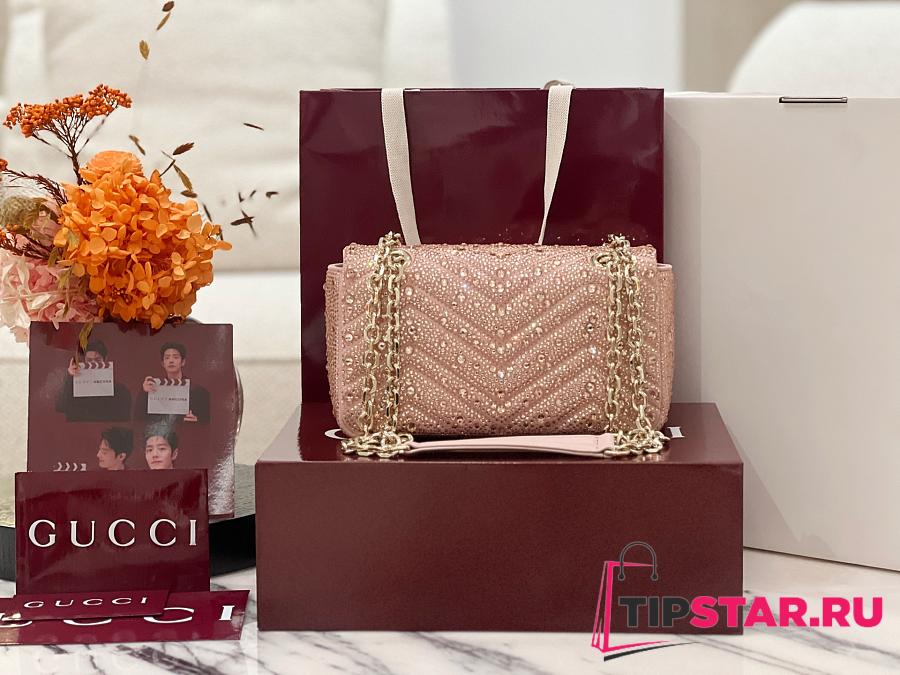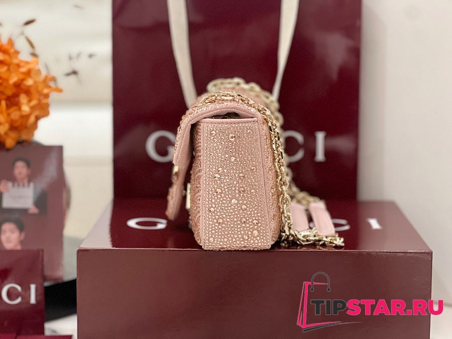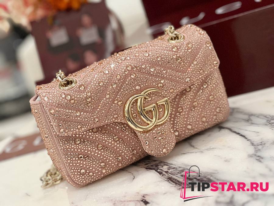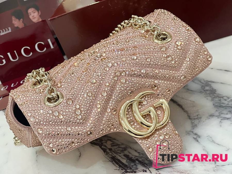 Gucci GG Marmont crystals small shoulder bag pink beige leather
