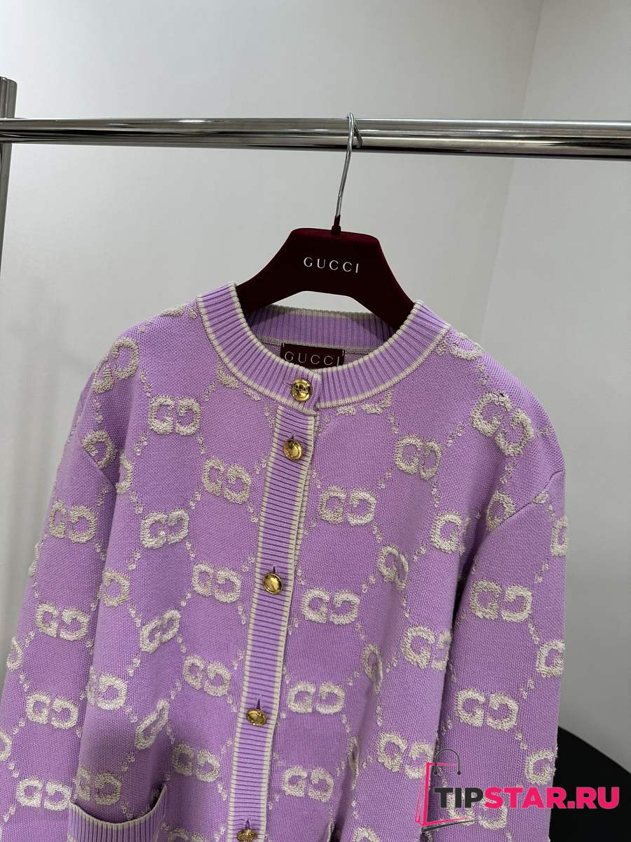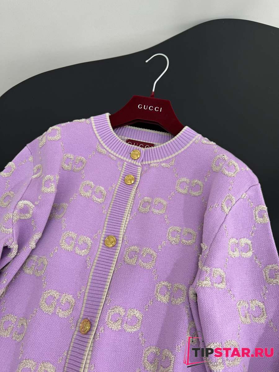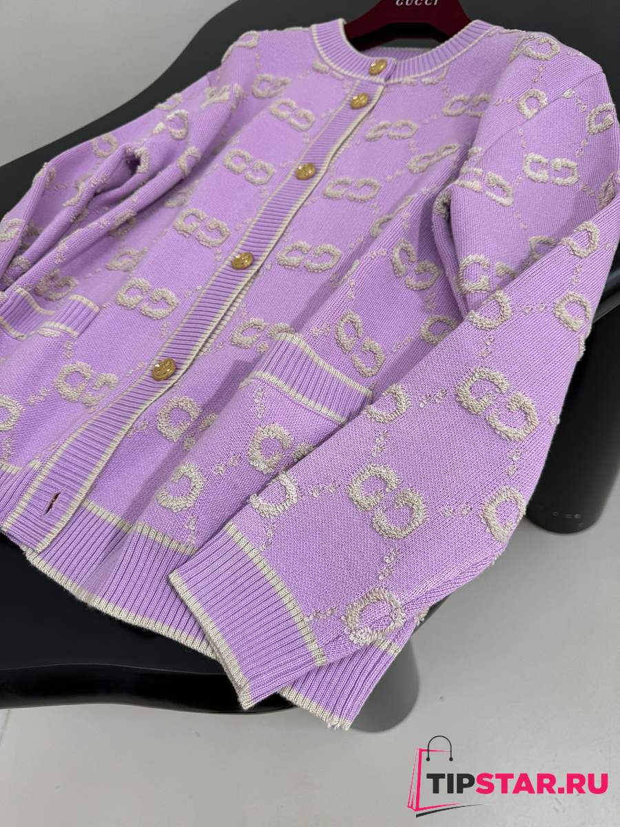 Gucci GG Wool Jacquard Cardigan Purple