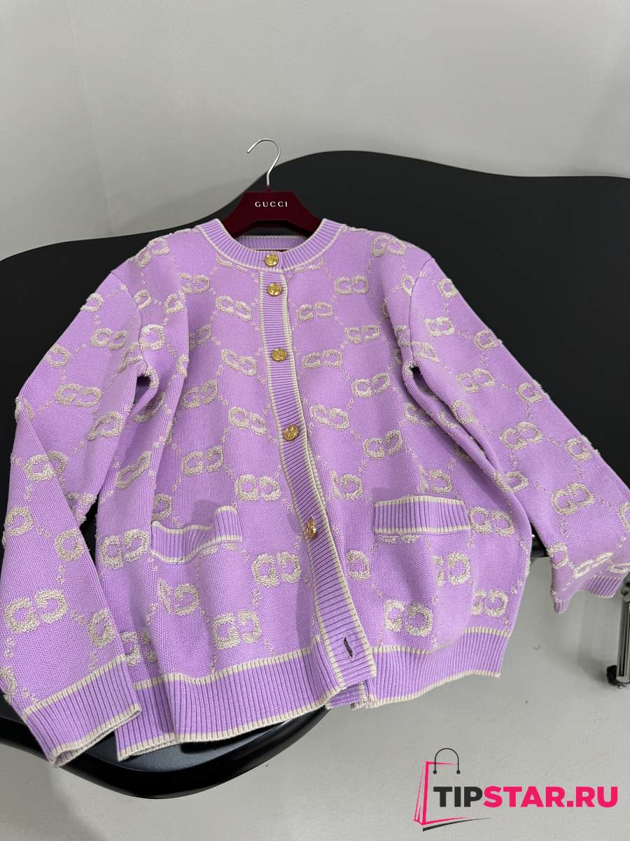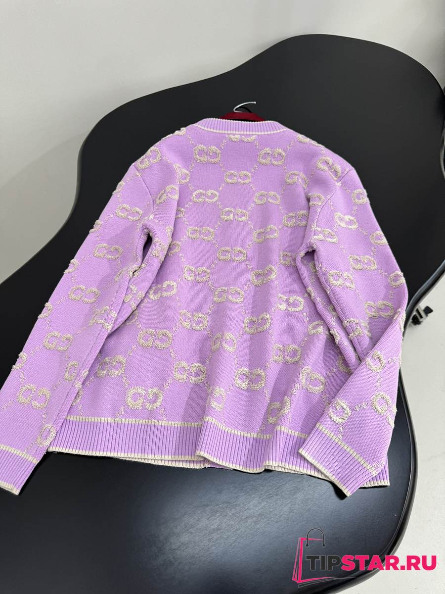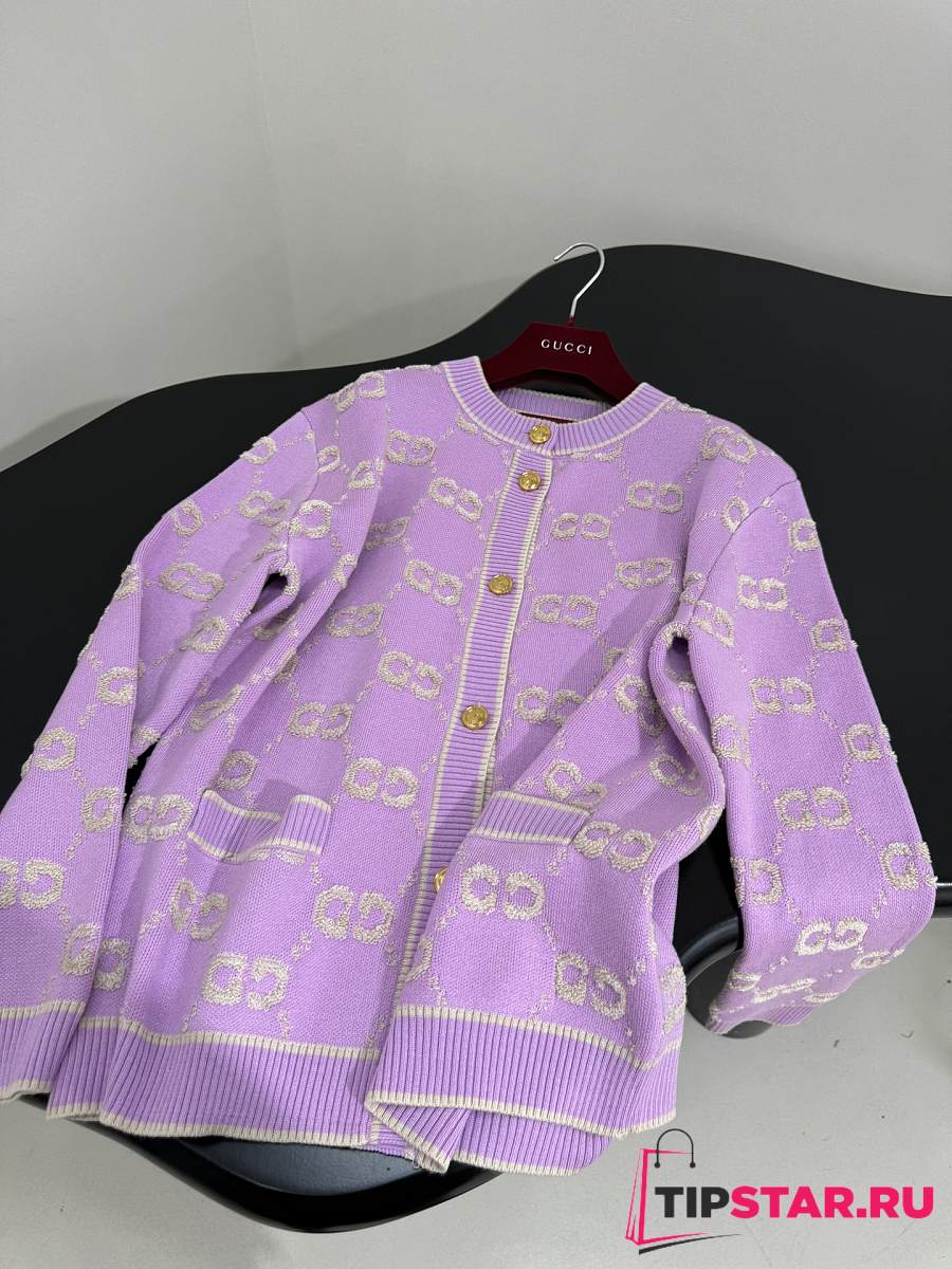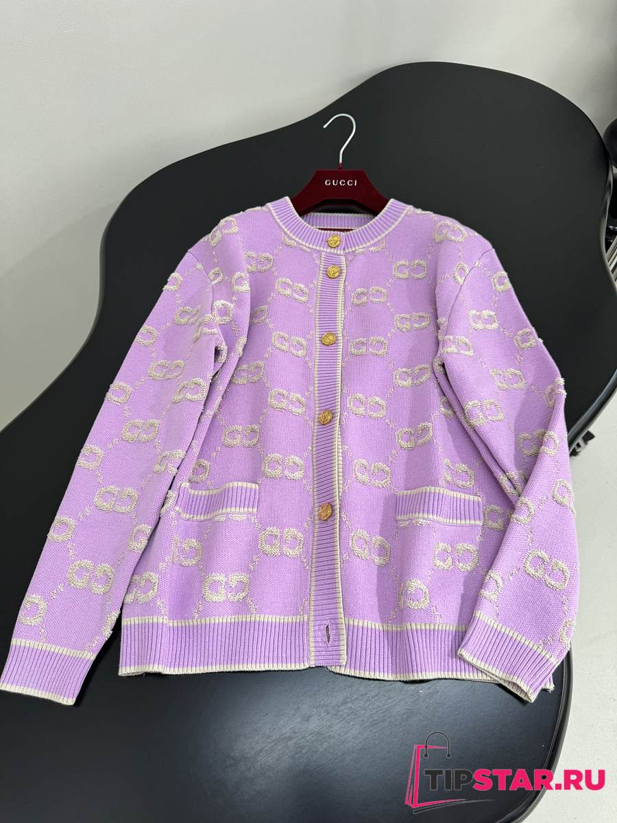 Gucci GG Wool Jacquard Cardigan Purple
