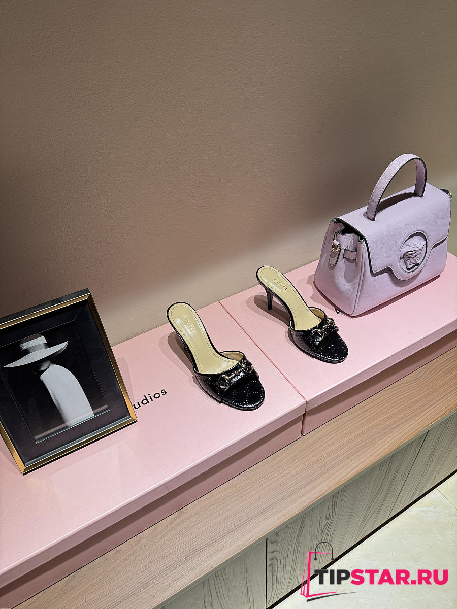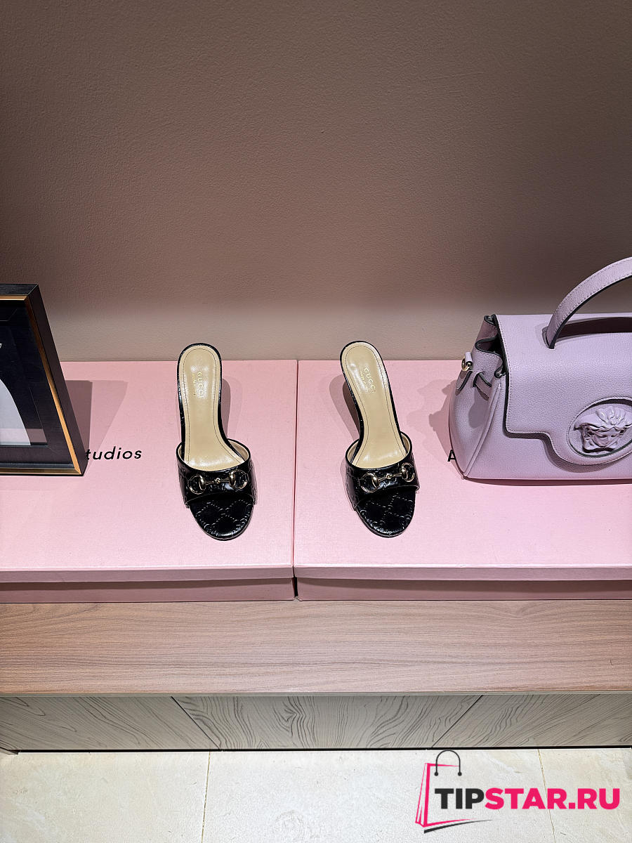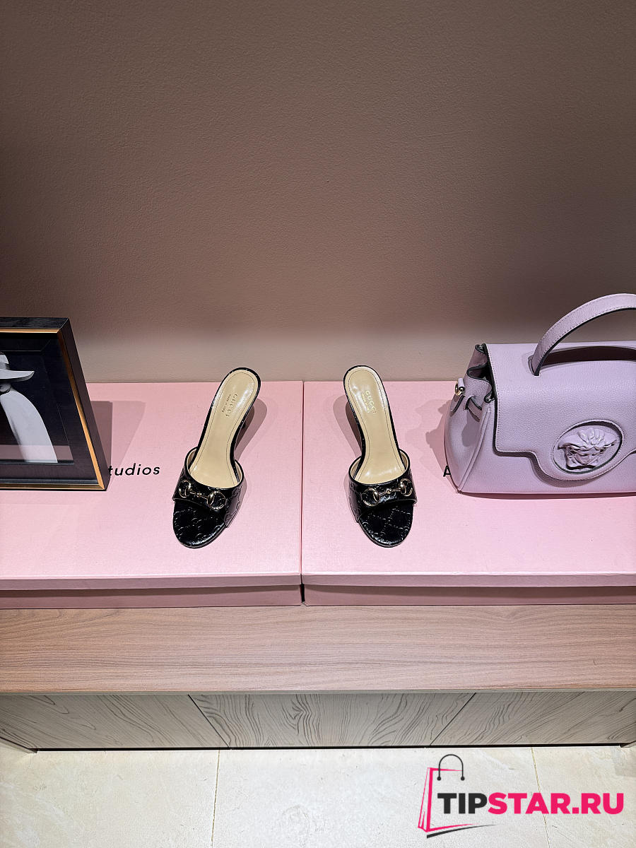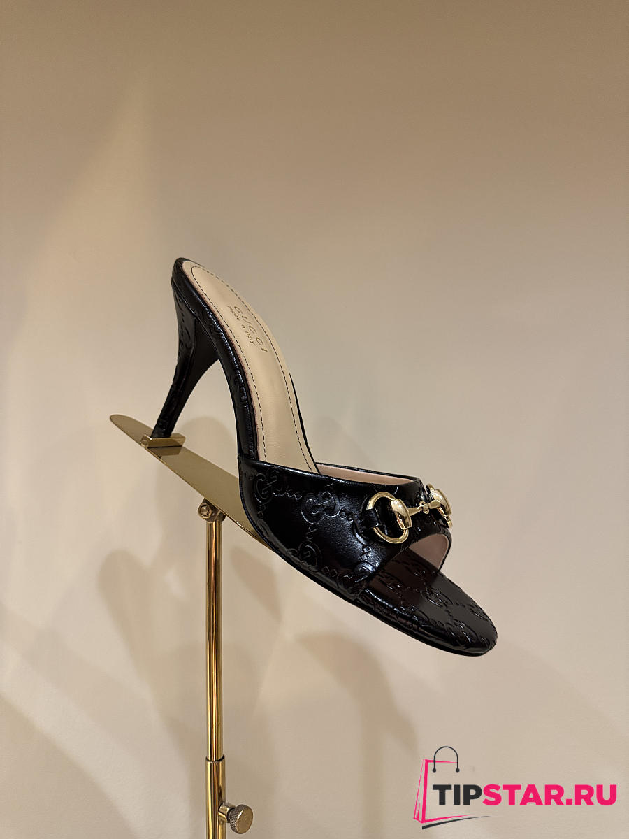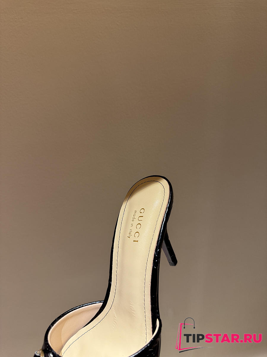 Gucci Metal Buckle Mid Heel Elegant Women Black