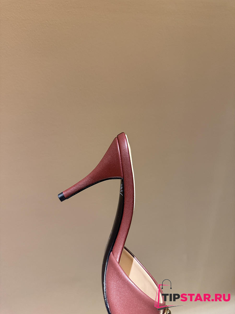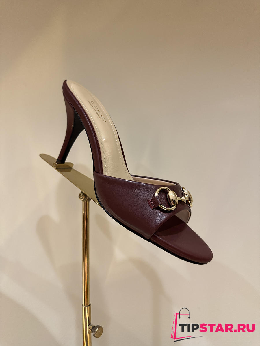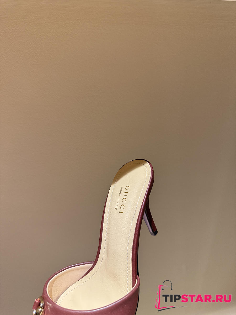 Gucci Metal Buckle Mid Heel Elegant Women Burgundy