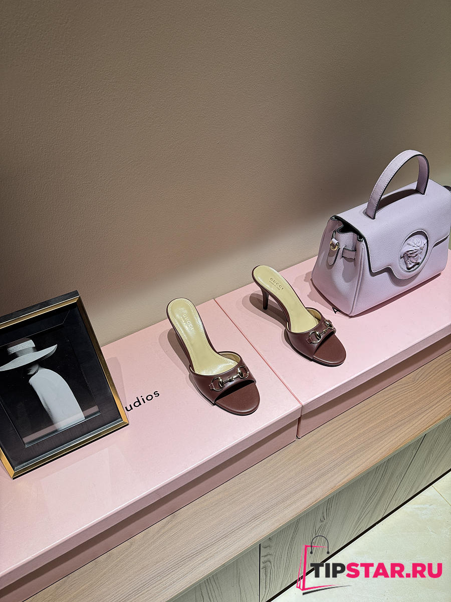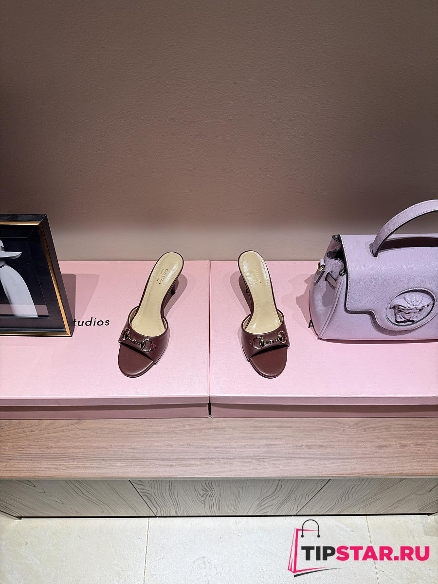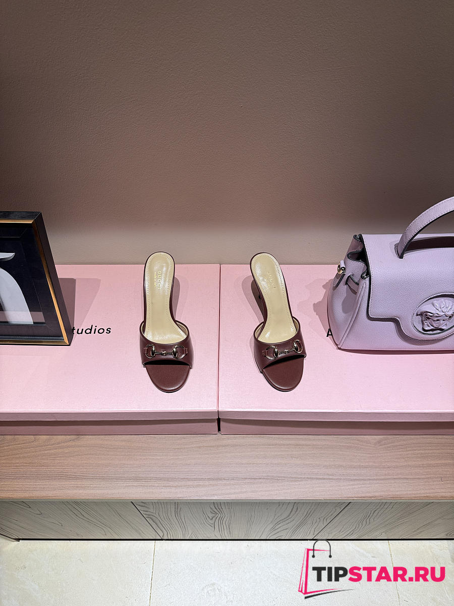 Gucci Metal Buckle Mid Heel Elegant Women Burgundy