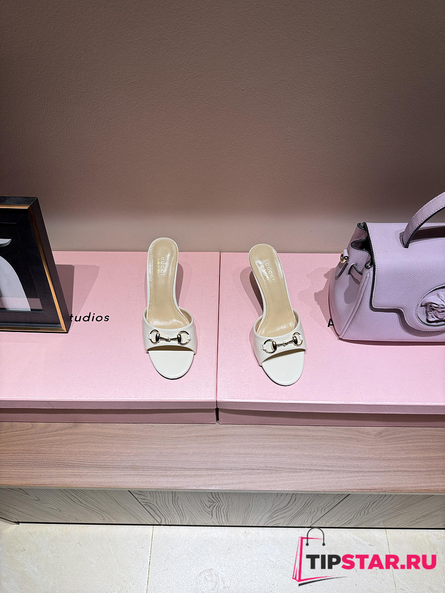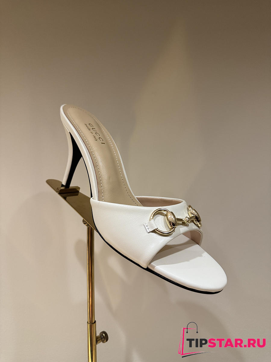 Gucci Metal Buckle Mid Heel Elegant Women White