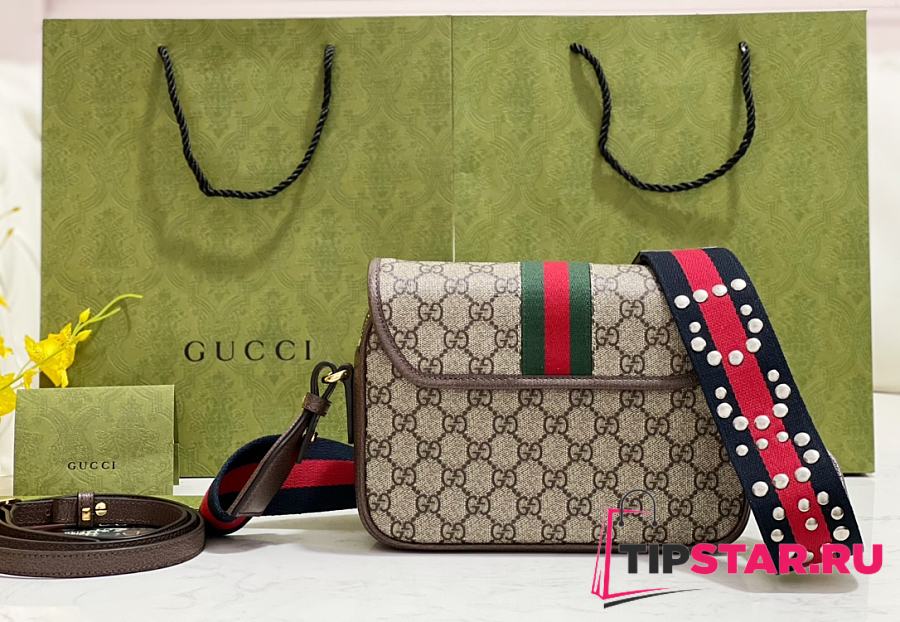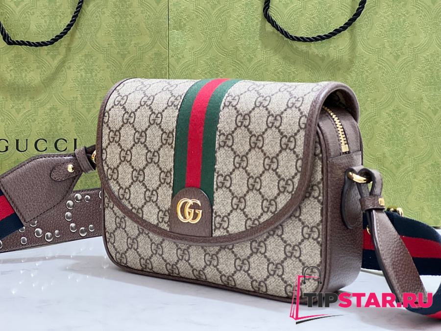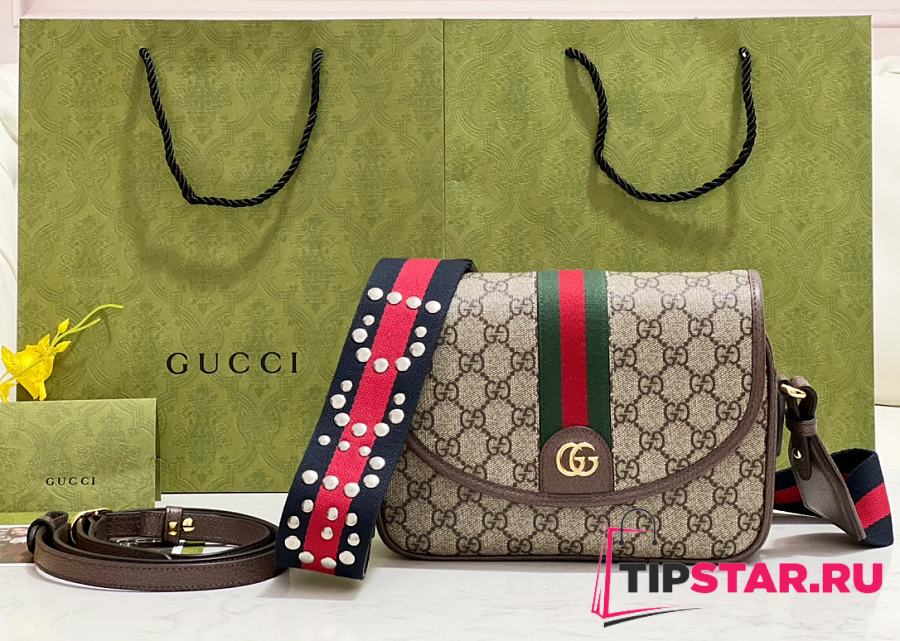 GUCCI OPHIDIA GG SMALL SHOULDER BAG BROWN