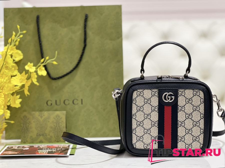 Gucci Ophidia Shoulder Bag Navy Blue Leather Plastic