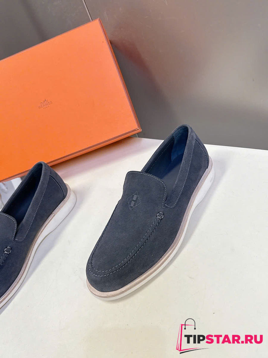 Hermès low loafers in suede combine sleek design Slate Blue Suede
