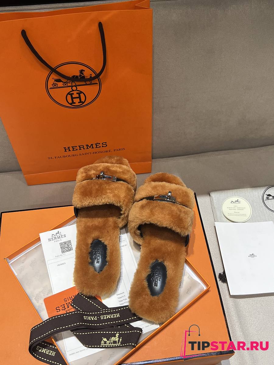 Hermes Fur slippers 01
