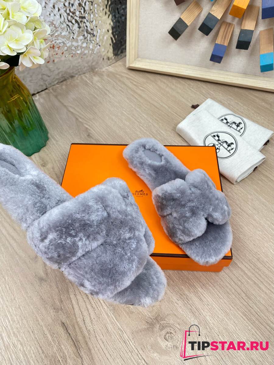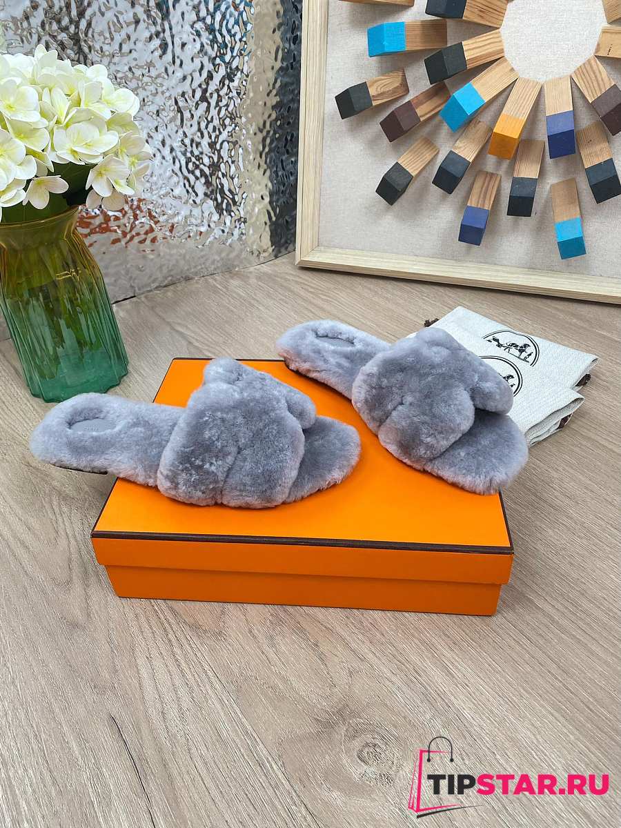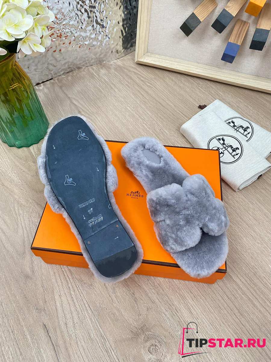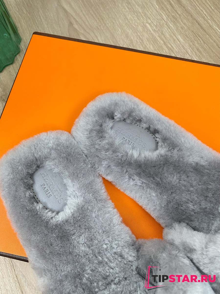 Hermes Furry Flat Slippers 06