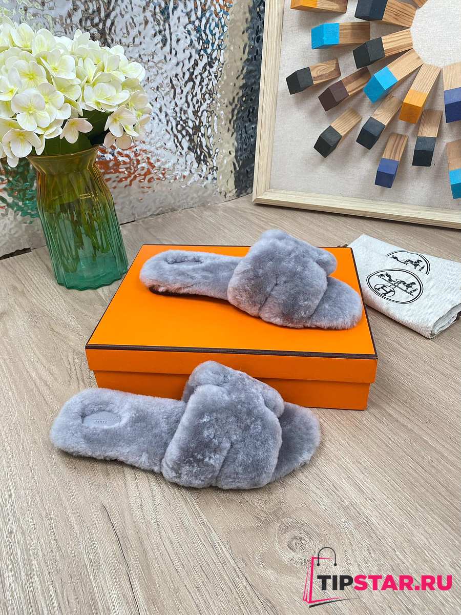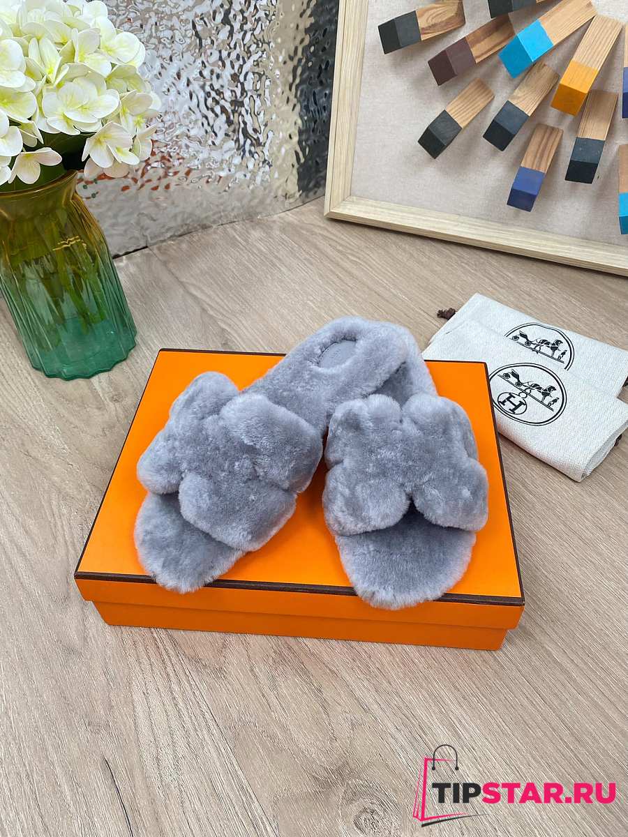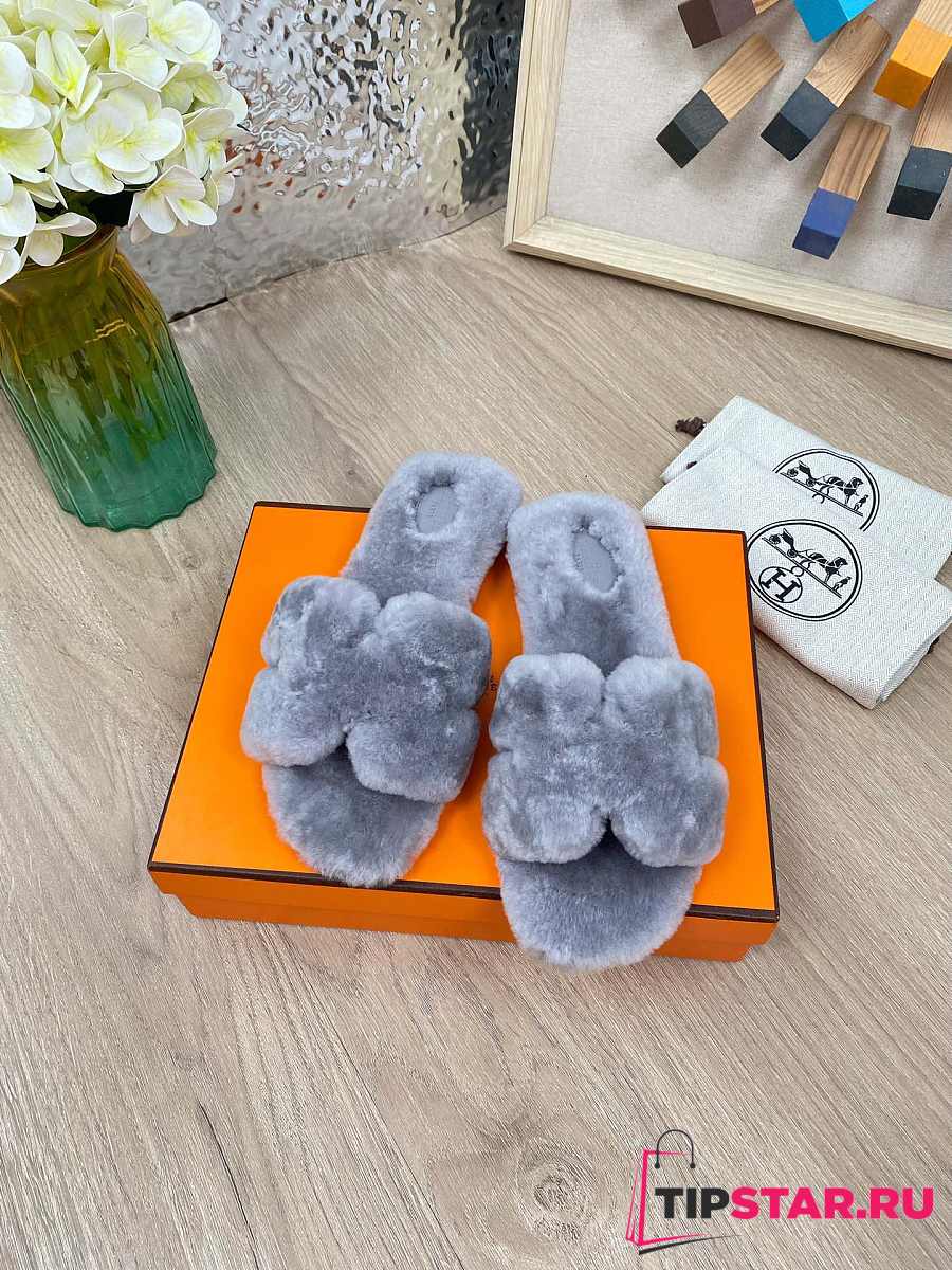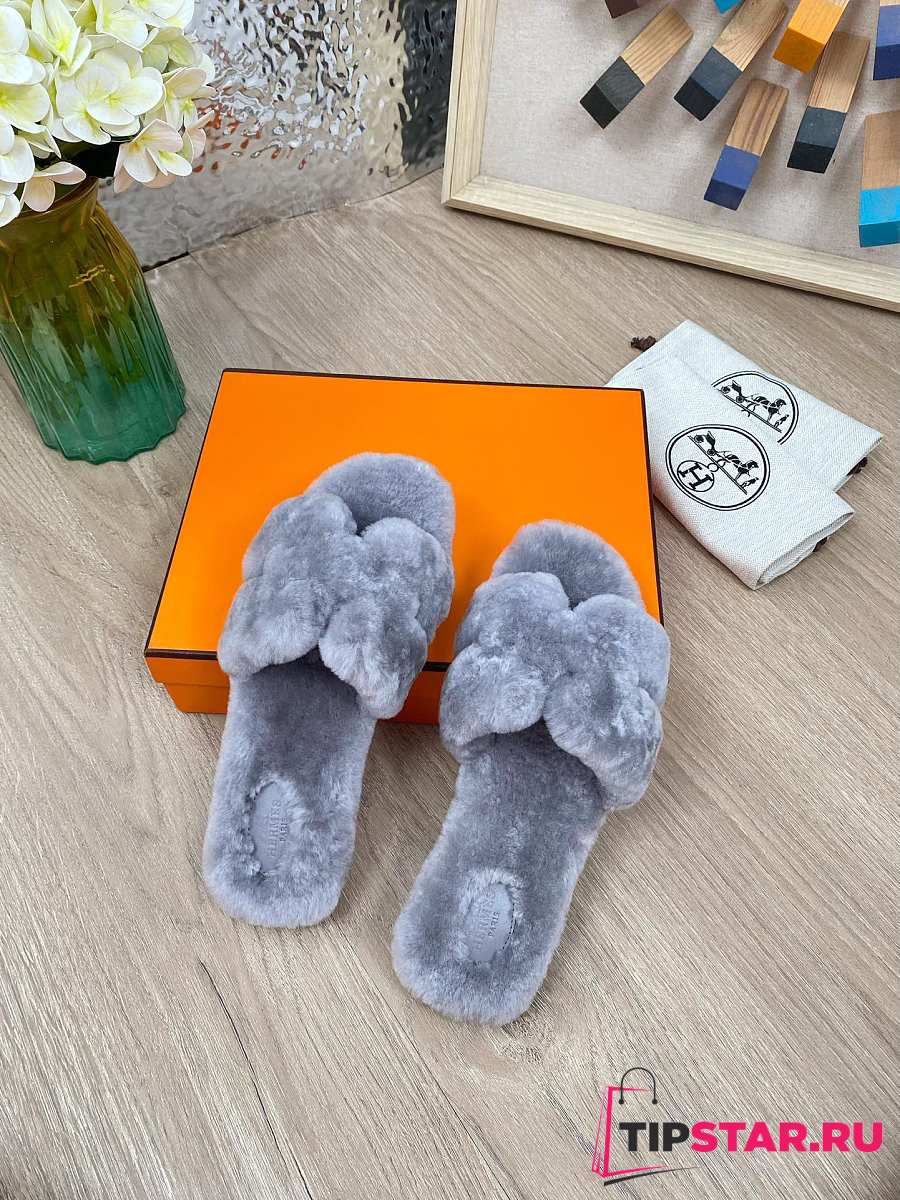 Hermes Furry Flat Slippers 06