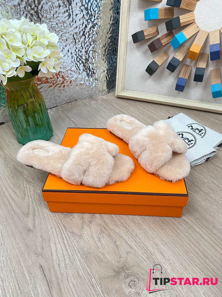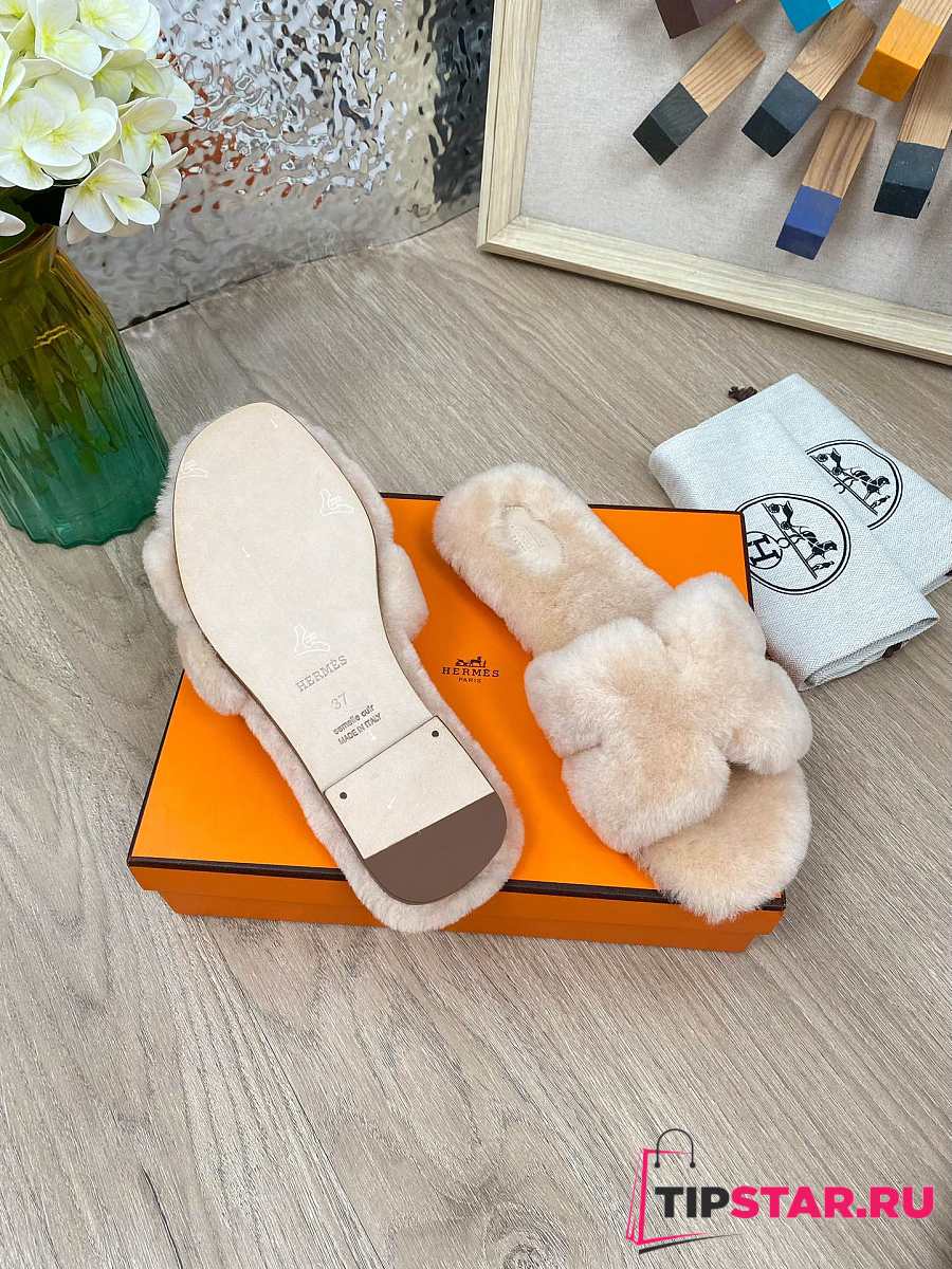 Hermes Furry Flat Slippers 07