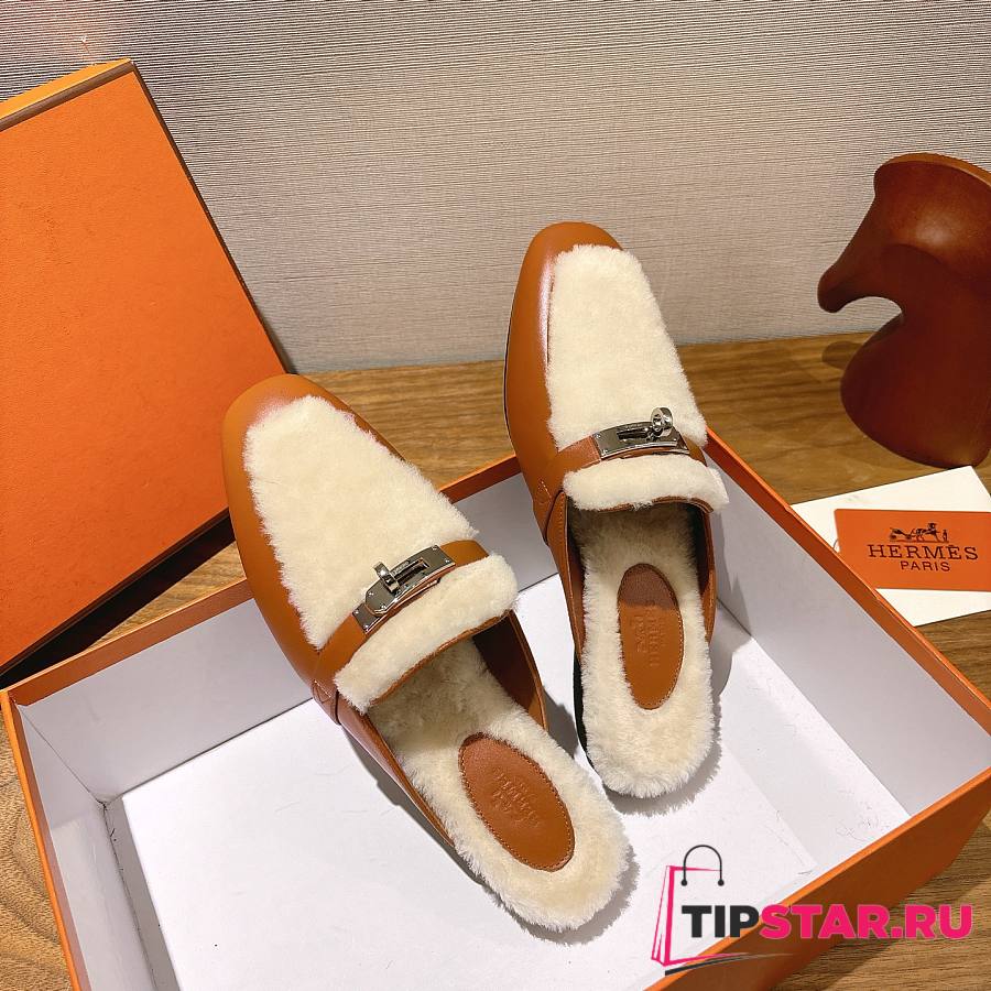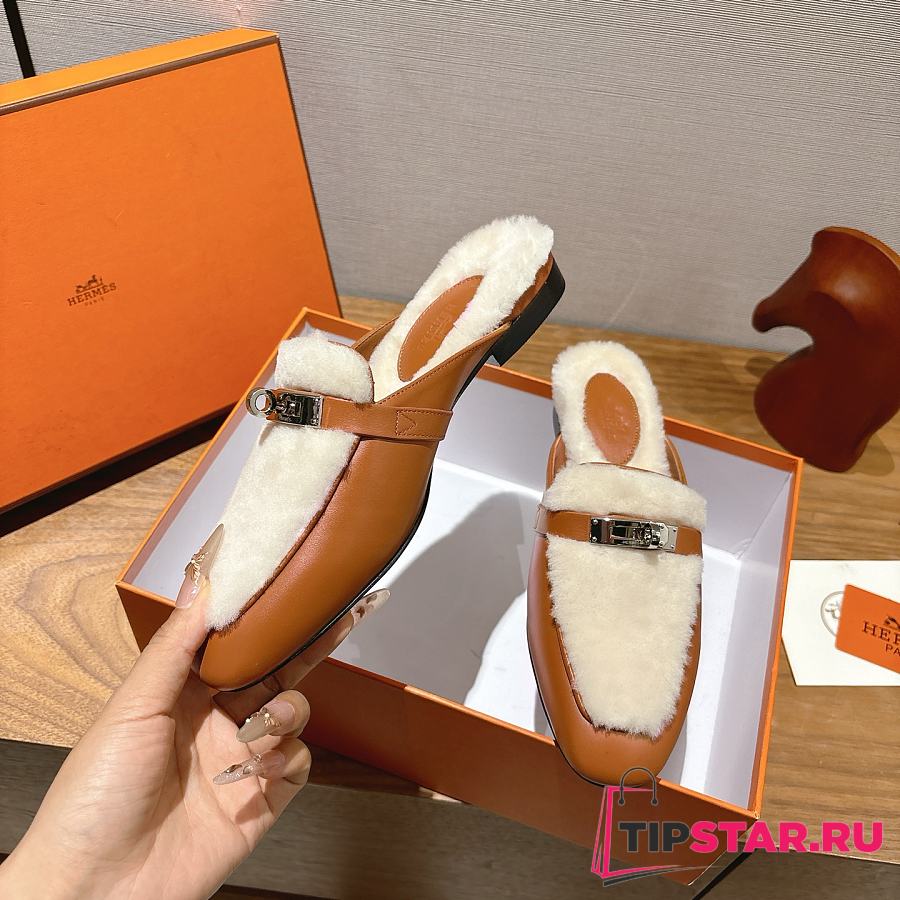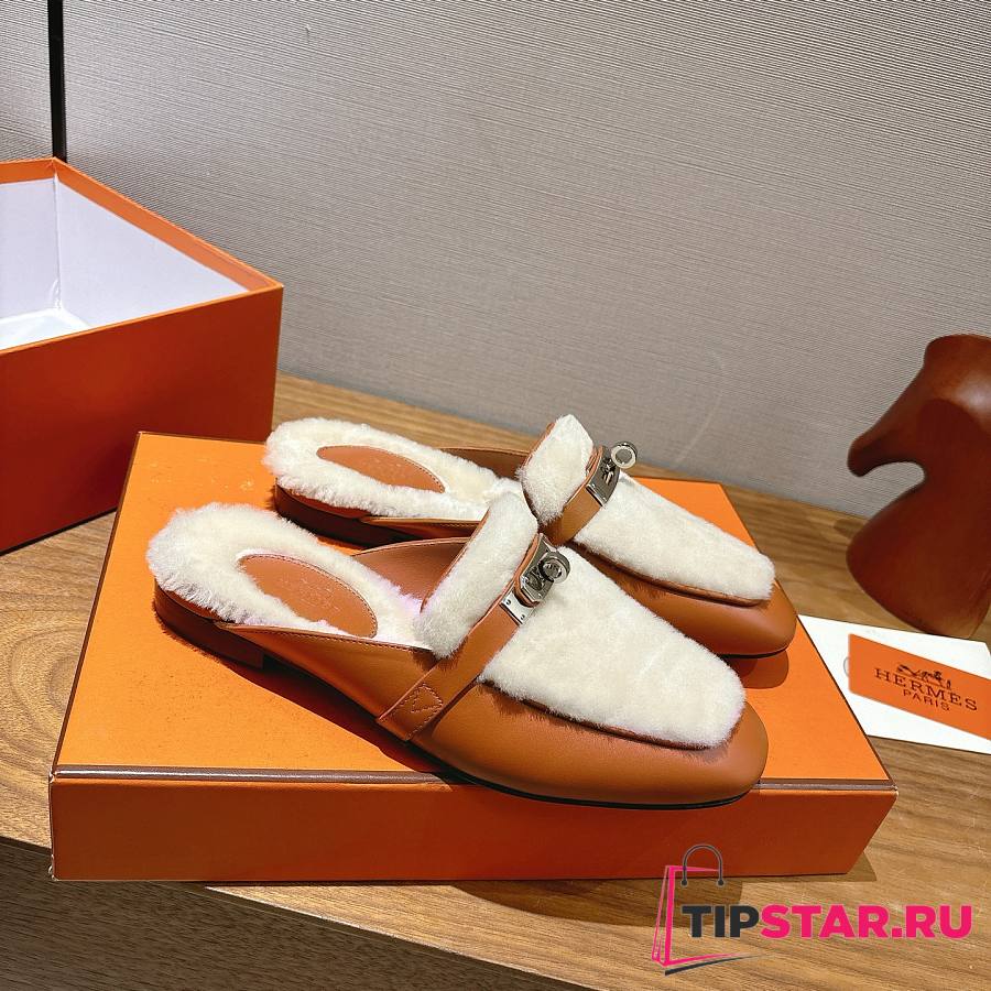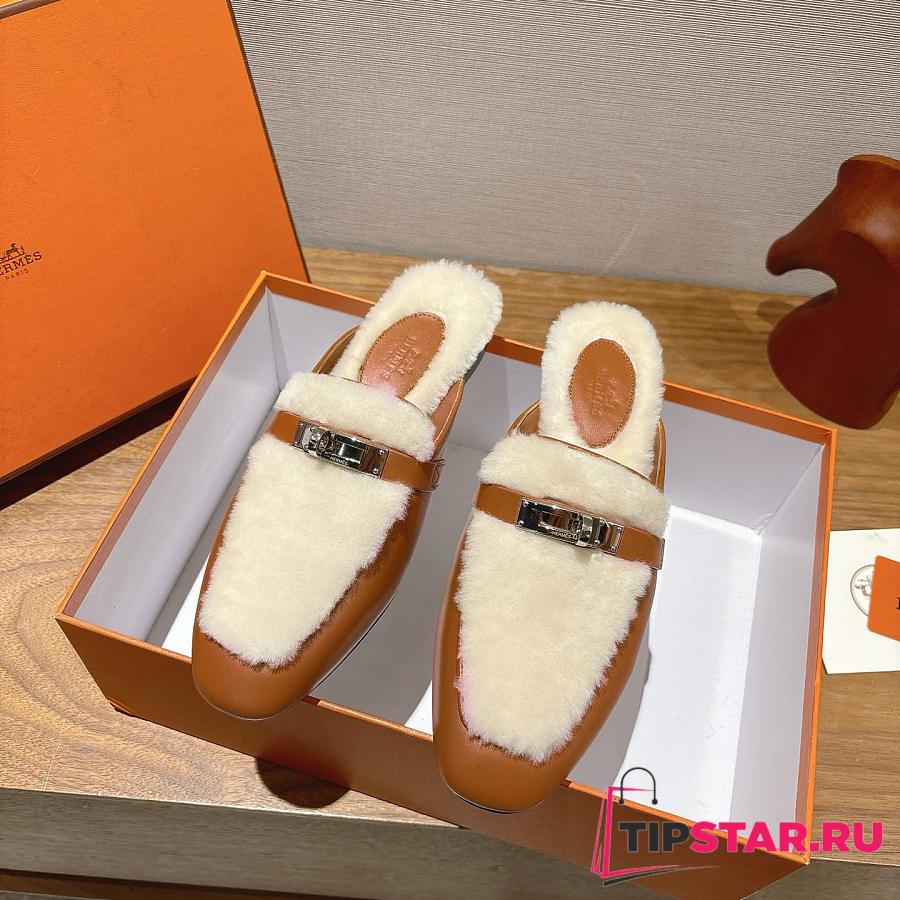 Hermes H-House Wool Mules with Classic Kelly Buckle Brown