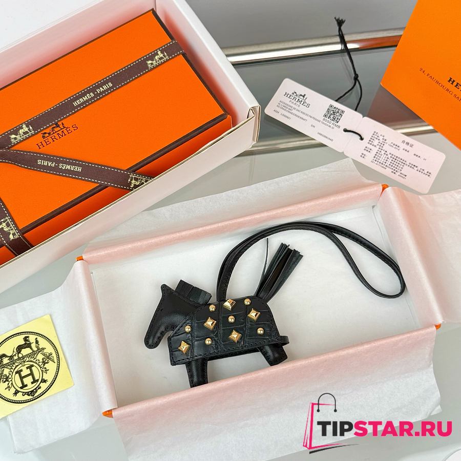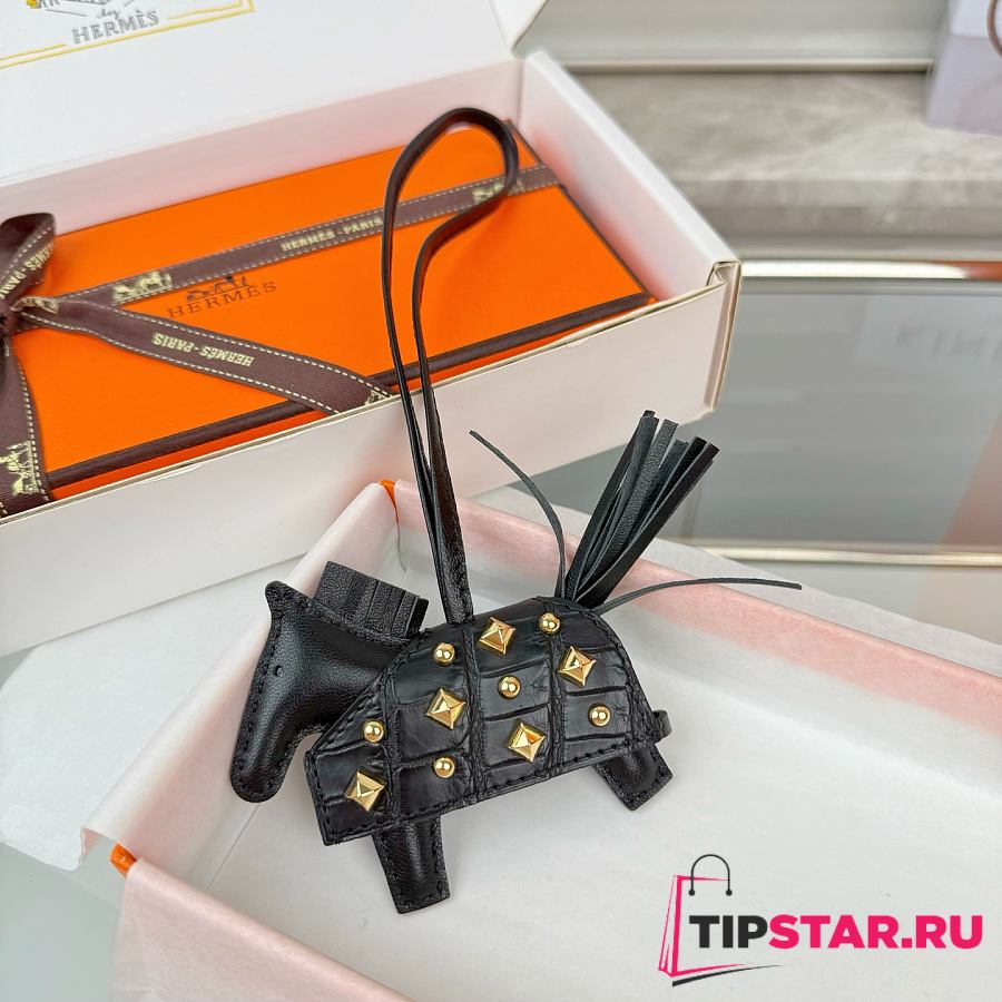 Hermes Rodeo Robeo Coeur Pony Bag Keychain Black Gold