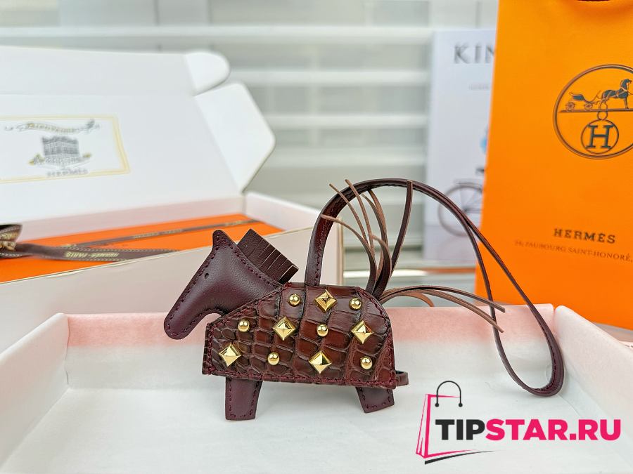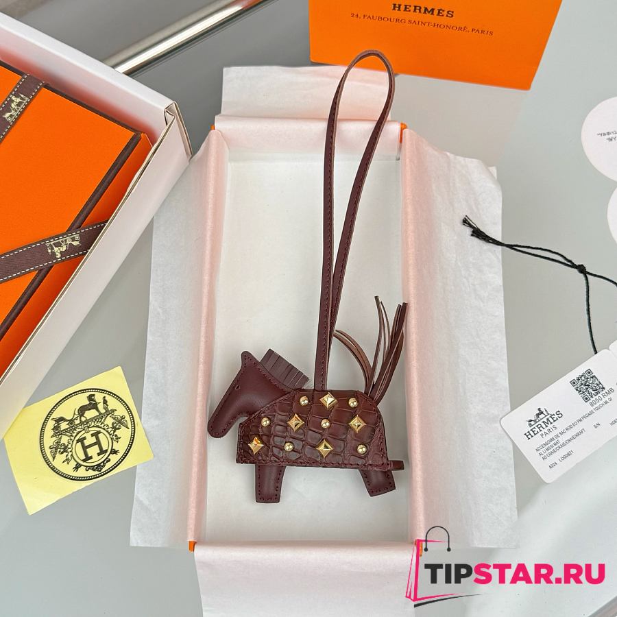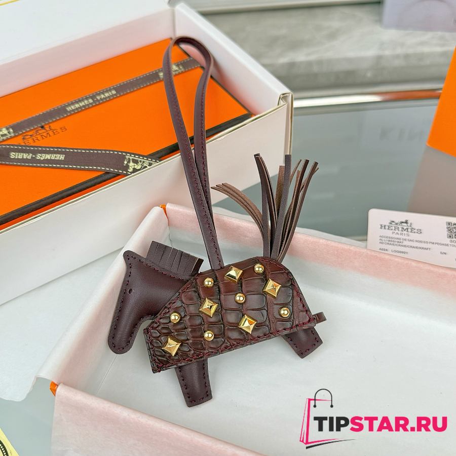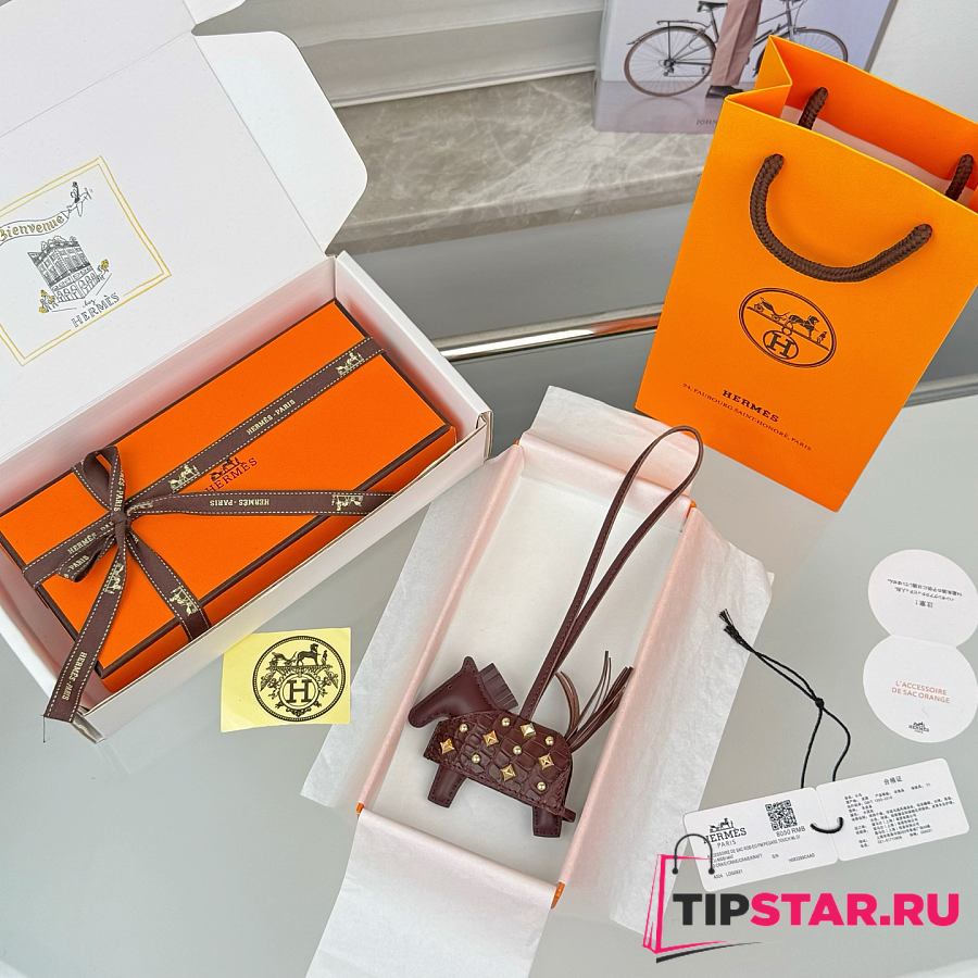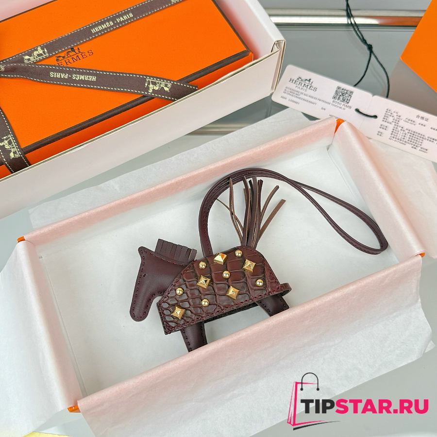Hermes Rodeo Robeo Coeur Pony Bag Keychain Brown Gold