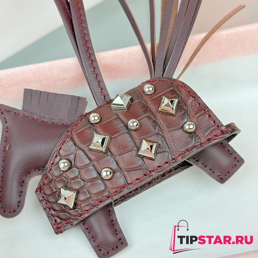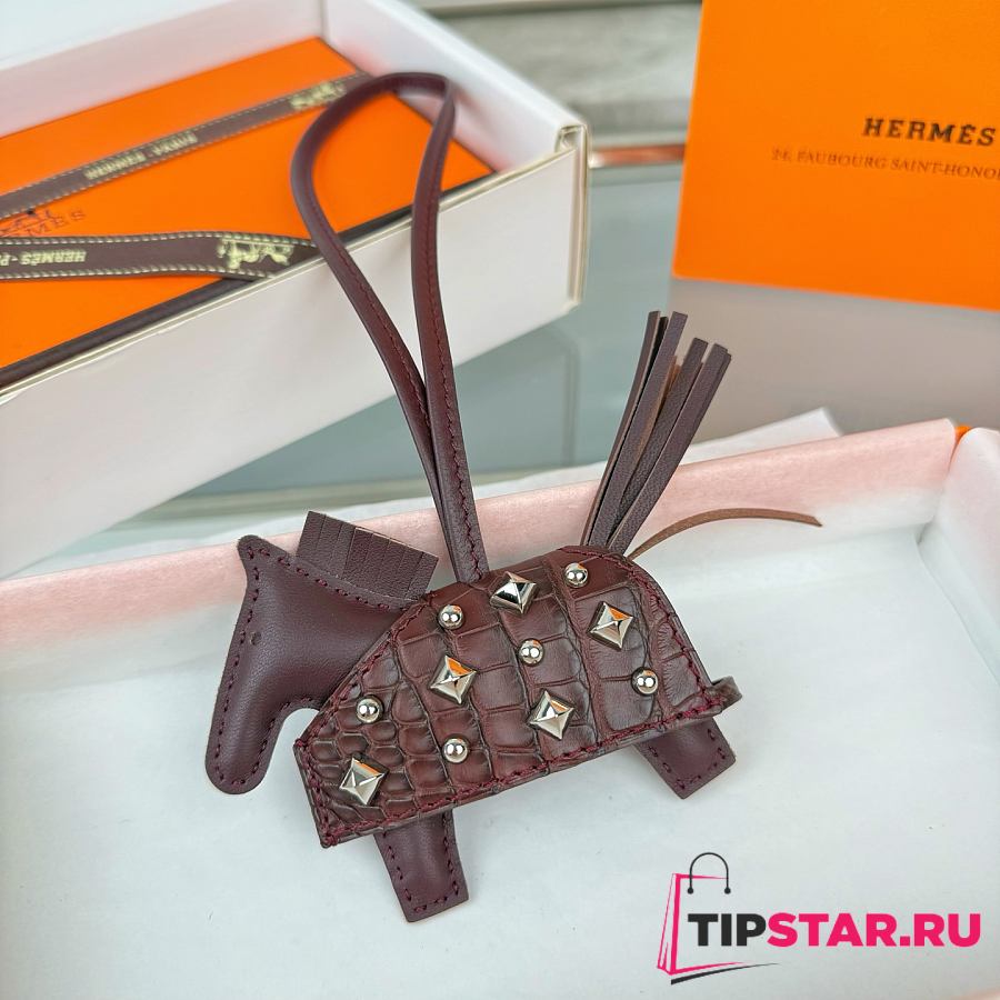 Hermes Rodeo Robeo Coeur Pony Bag Keychain Brown Silver