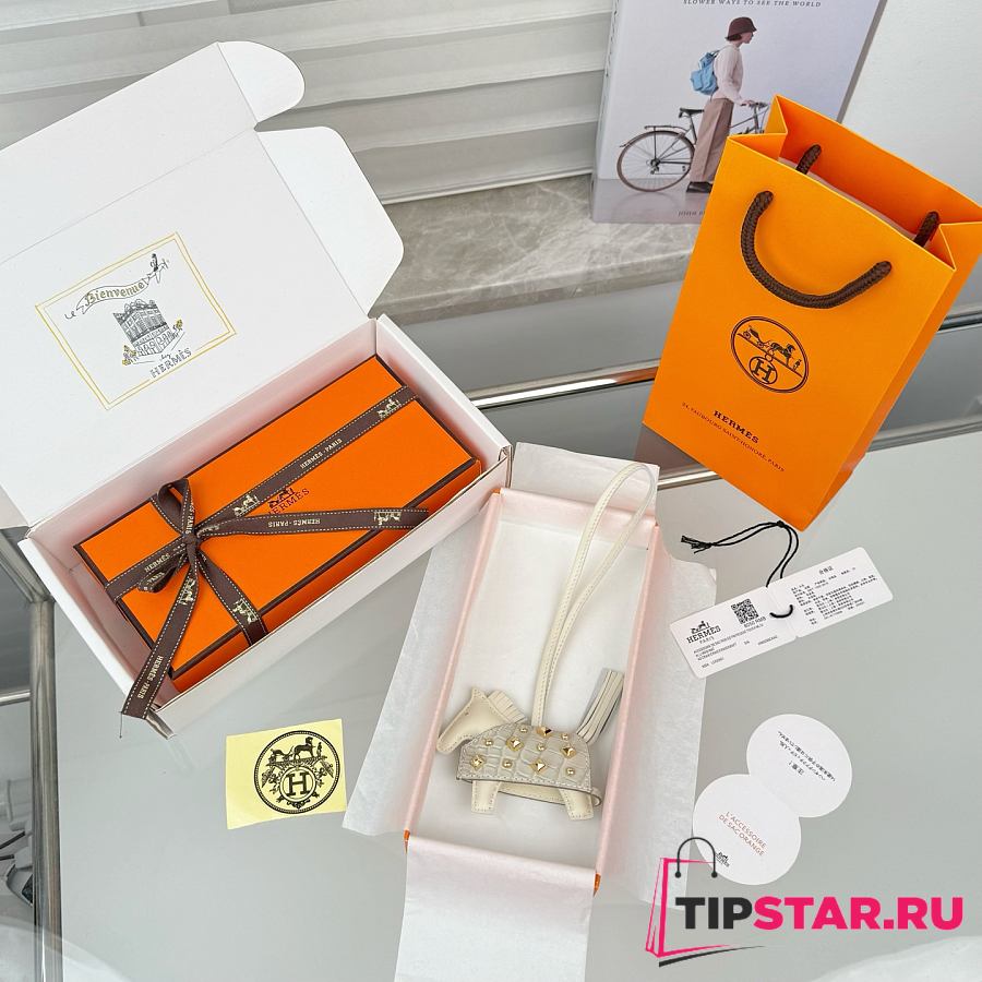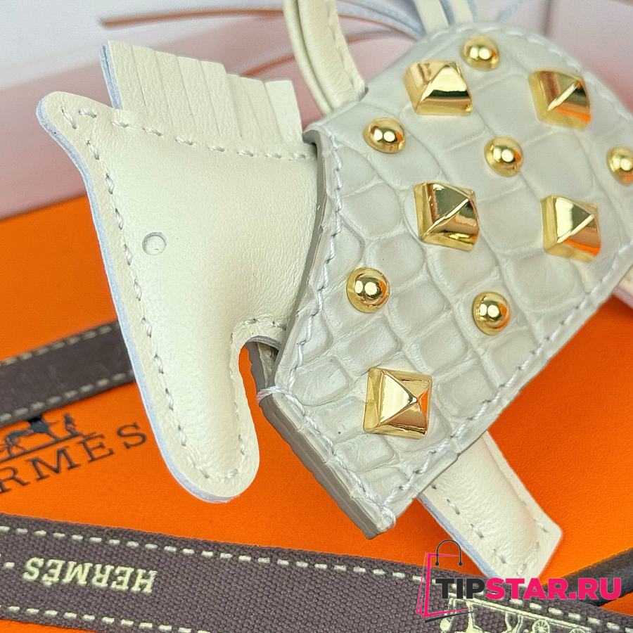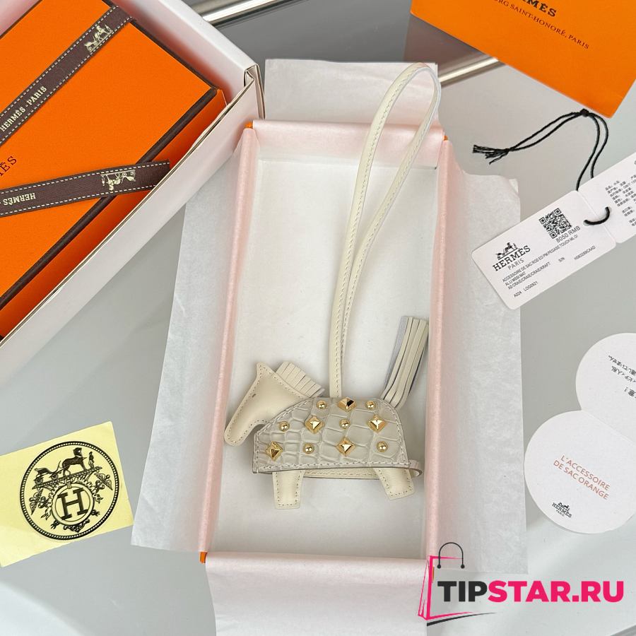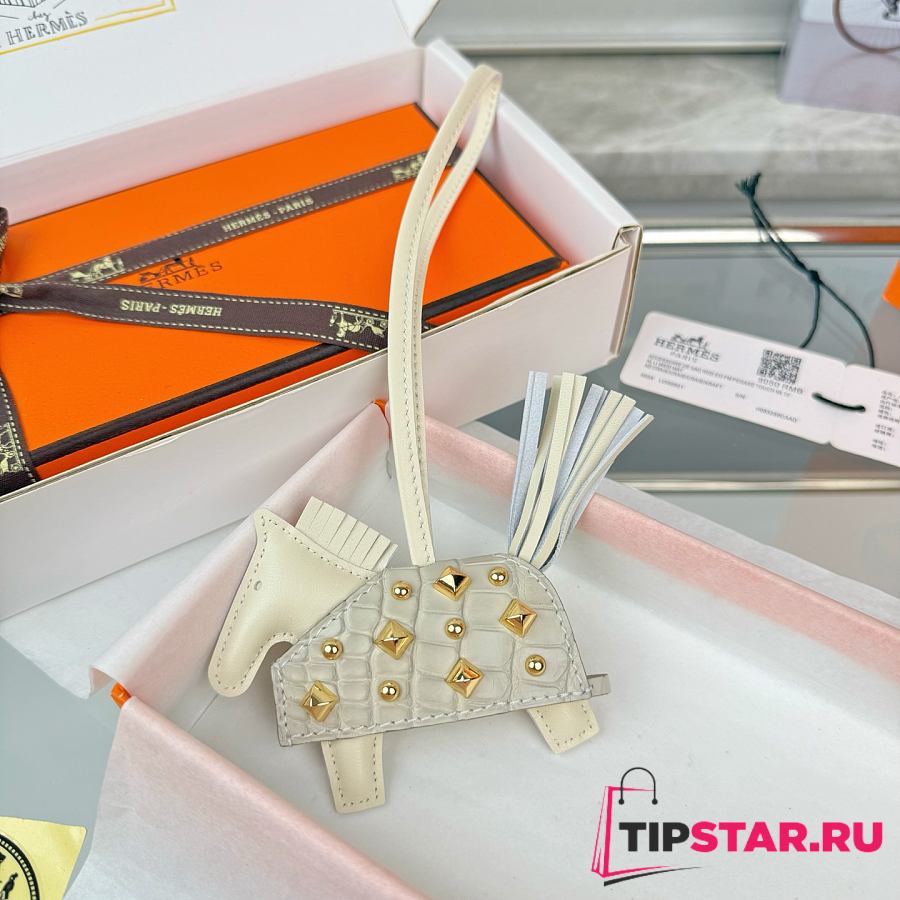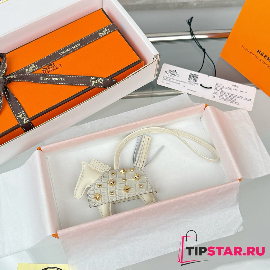 Hermes Rodeo Robeo Coeur Pony Bag Keychain White Gold