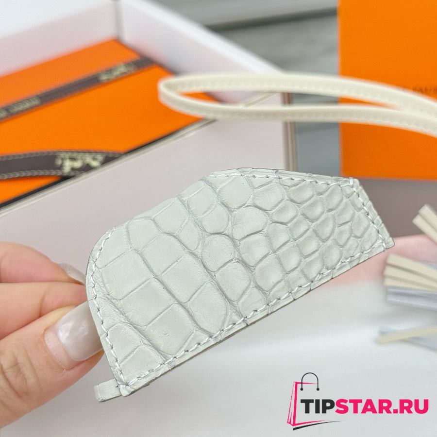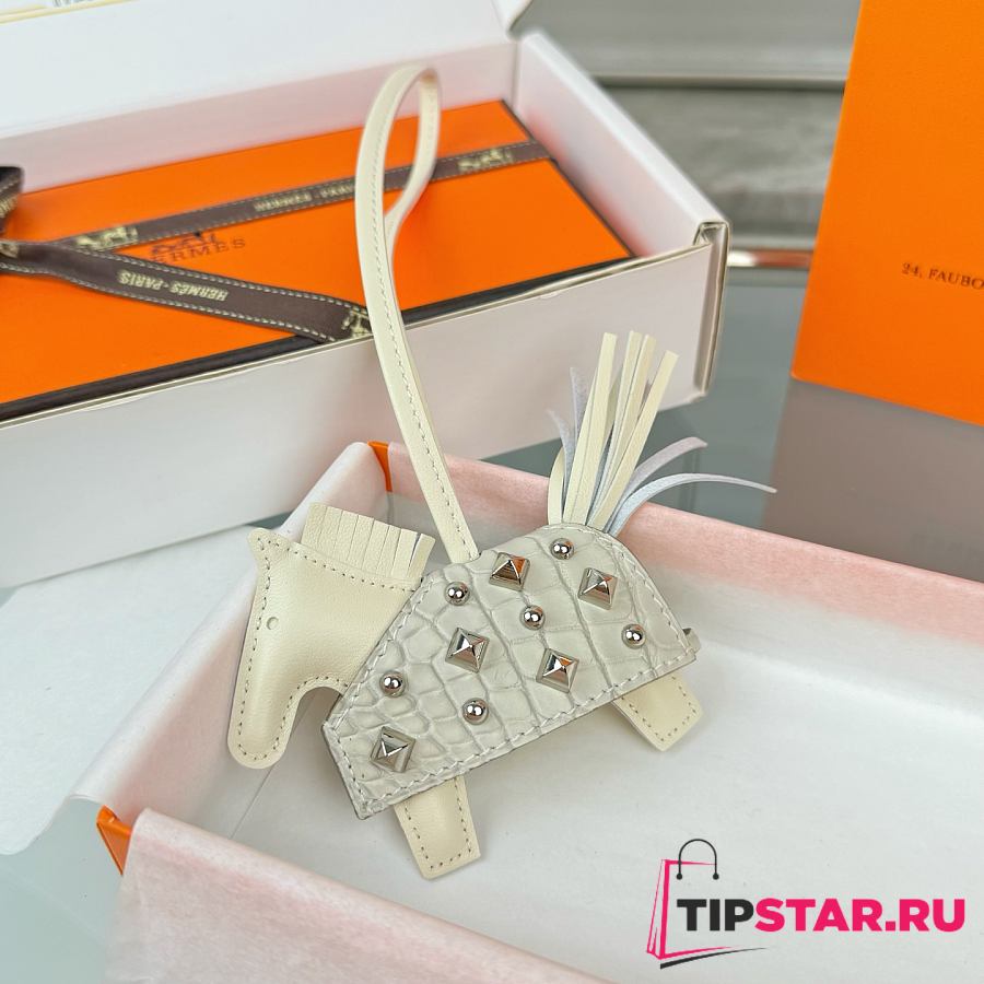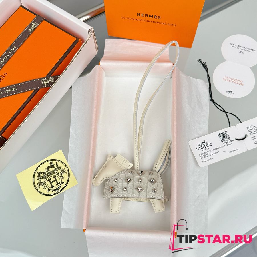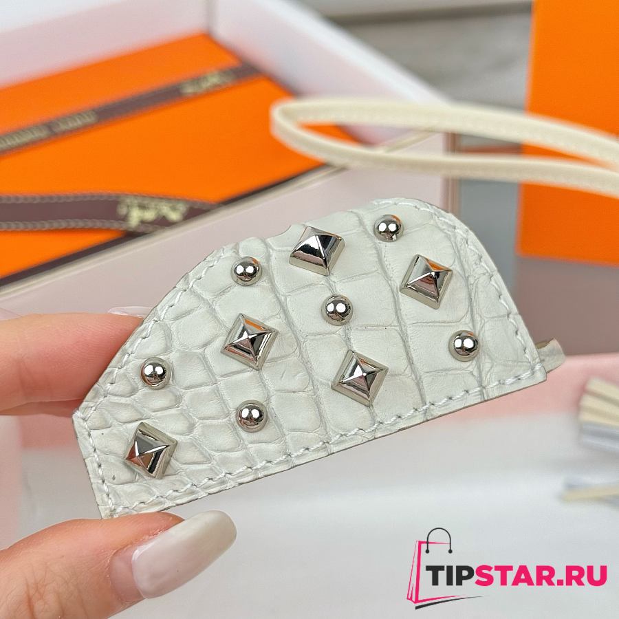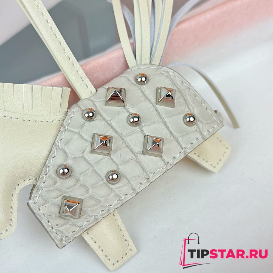 Hermes Rodeo Robeo Coeur Pony Bag Keychain White Silver