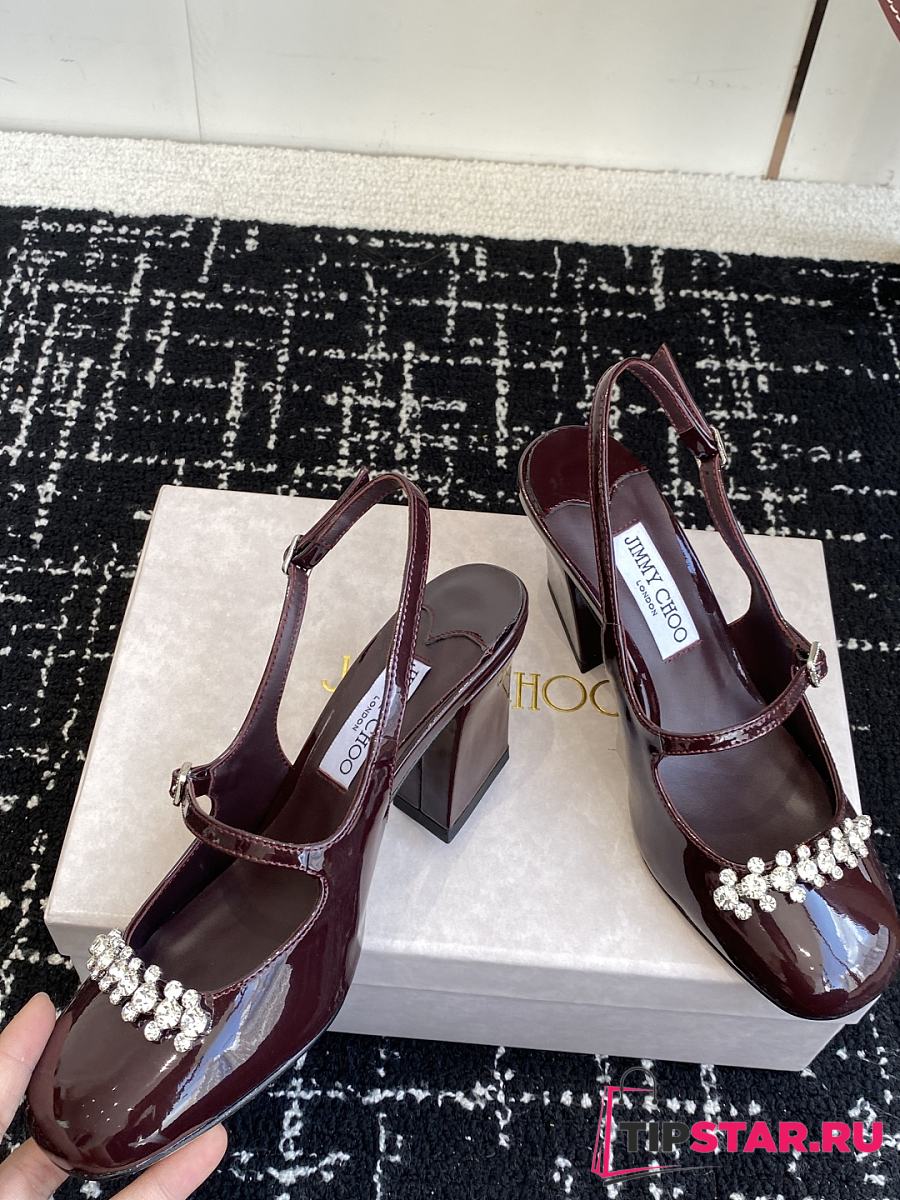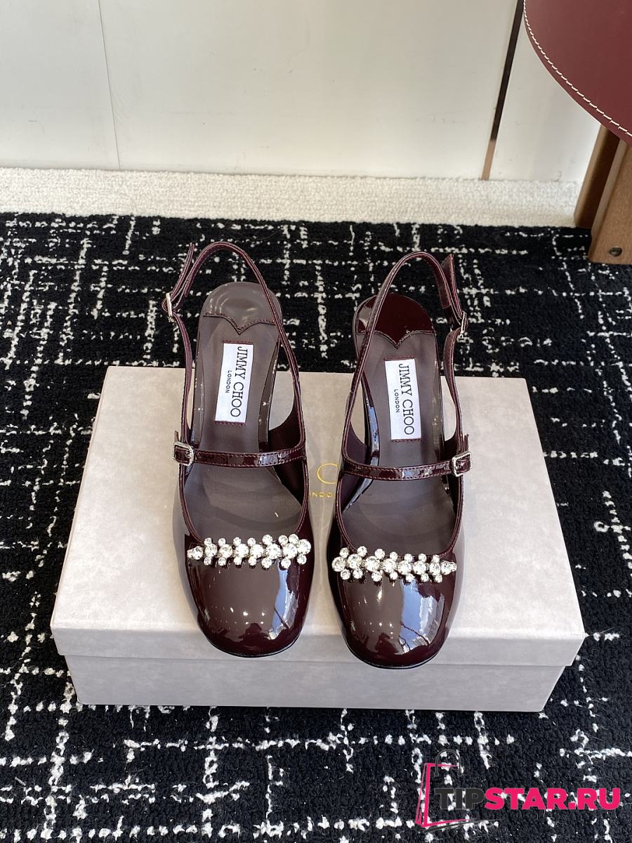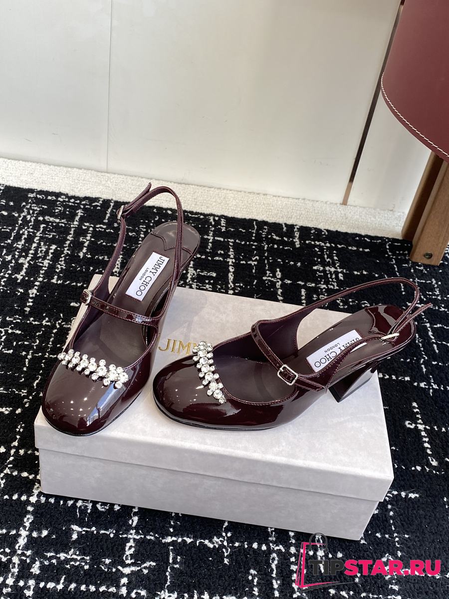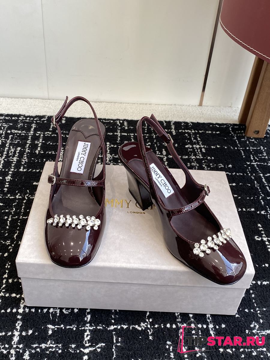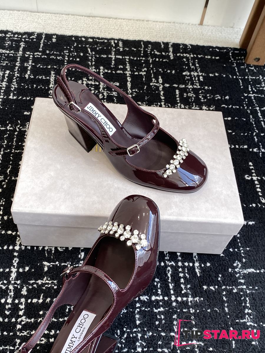 Jimmy Choo Belinda Sling Back 70 Deep Merlot Patent Leather Slingbacks 01