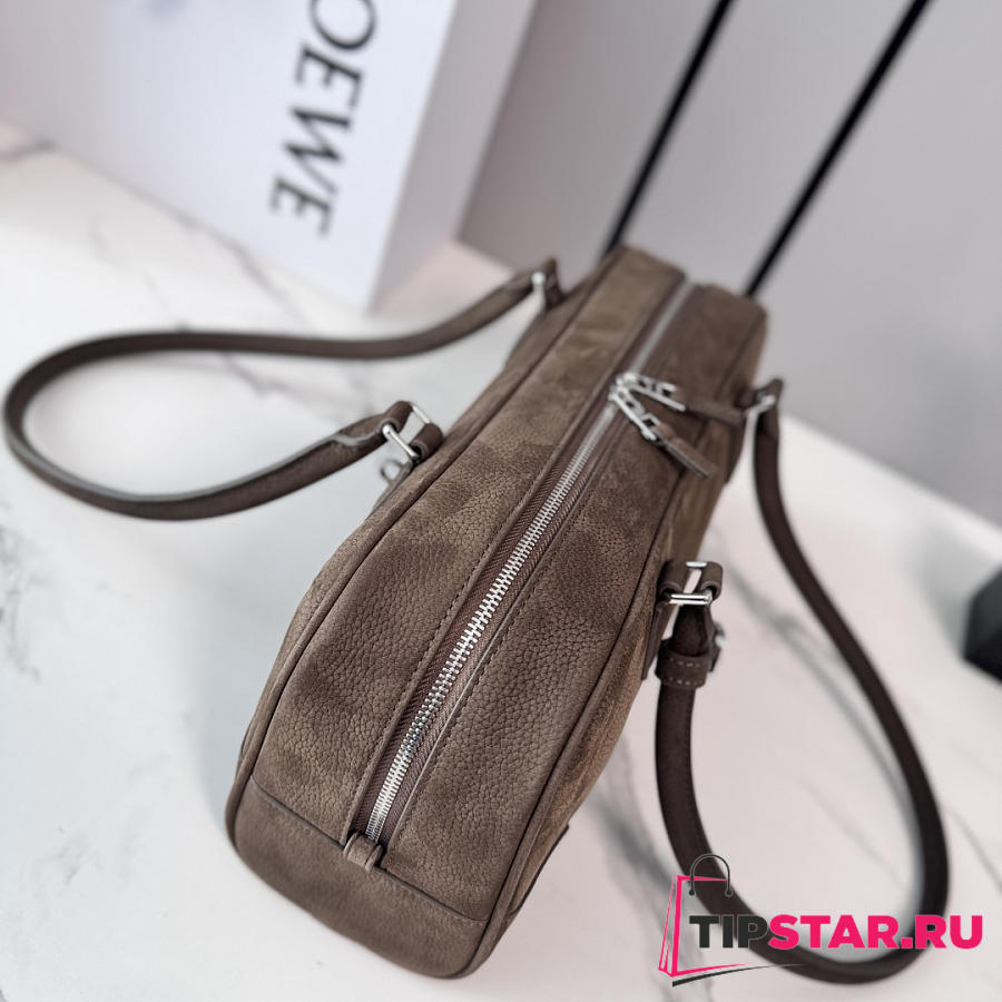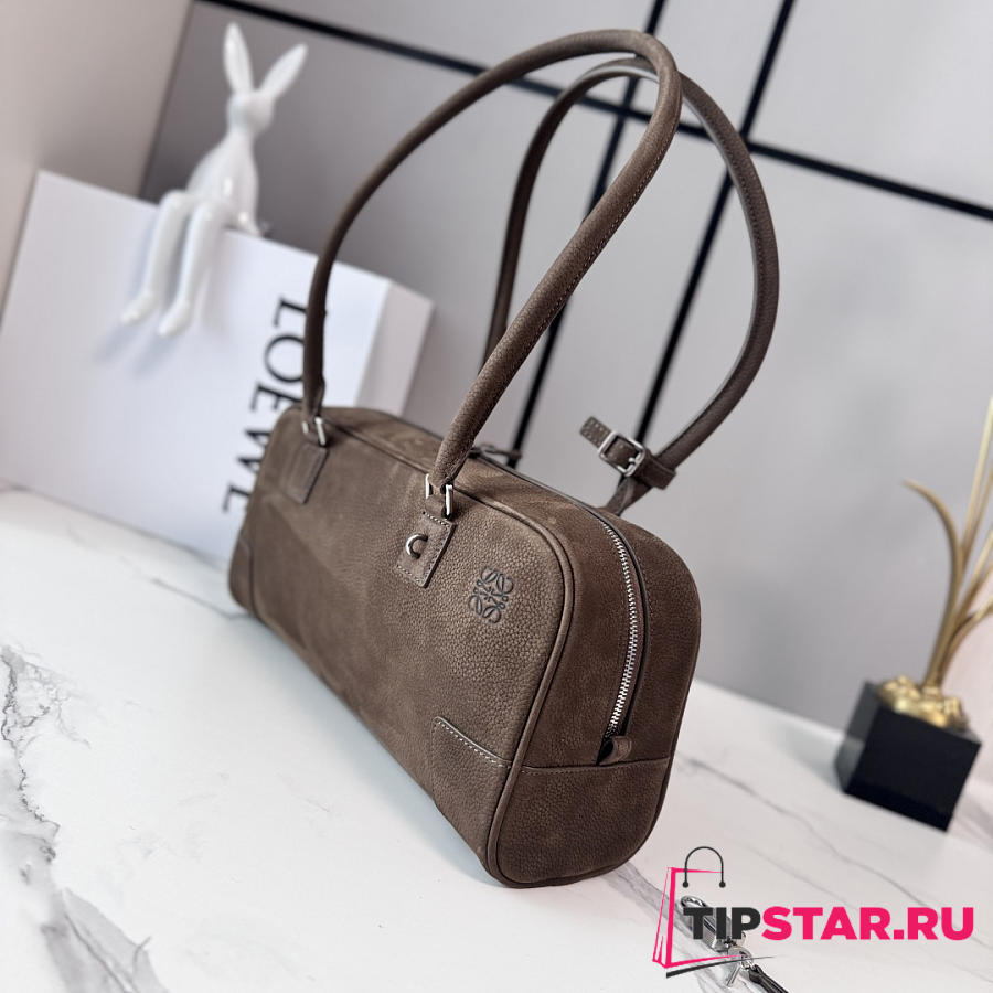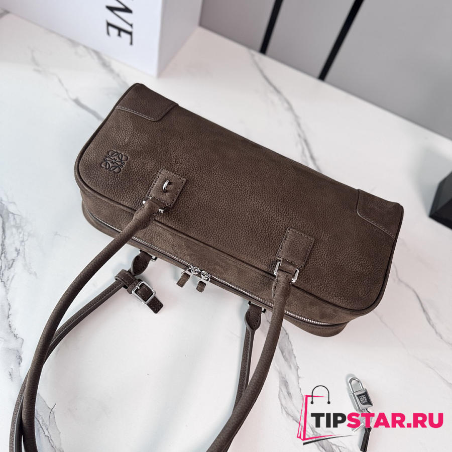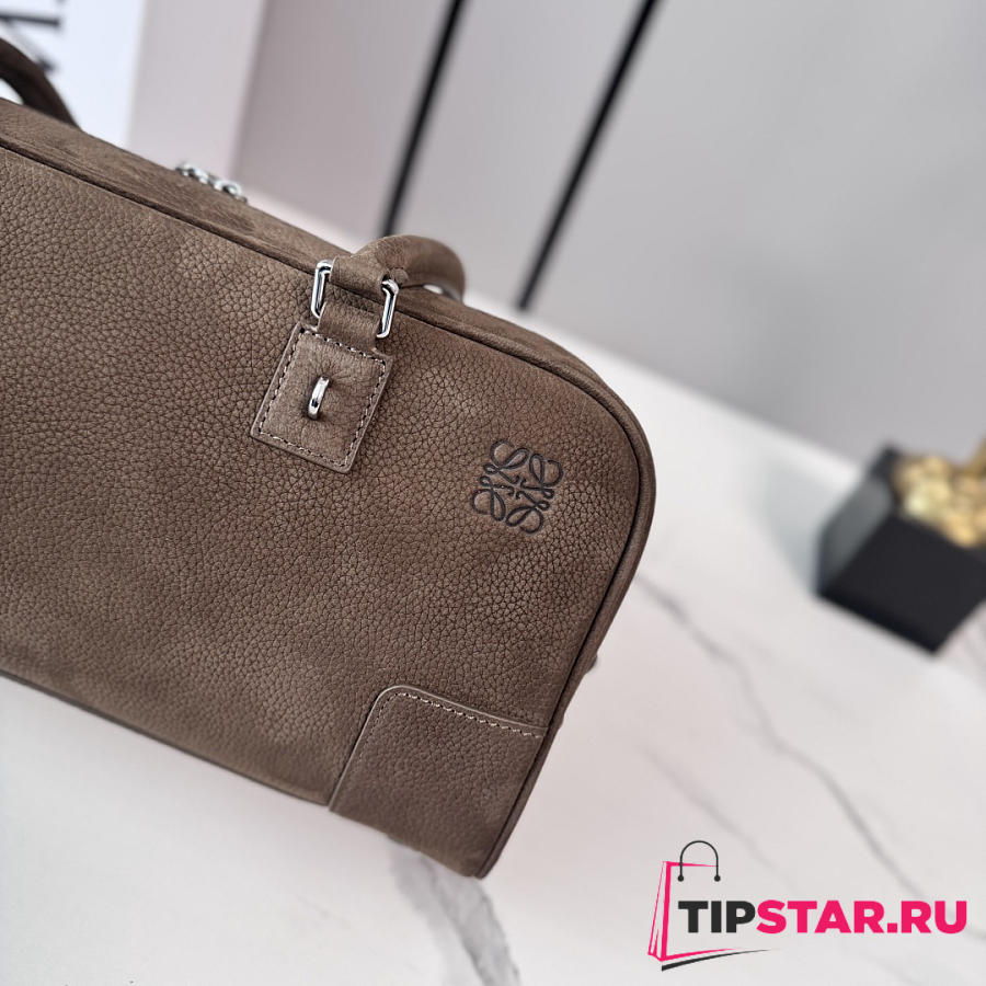 Loewe Amazona 31 debossed nubuck shoulder bag dark brown