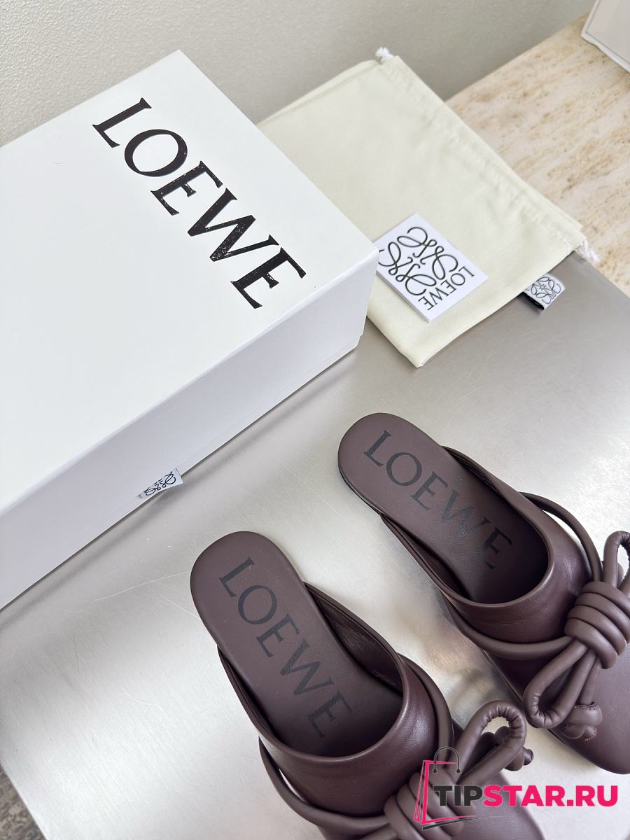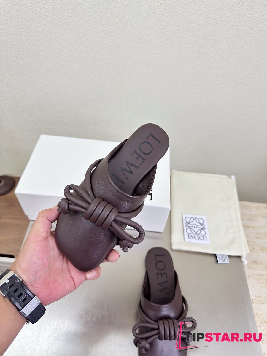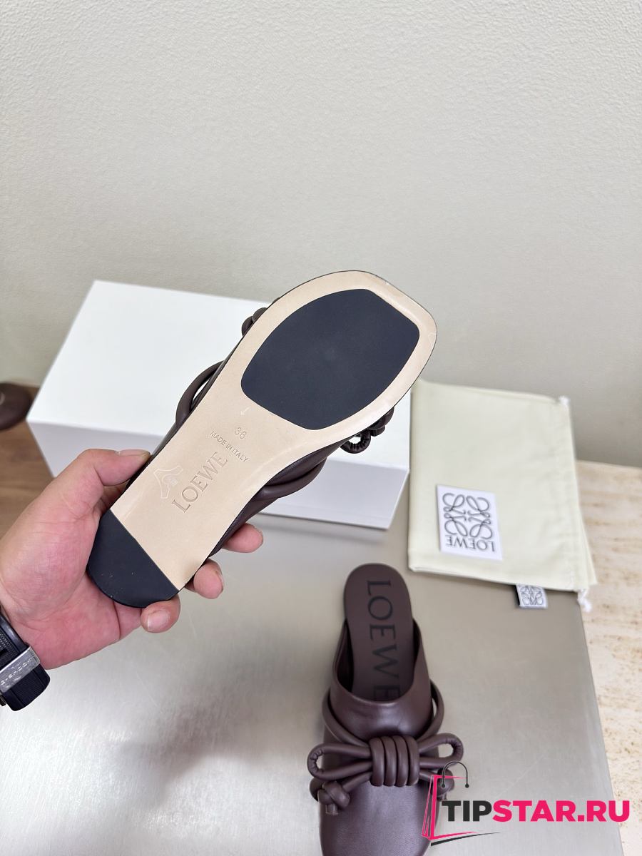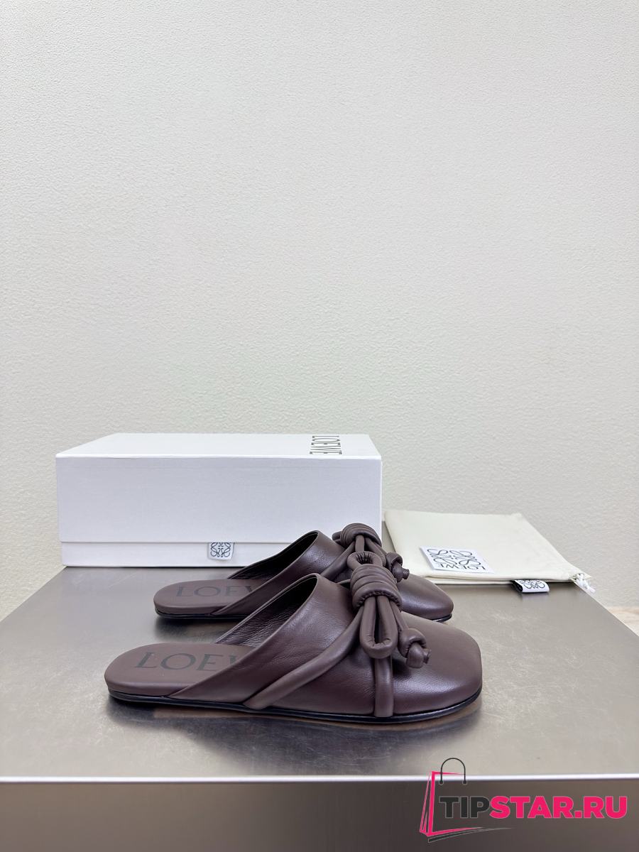 Loewe Flamenco Knot Mules Dark Chocolate Brown Leather