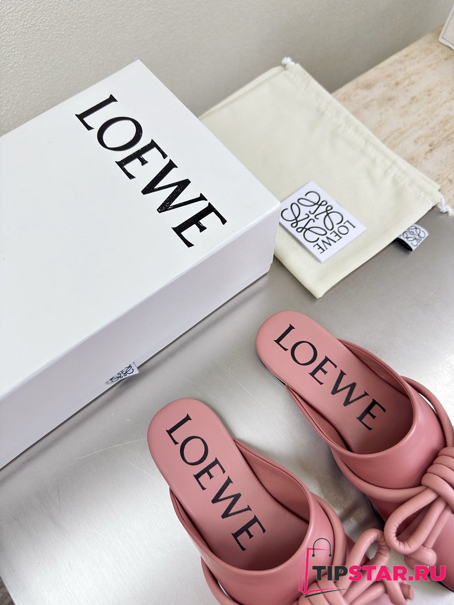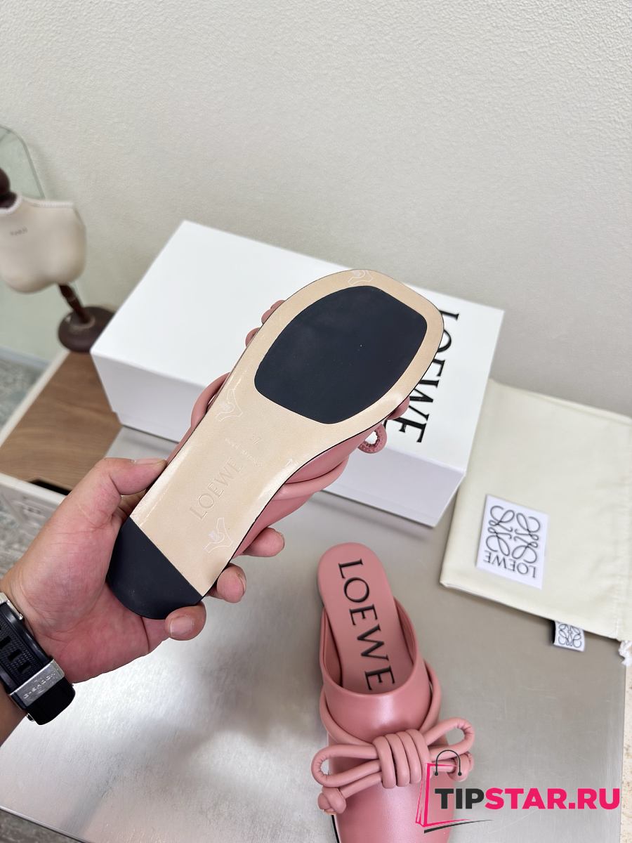 Loewe Flamenco Knot Mules Dusty Pink Leather