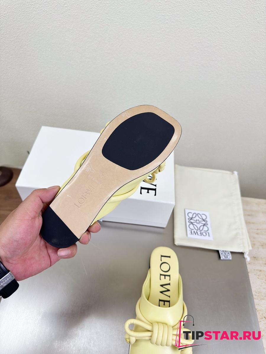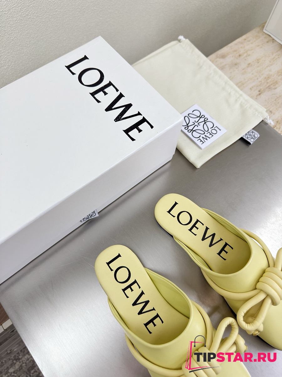 Loewe Flamenco Knot Mules Pastel Yellow Leather