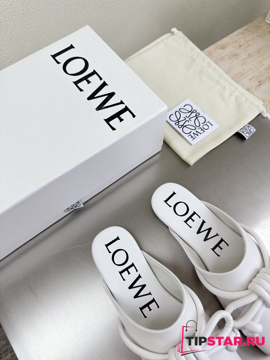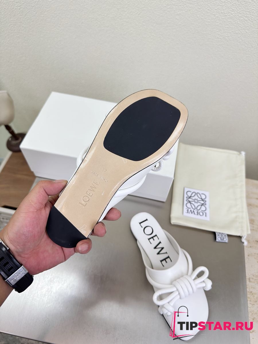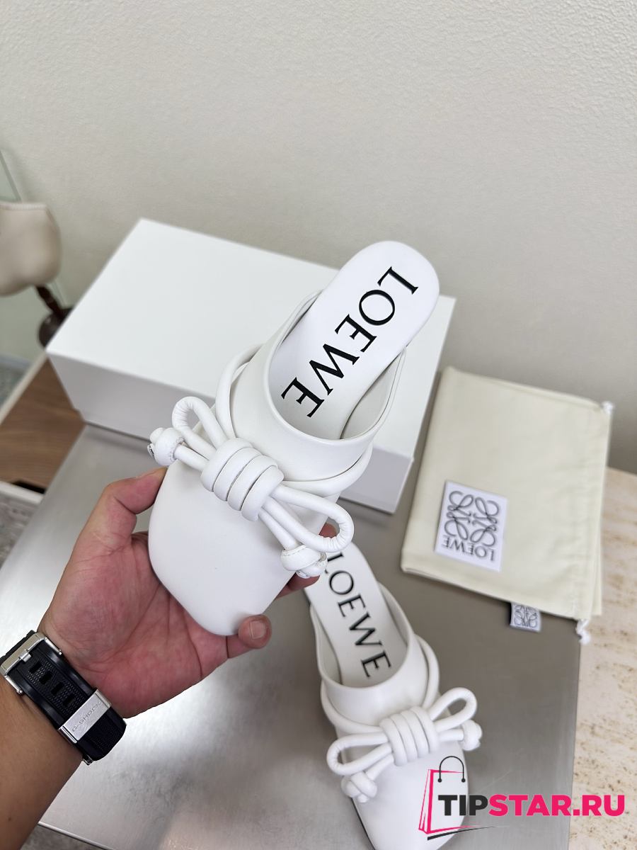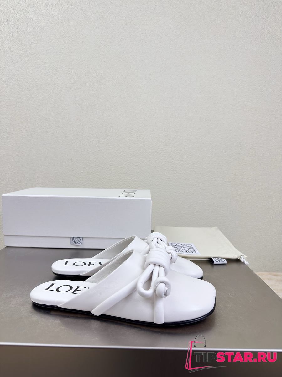 Loewe Flamenco Knot Mules White Leather