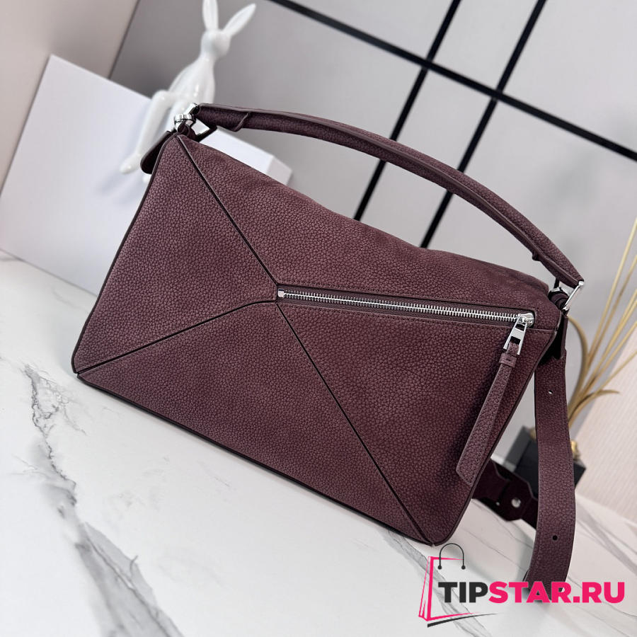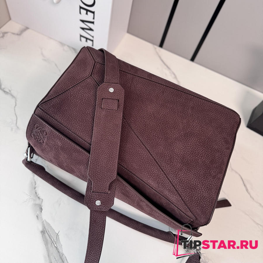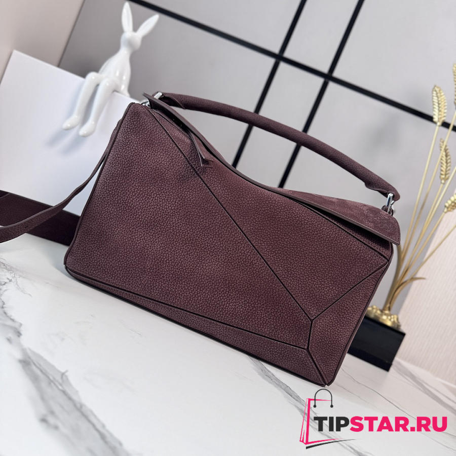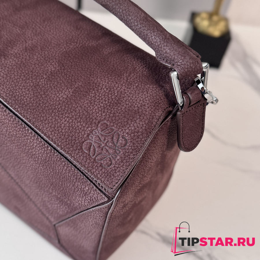 Loewe Puzzle grained nubuck tote bag burgundy