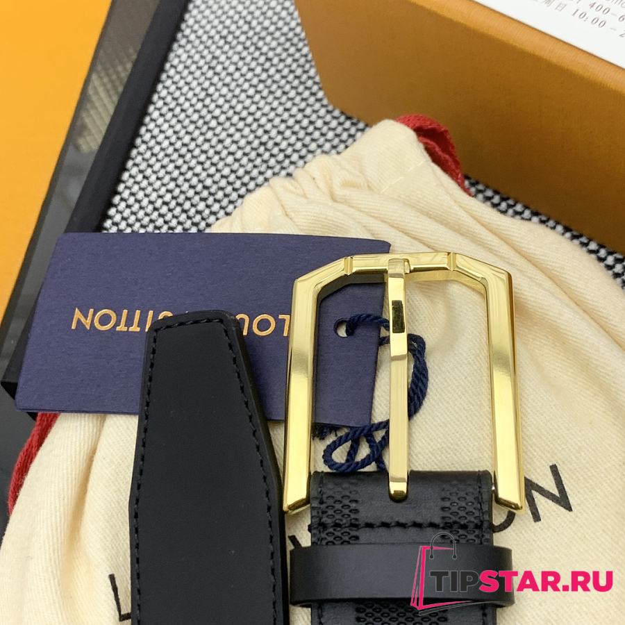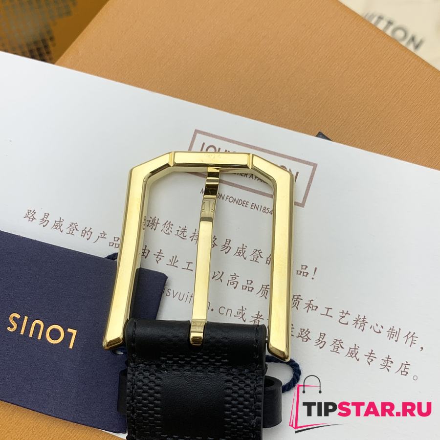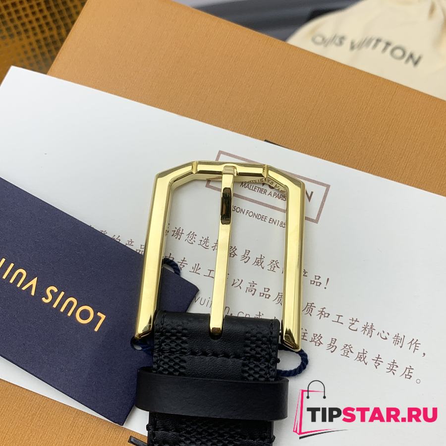 Louis Vuitton Damier Heritage belt grain leather gold hardware 3.5 cm in black