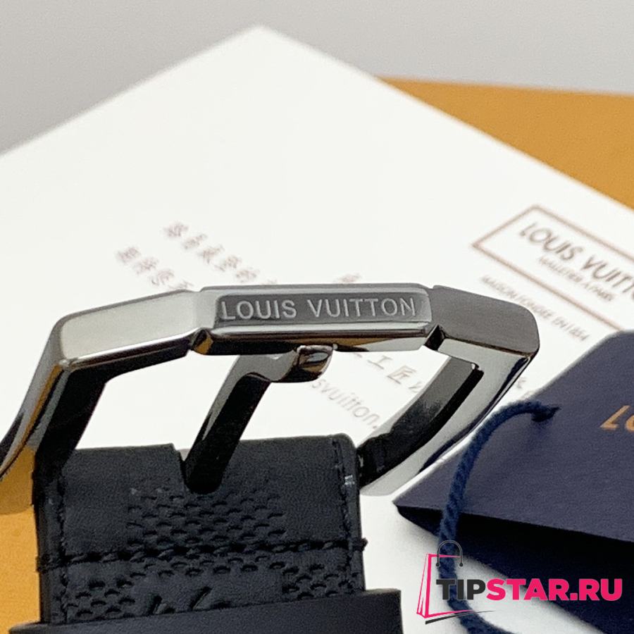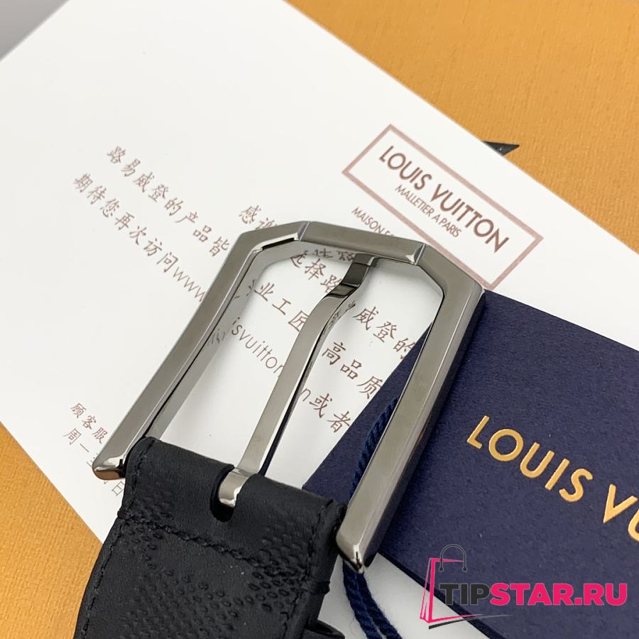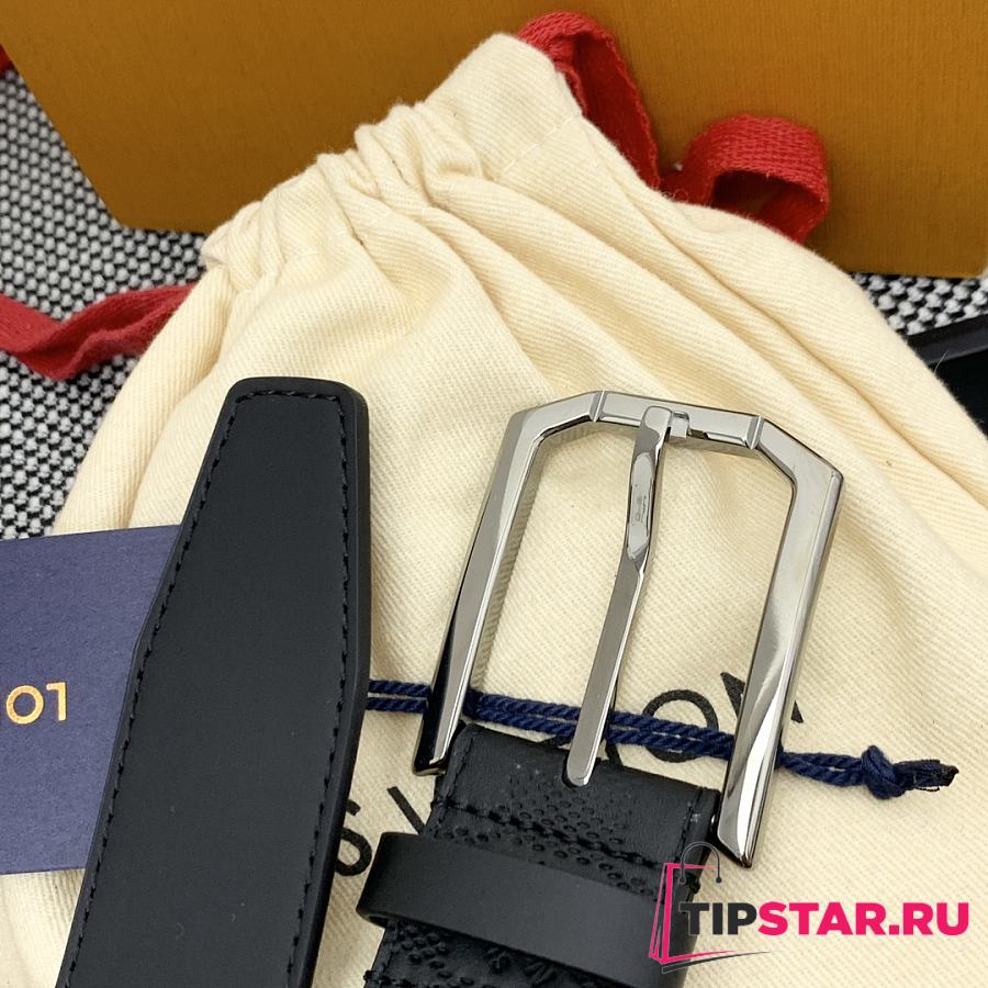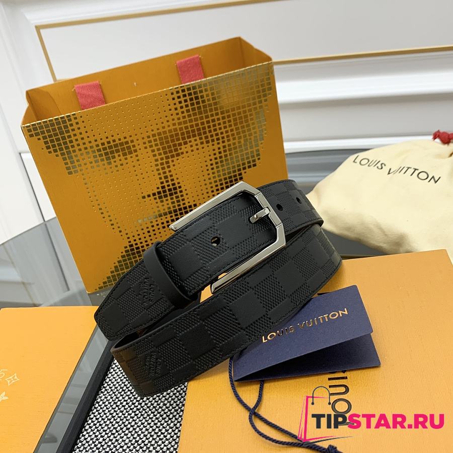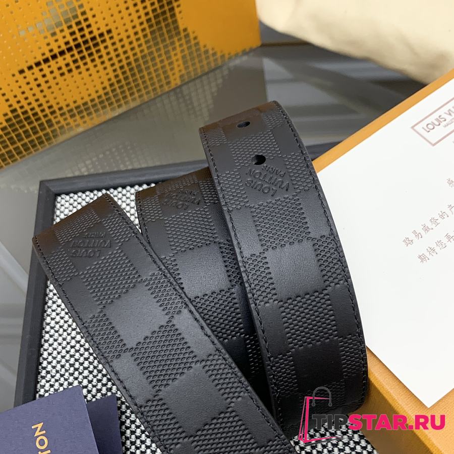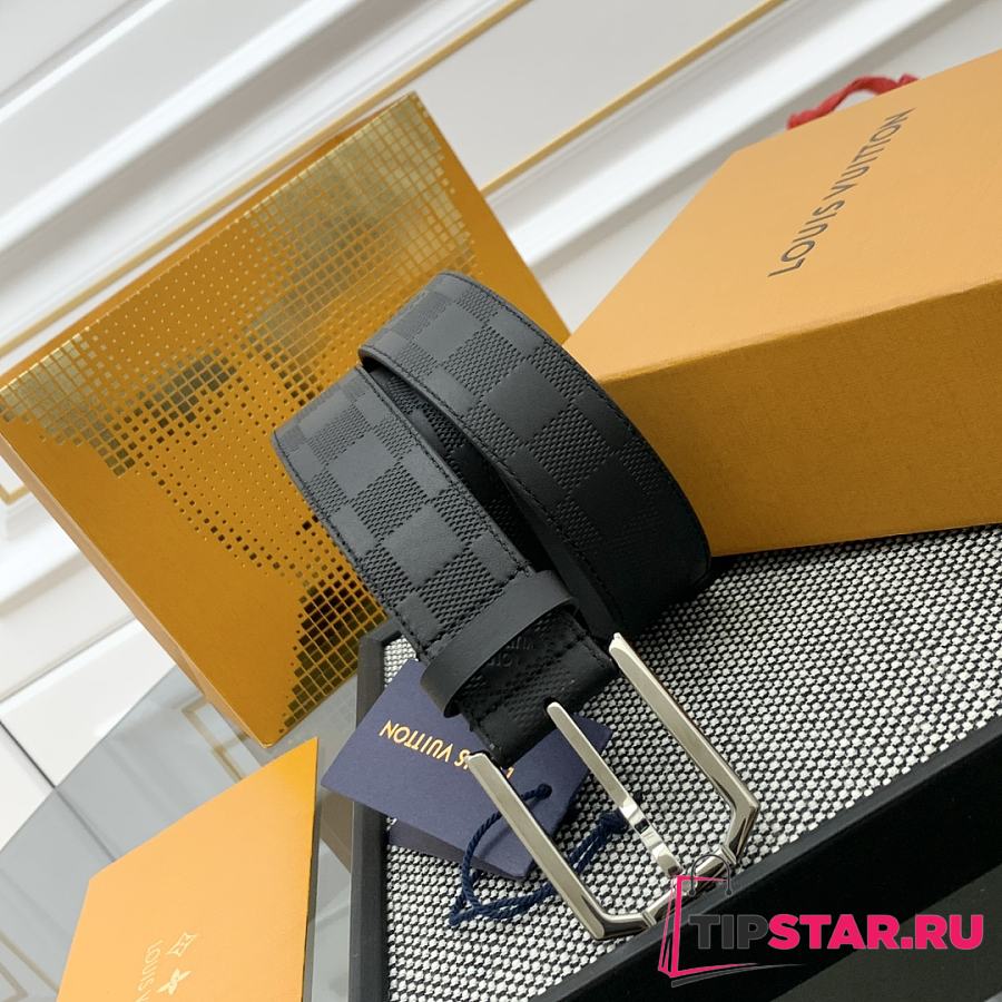 Louis Vuitton Damier Heritage belt grain leather silver hardware 3.5 cm in black