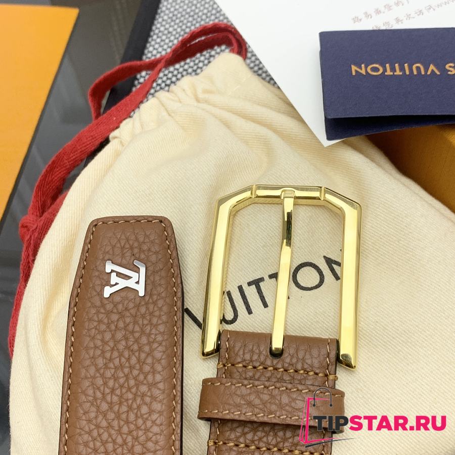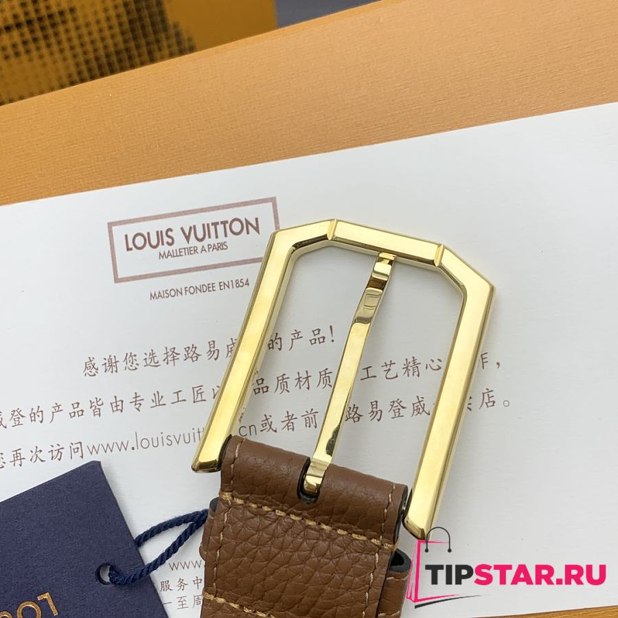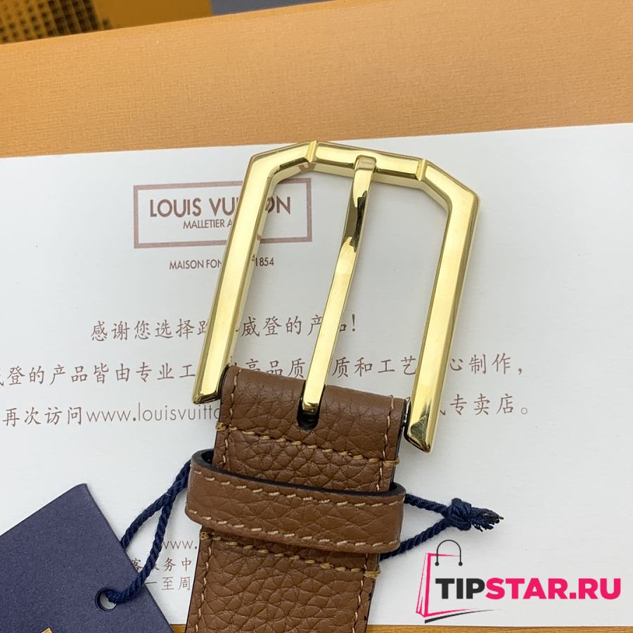 Louis Vuitton Heritage belt grain leather gold hardware 3.5 cm in brown