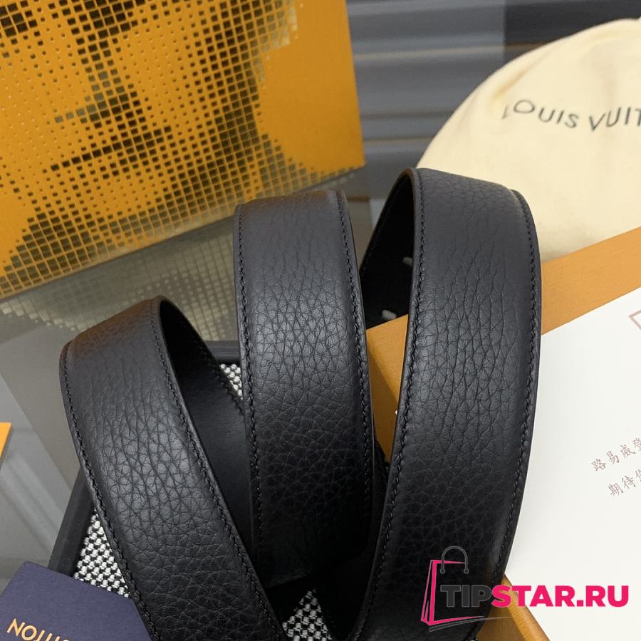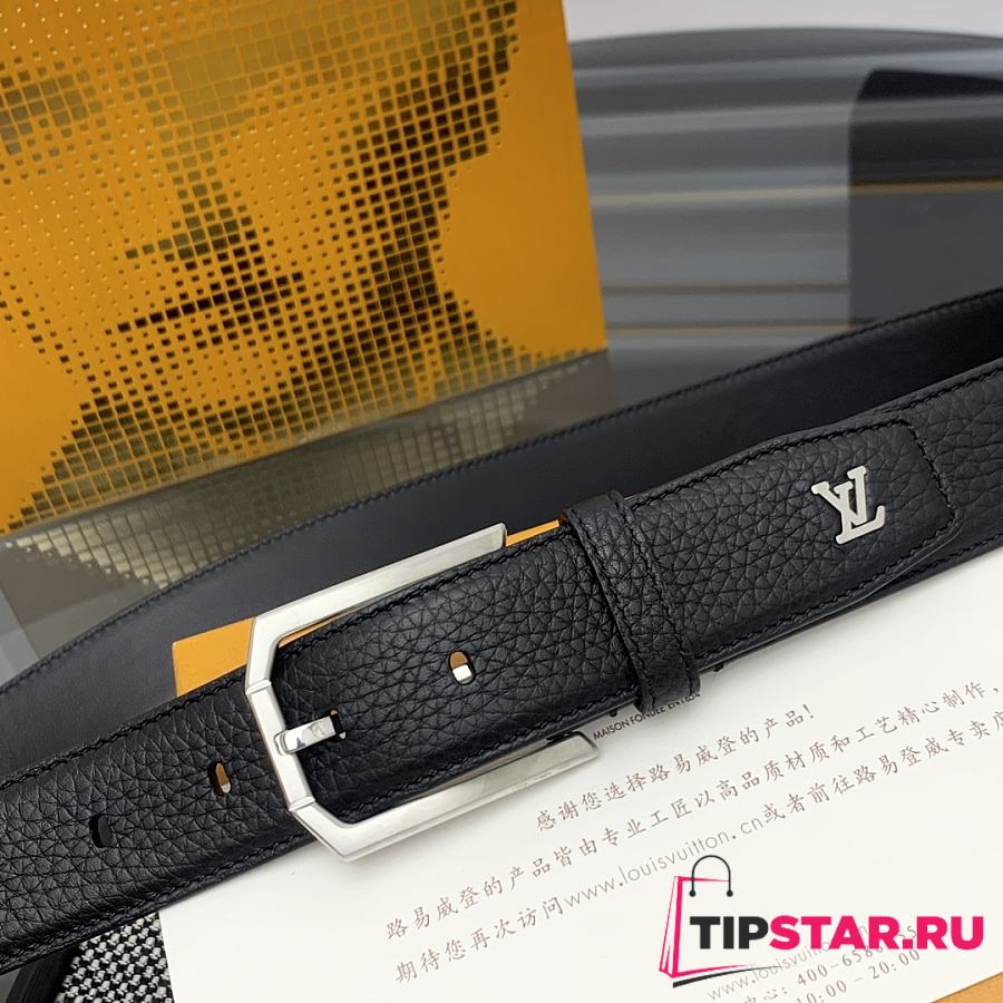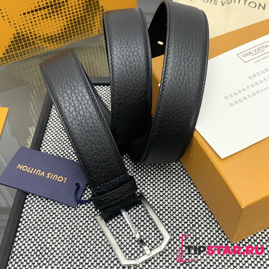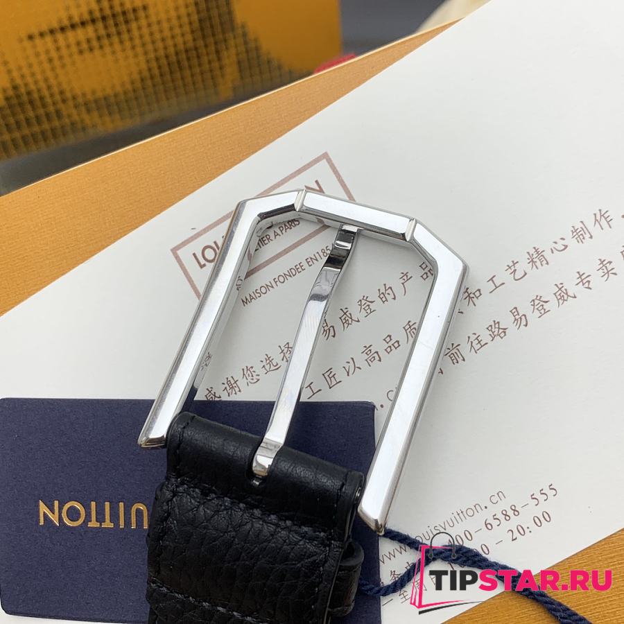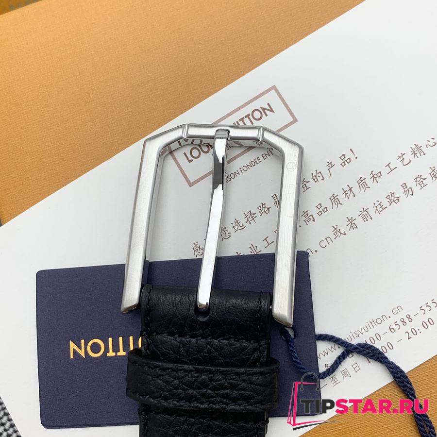 Louis Vuitton Heritage belt grain leather silver hardware 3.5 cm in black