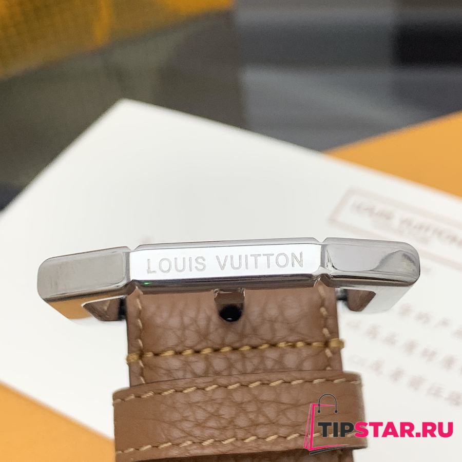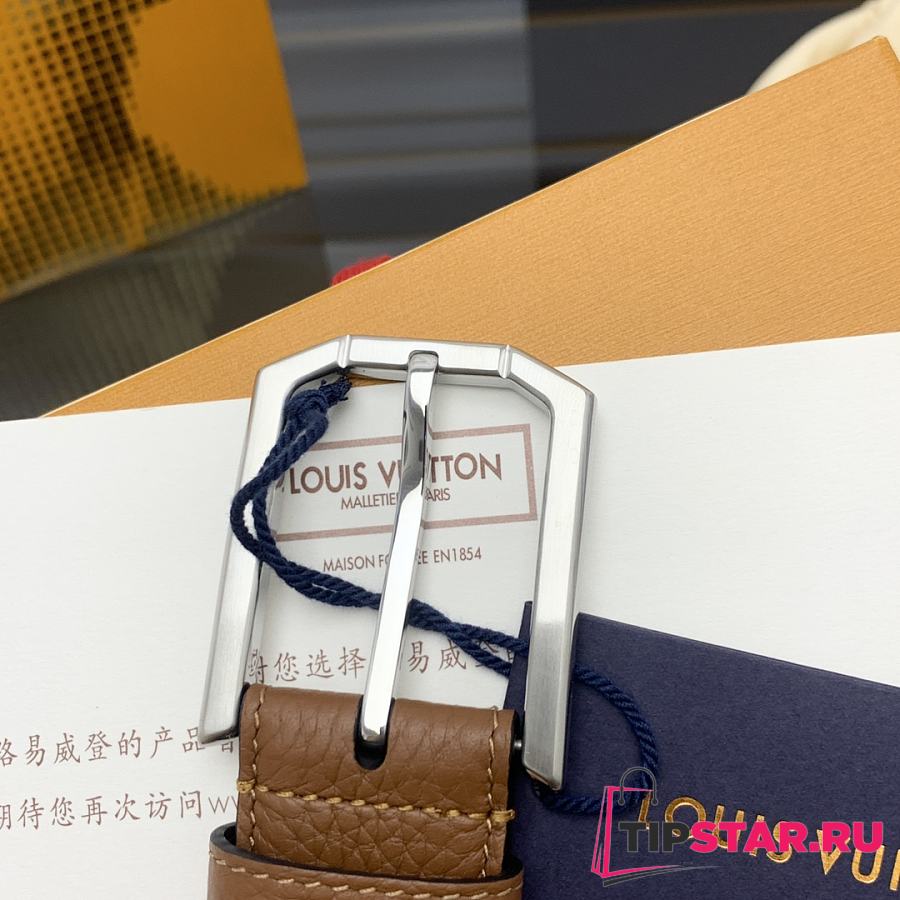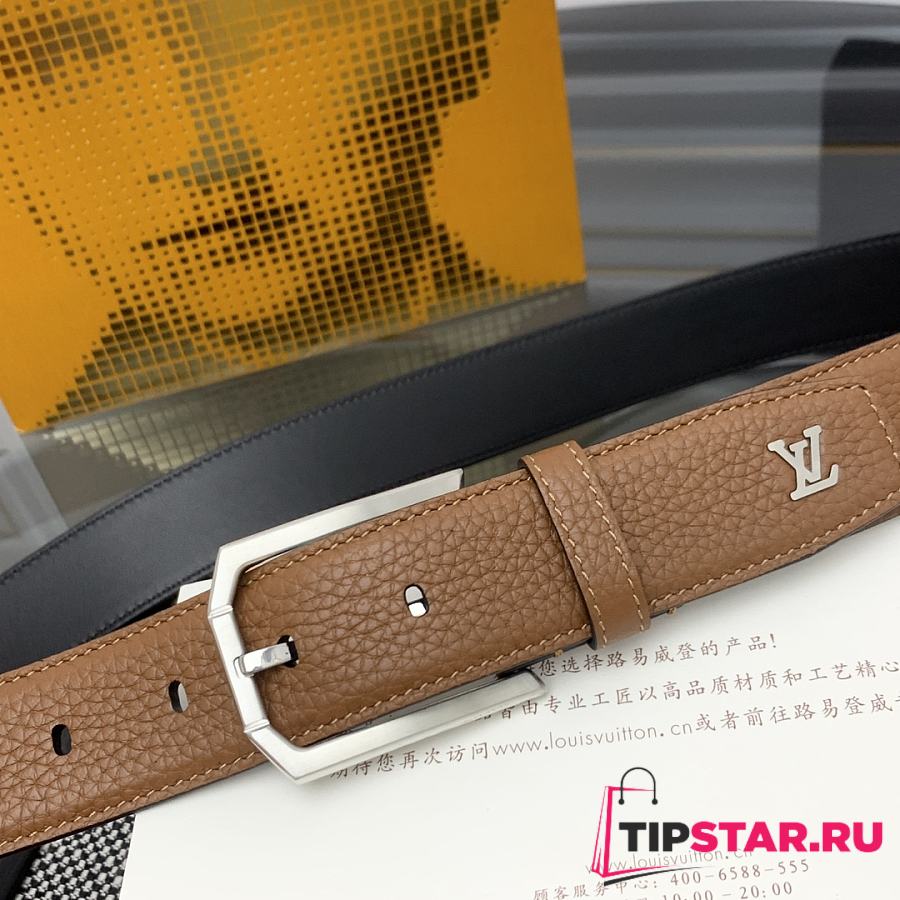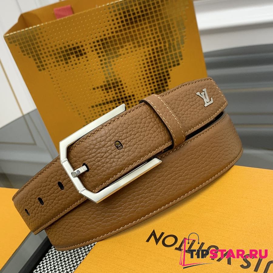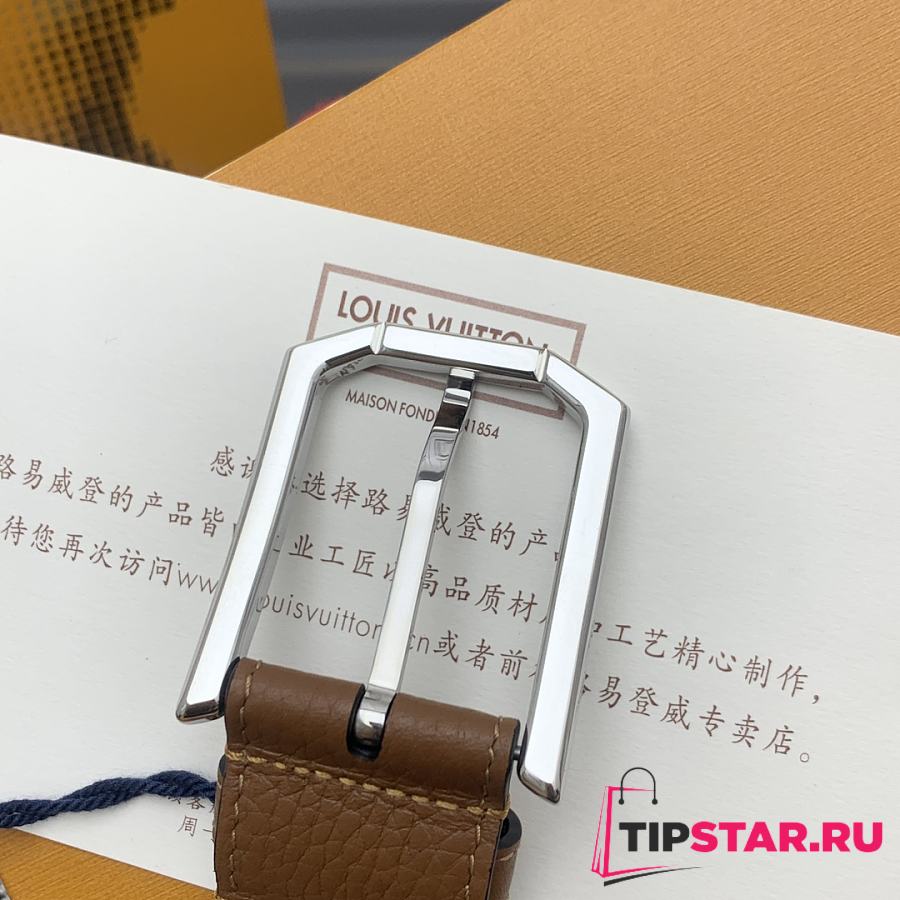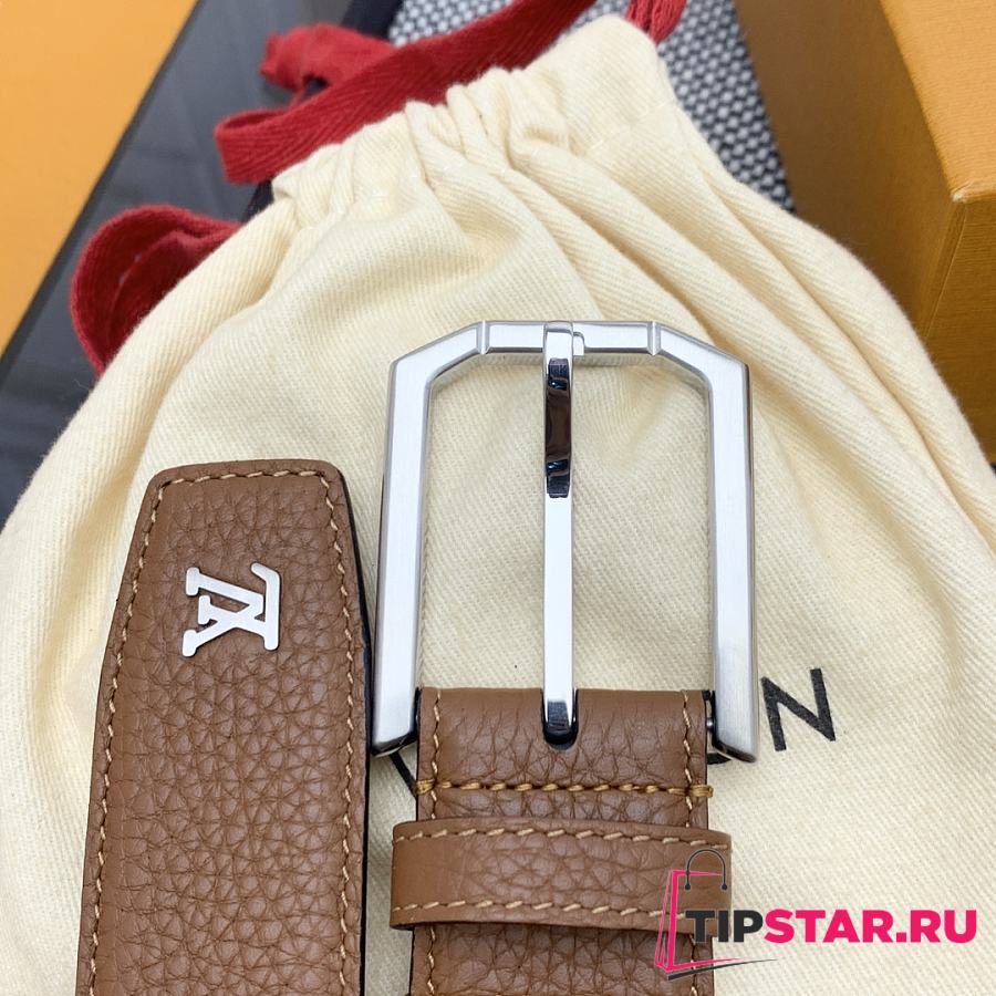 Louis Vuitton Heritage belt grain leather silver hardware 3.5 cm in brown
