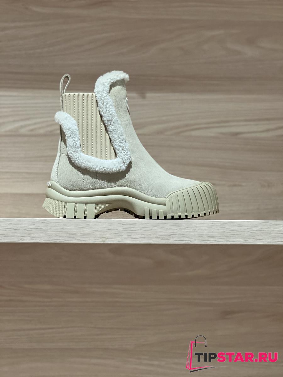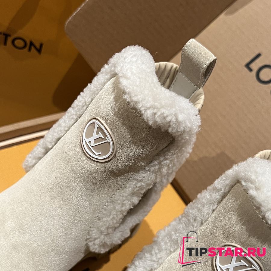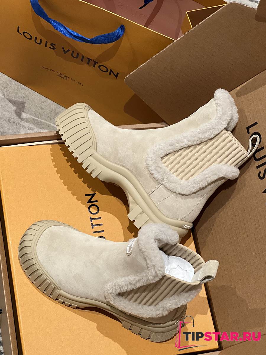 Louis Vuitton V Winter runway-style wool Chelsea and ankle boots beige