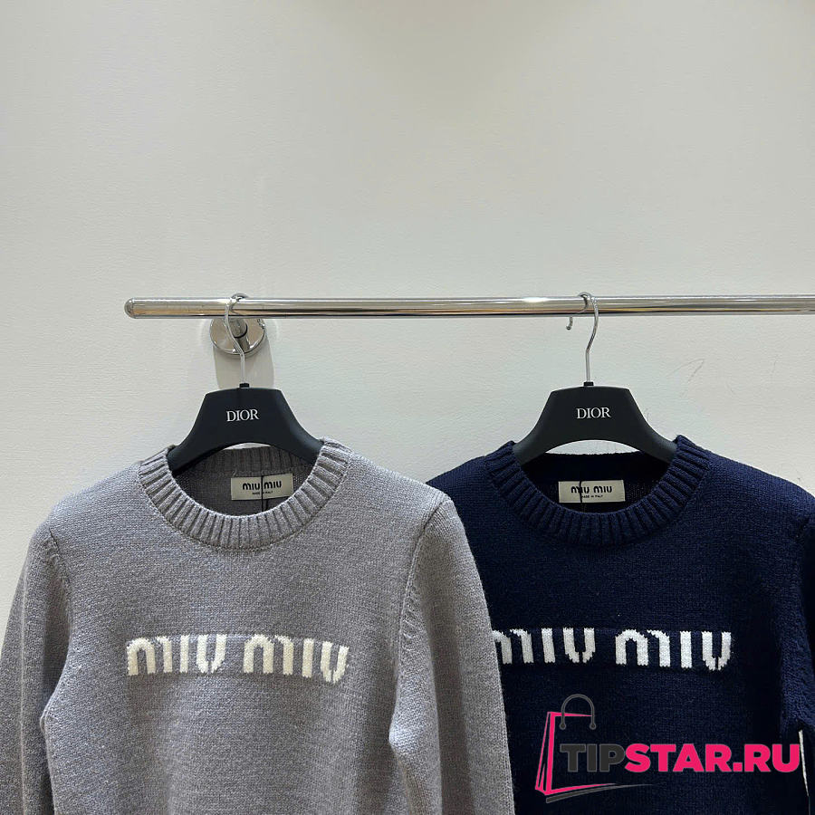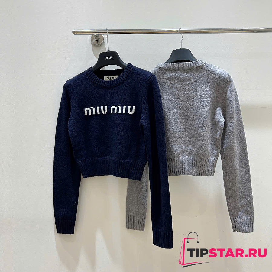 Miu Miu Wool And Cashmere Sweater Dark Blue/Gray